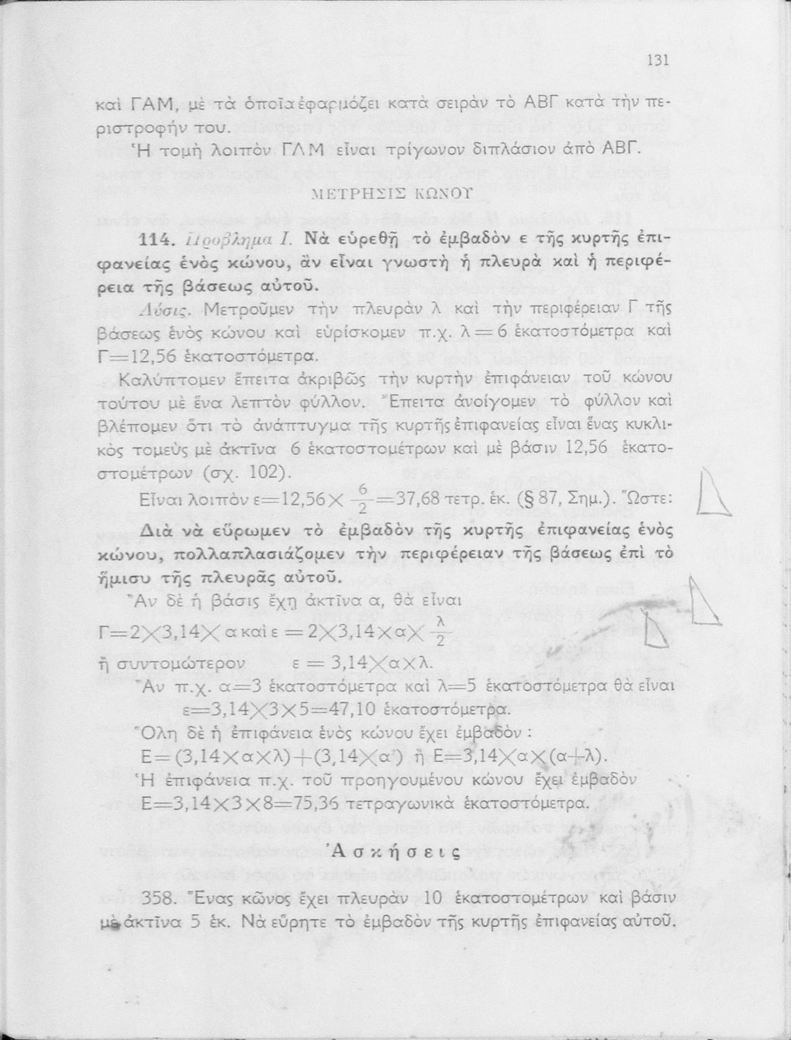 Σχολικό εγχειρίδιο Γεωμετρίας για τα Γυμνάσια και τα Αστικά Σχολεία που είναι χωρισμένο σε Επιπεδομετρία και Στερεομετρία και περιλαμβάνει θεωρία και ασκήσεις.