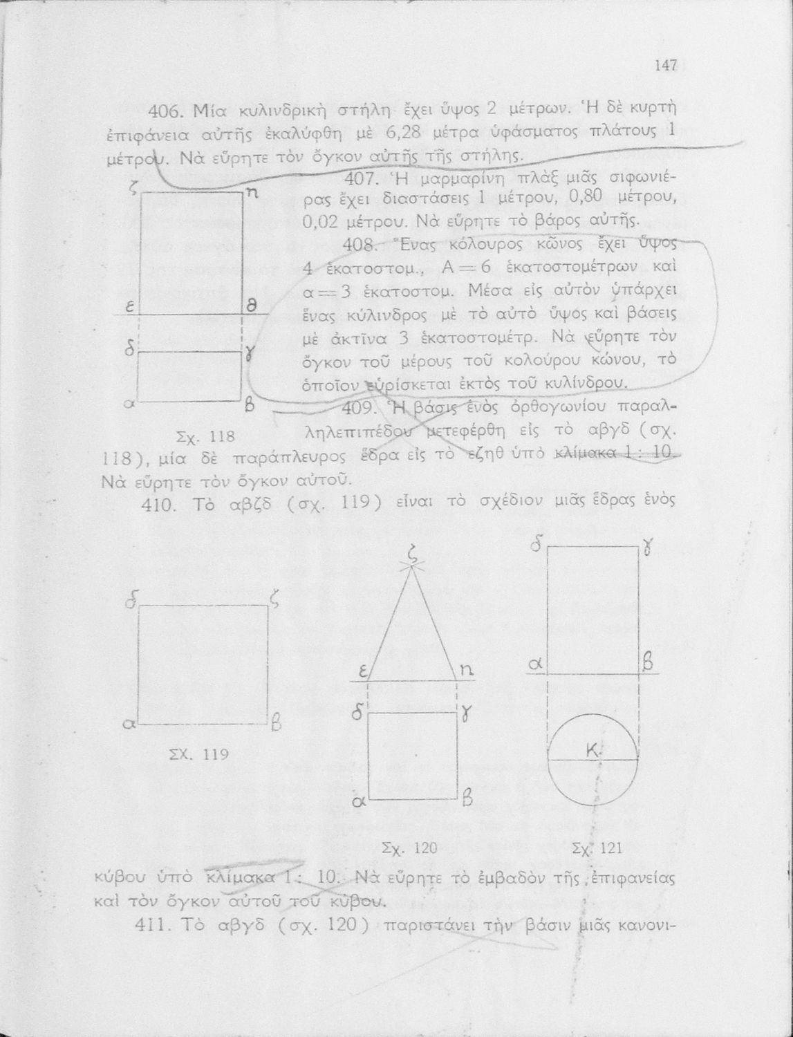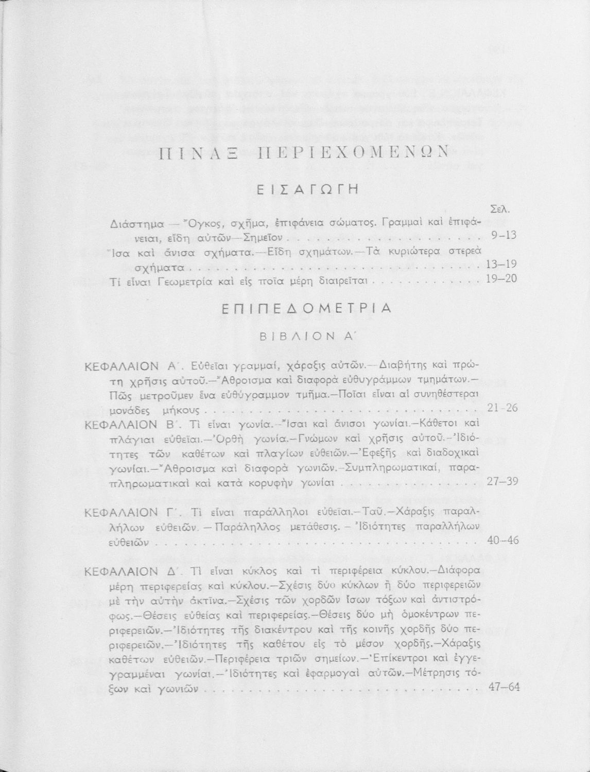 Σχολικό εγχειρίδιο Γεωμετρίας Γυμνασίων και Αστικών Σχολείων χωρισμένο σε Επιπεδομετρία και Στερεομετρία. Περιλαμβάνει και στοιχεία Χωρομετρίας.