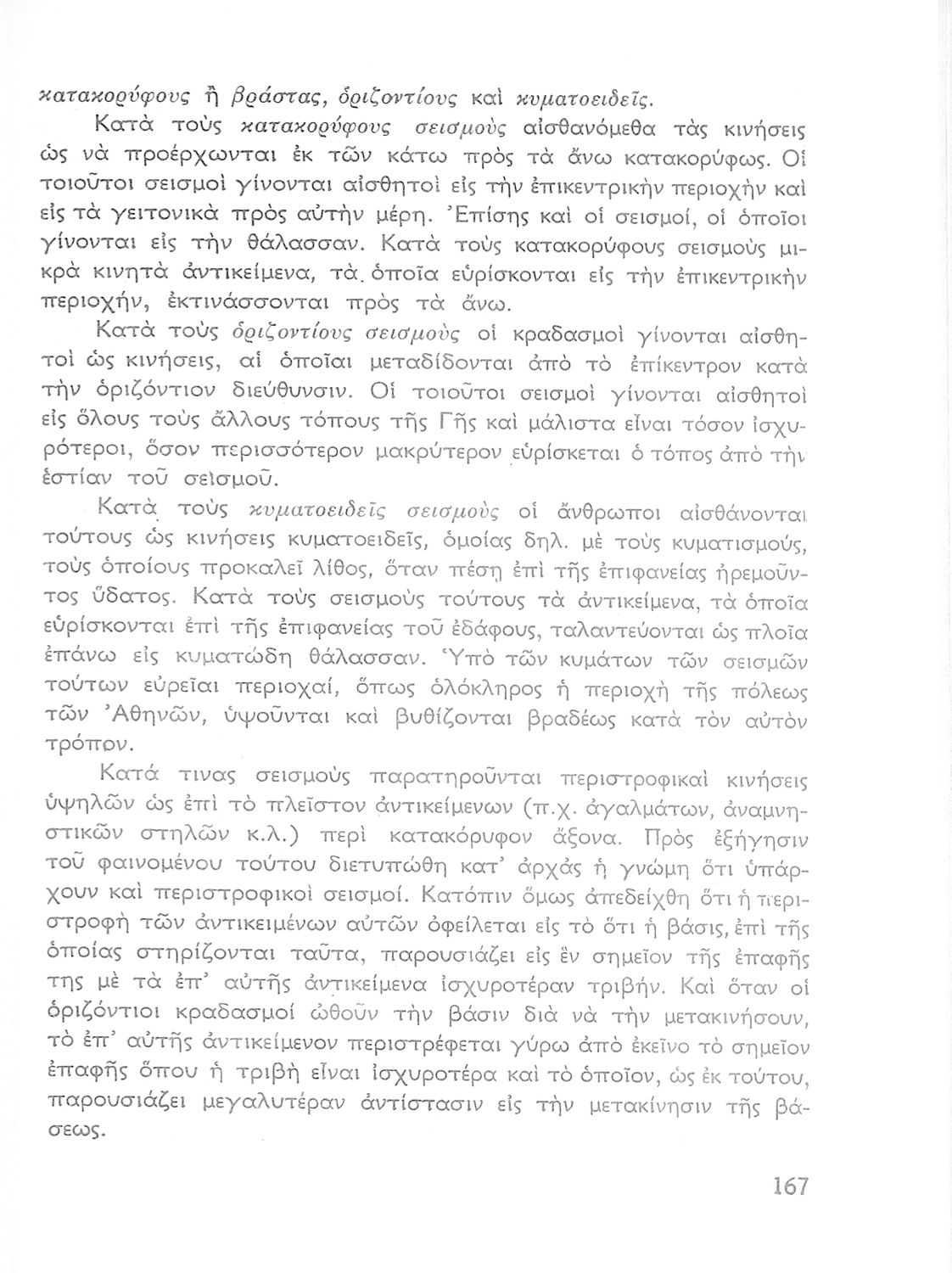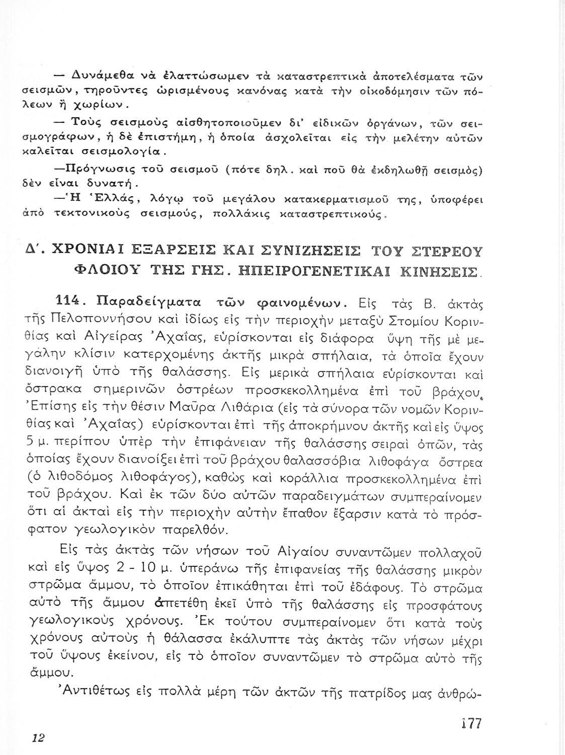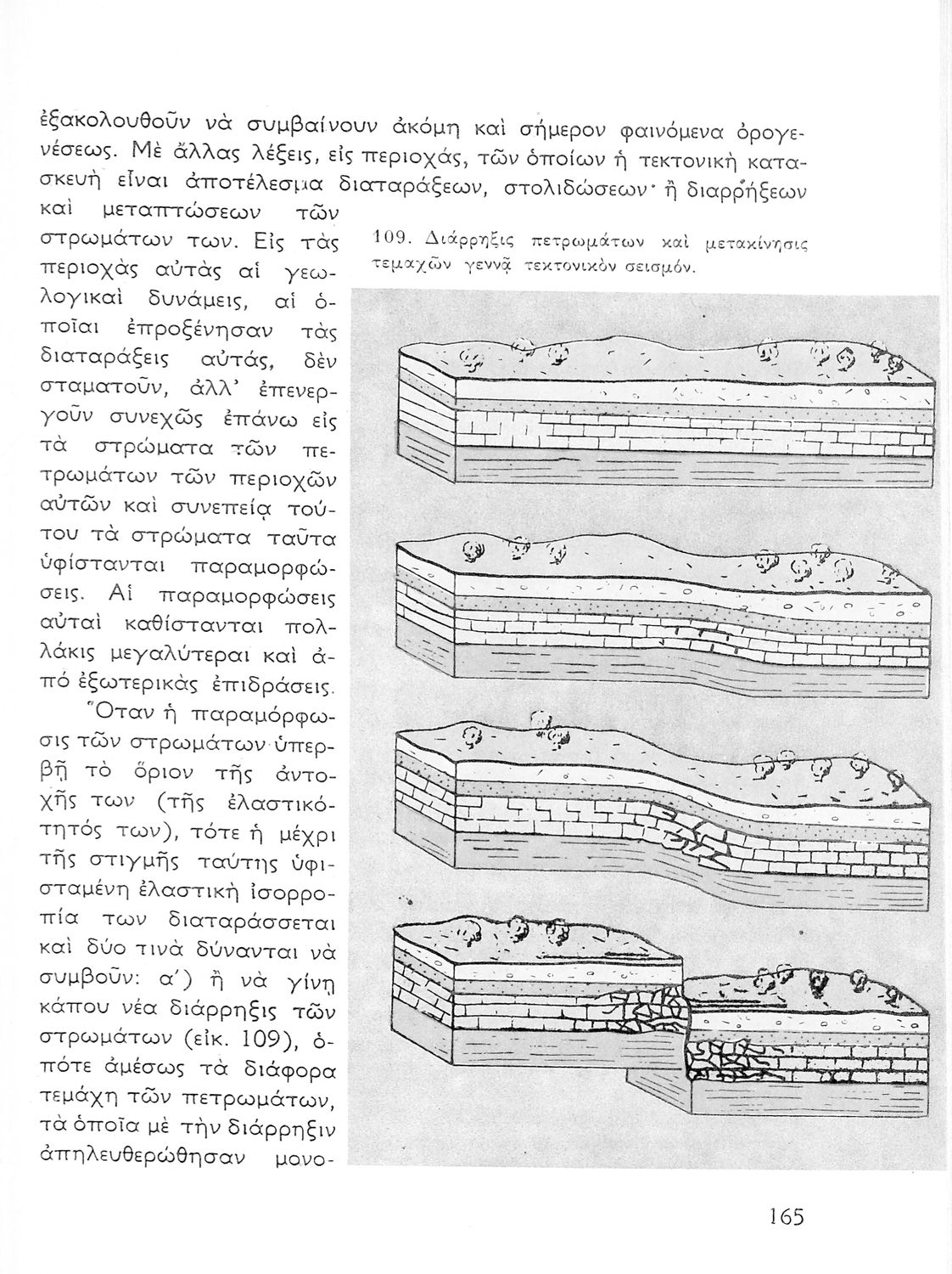Σχολικό εγχειρίδιο Γεωλογίας/Ορυκτολογίας για τη Δ΄ Γυμνασίου που περιλαμβάνει χθονογραφική, δυναμική και ιστορική γεωλογία, και γενική και ειδική ορυκτολογία. Ο συγγραφέας ήταν καθηγητής πανεπιστημίου και η συγγραφέας φυσικός. Φέρει το σύμβολο της δικτατορίας. Περιέχει παράρτημα με «Στοιχεία Μαθηματικής Γεωγραφίας» από τη γεωγραφία Δ’ τάξης του Αλκίνοου Μάζη (εκδ. 1963).