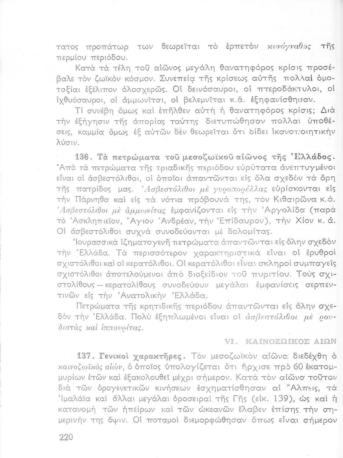 Σχολικό εγχειρίδιο Γεωλογίας/Ορυκτολογίας για τη Δ΄ Γυμνασίου που περιλαμβάνει χθονογραφική, δυναμική και ιστορική γεωλογία, και γενική και ειδική ορυκτολογία. Ο συγγραφέας ήταν καθηγητής πανεπιστημίου και η συγγραφέας φυσικός. Φέρει το σύμβολο της δικτατορίας. Περιέχει παράρτημα με «Στοιχεία Μαθηματικής Γεωγραφίας» από τη γεωγραφία Δ’ τάξης του Αλκίνοου Μάζη (εκδ. 1963).