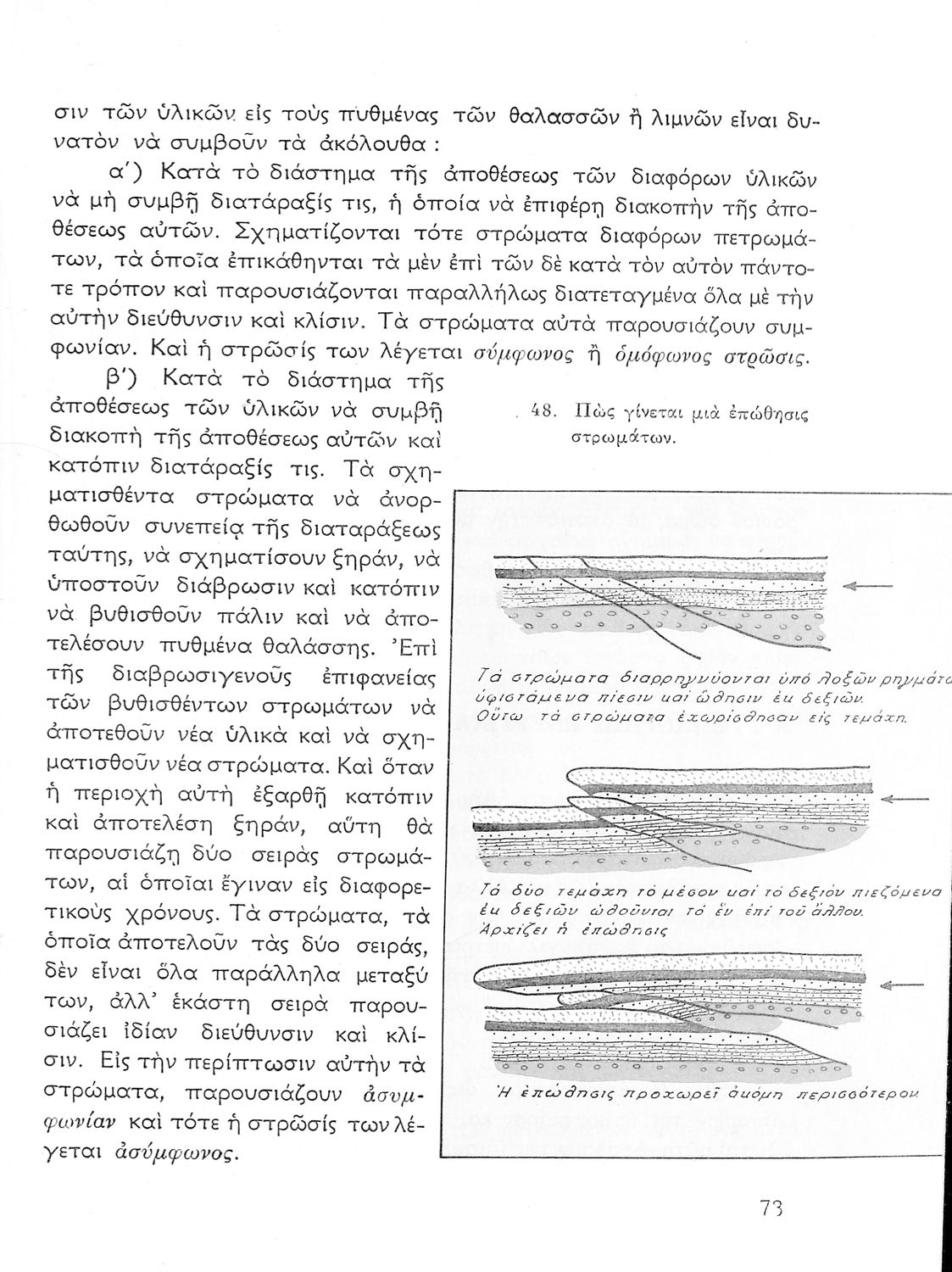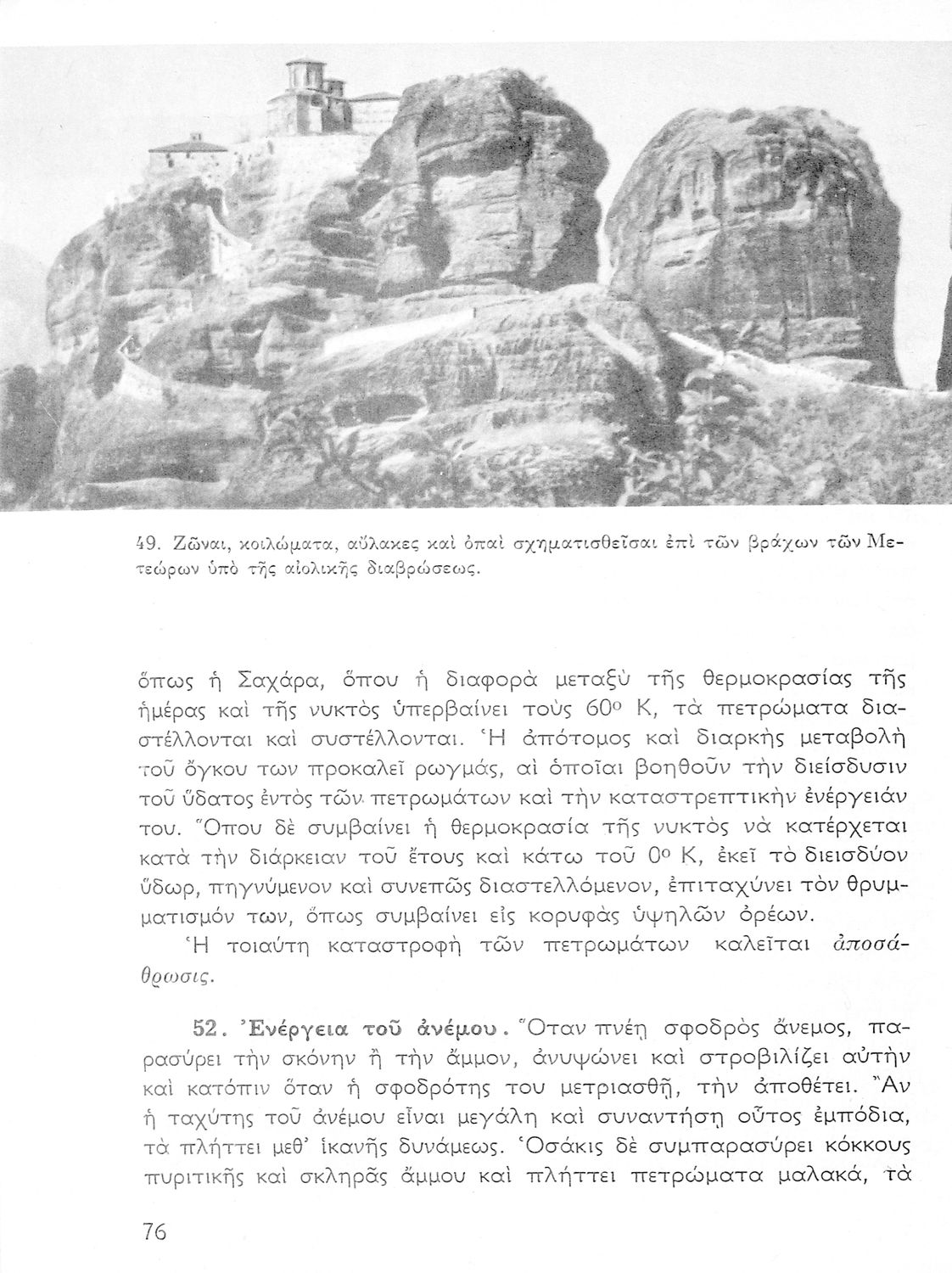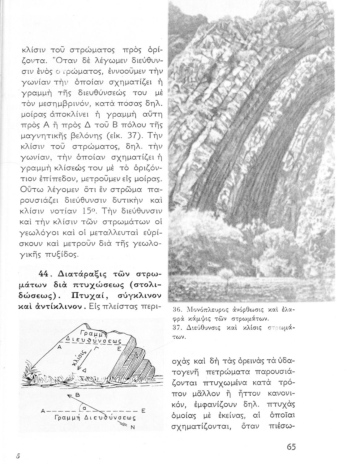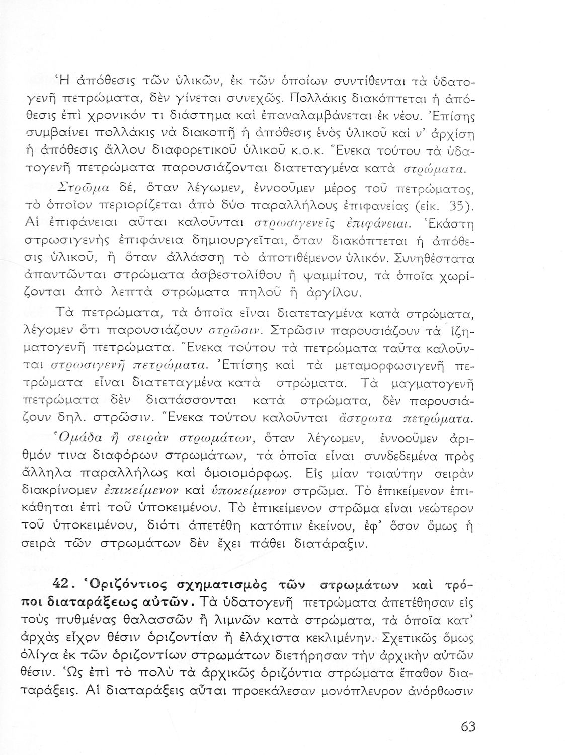 Σχολικό εγχειρίδιο Γεωλογίας/Ορυκτολογίας για τη Δ΄ Γυμνασίου που περιλαμβάνει χθονογραφική, δυναμική και ιστορική γεωλογία, και γενική και ειδική ορυκτολογία. Ο συγγραφέας ήταν καθηγητής πανεπιστημίου και η συγγραφέας φυσικός. Φέρει το σύμβολο της δικτατορίας. Περιέχει παράρτημα με «Στοιχεία Μαθηματικής Γεωγραφίας» από τη γεωγραφία Δ’ τάξης του Αλκίνοου Μάζη (εκδ. 1963).