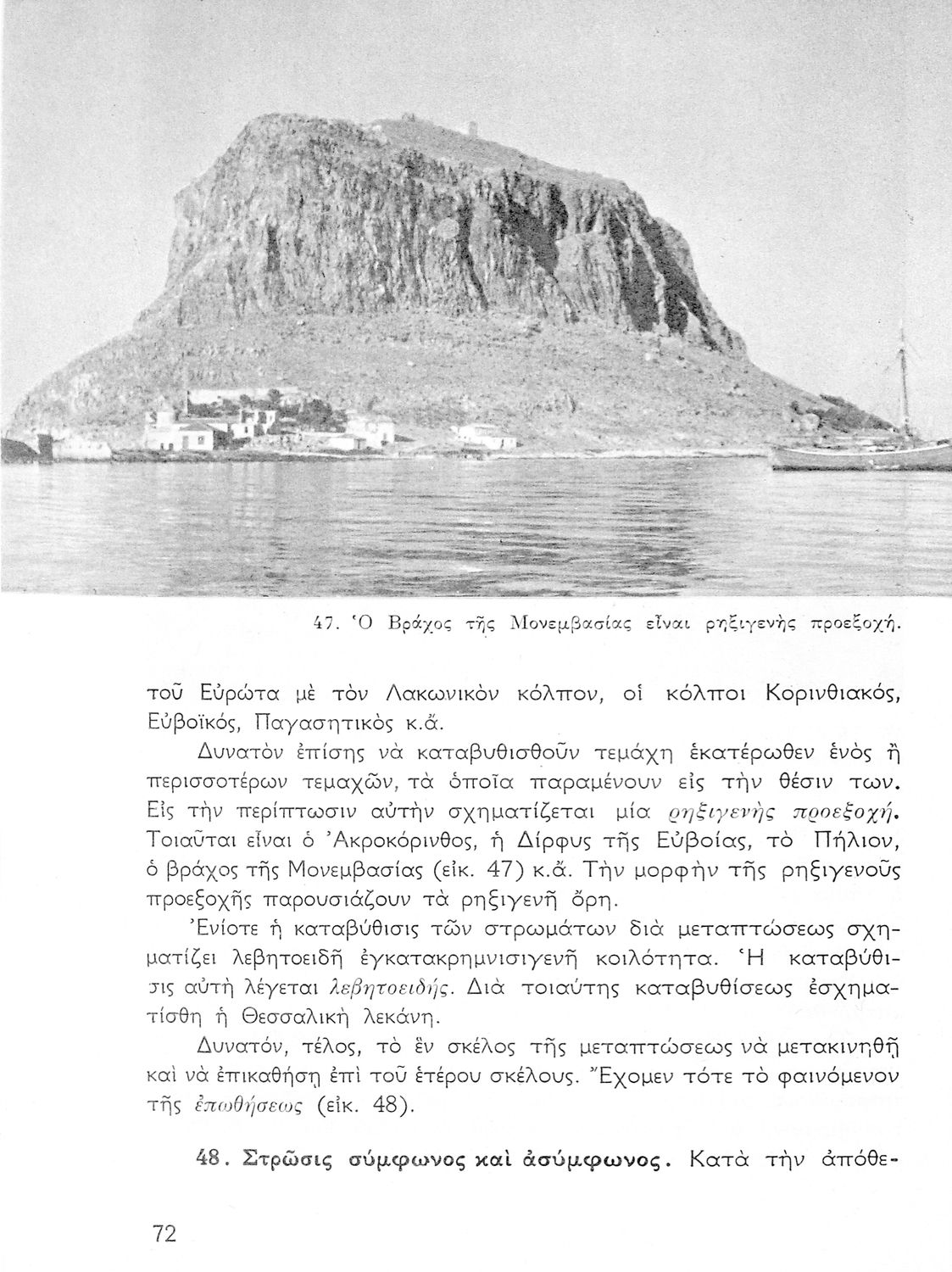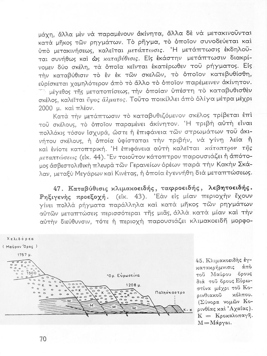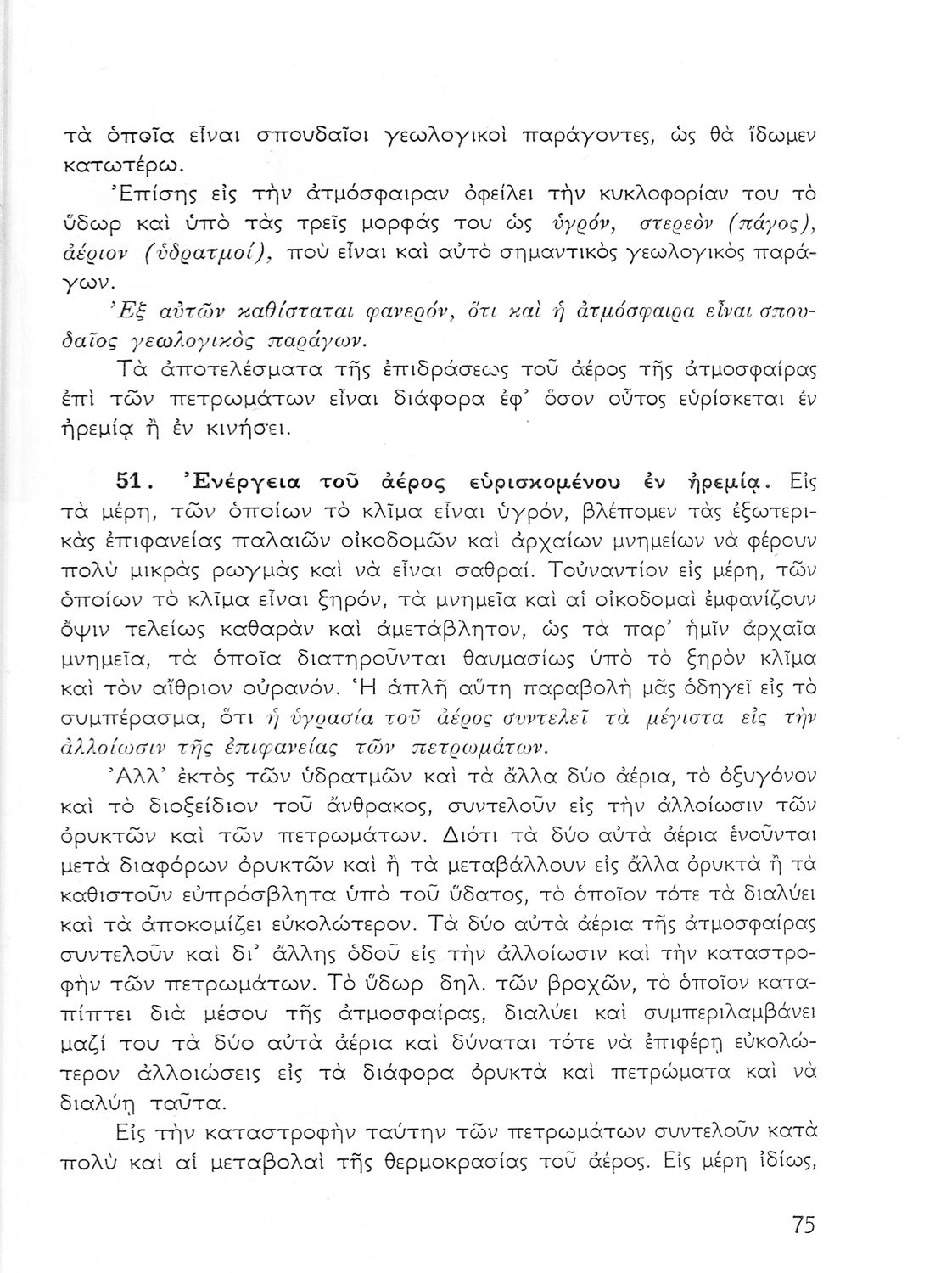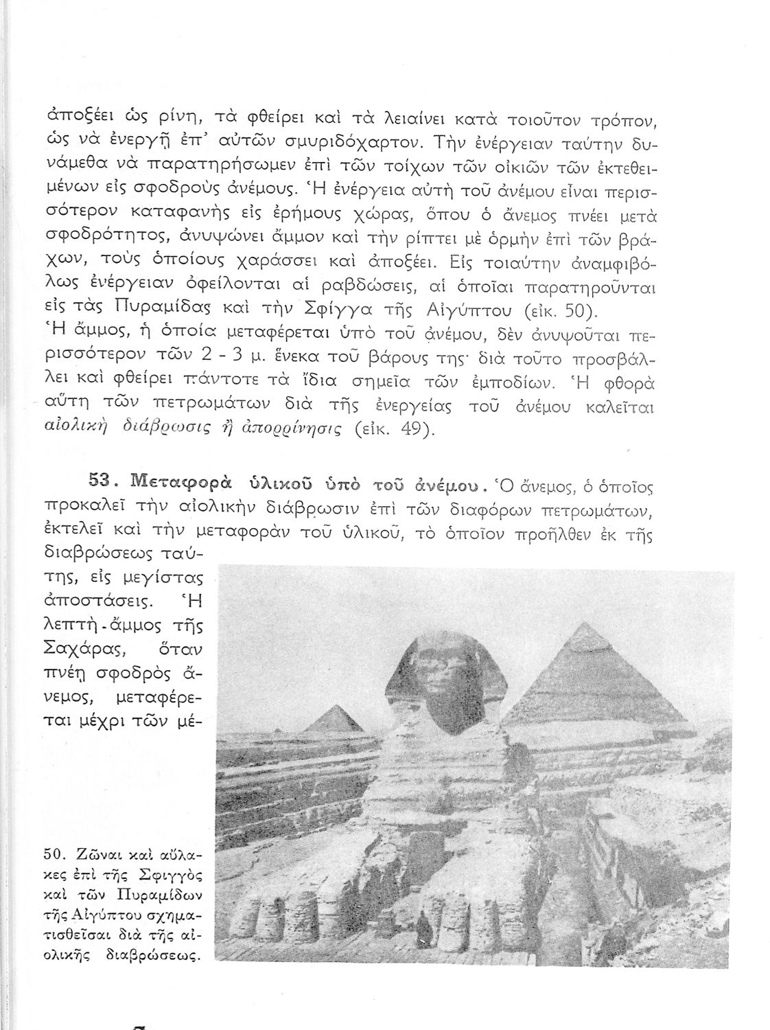 Σχολικό εγχειρίδιο Γεωλογίας/Ορυκτολογίας για τη Δ΄ Γυμνασίου που περιλαμβάνει χθονογραφική, δυναμική και ιστορική γεωλογία, και γενική και ειδική ορυκτολογία. Ο συγγραφέας ήταν καθηγητής πανεπιστημίου και η συγγραφέας φυσικός. Φέρει το σύμβολο της δικτατορίας. Περιέχει παράρτημα με «Στοιχεία Μαθηματικής Γεωγραφίας» από τη γεωγραφία Δ’ τάξης του Αλκίνοου Μάζη (εκδ. 1963).