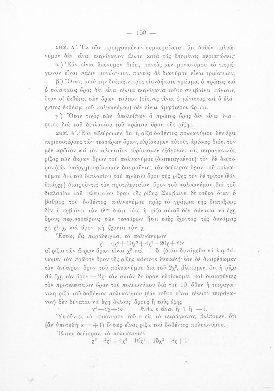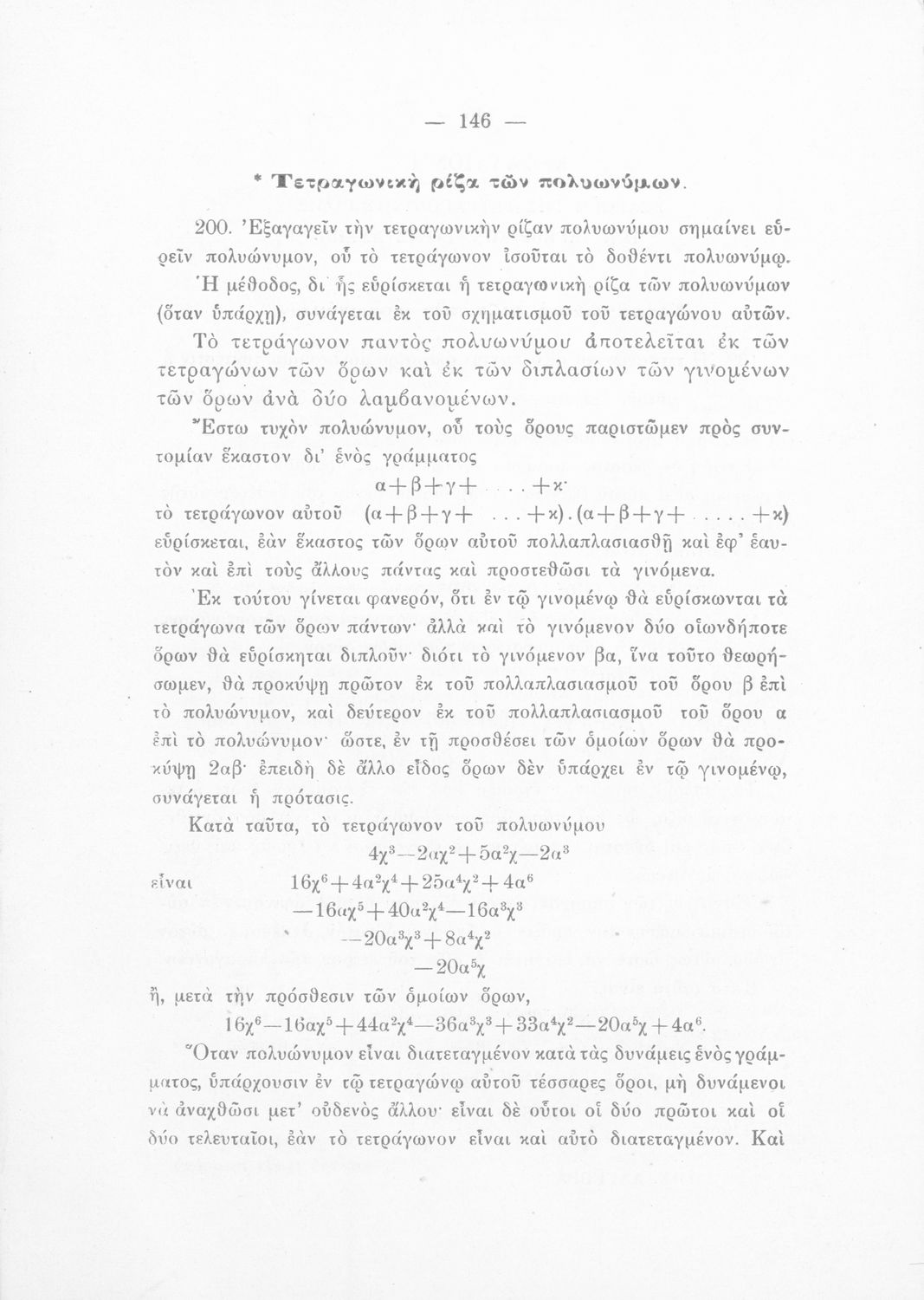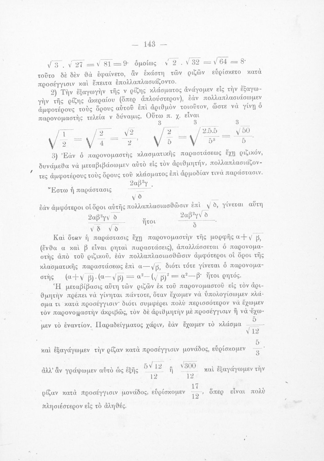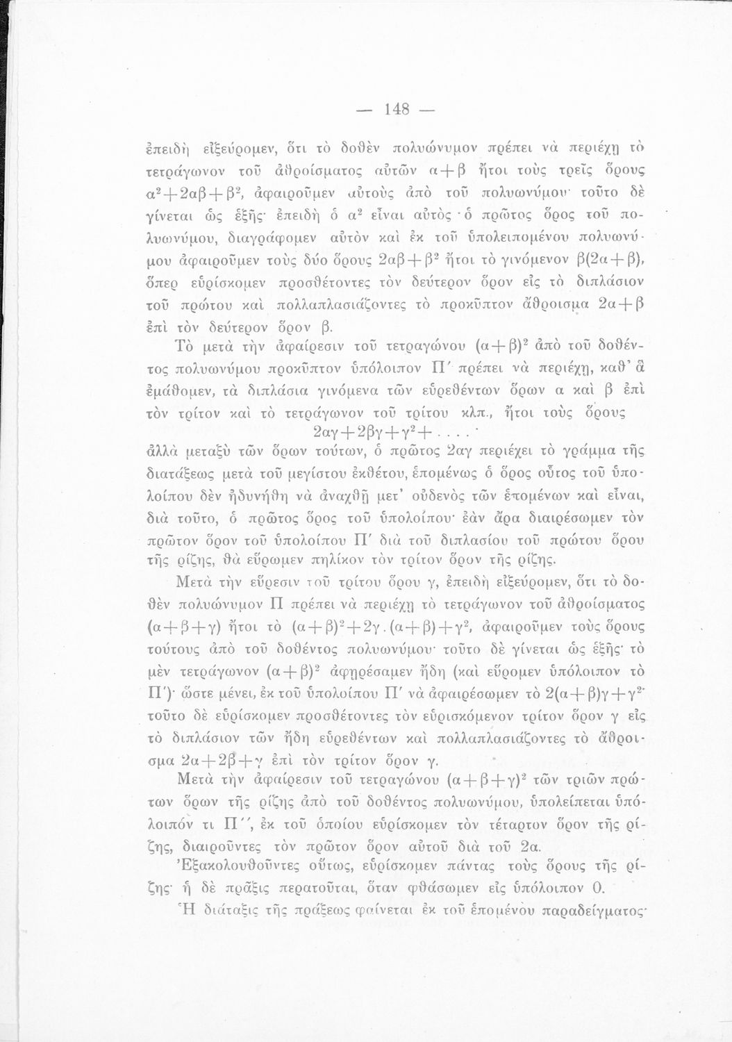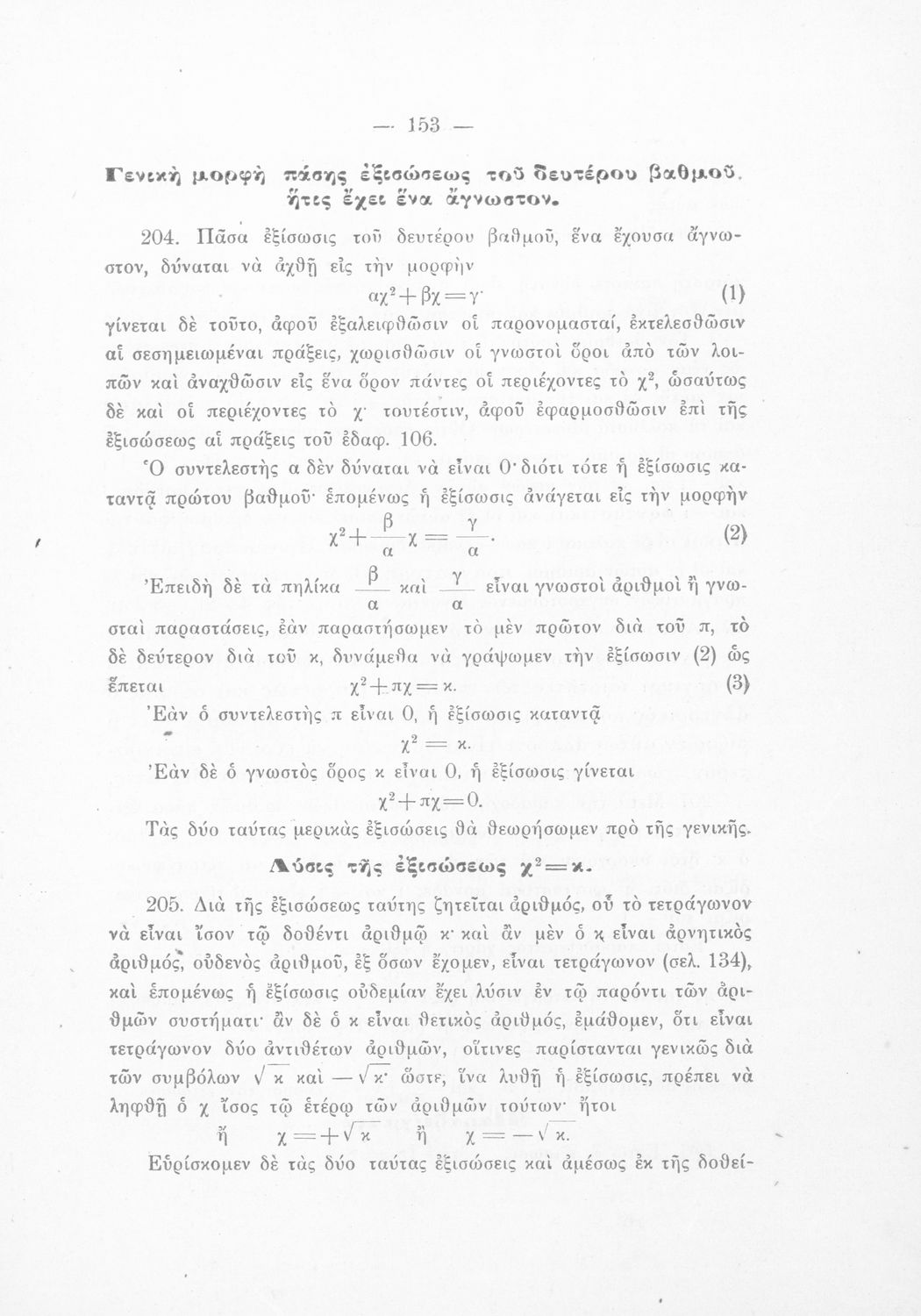 Σχολικό εγχειρίδιο Άλγεβρας Γυμνασίου που περιέχει θεωρία και ασκήσεις. Ο συγγραφέας ήταν υφηγητής στο Εθνικό Πανεπιστήμιο.