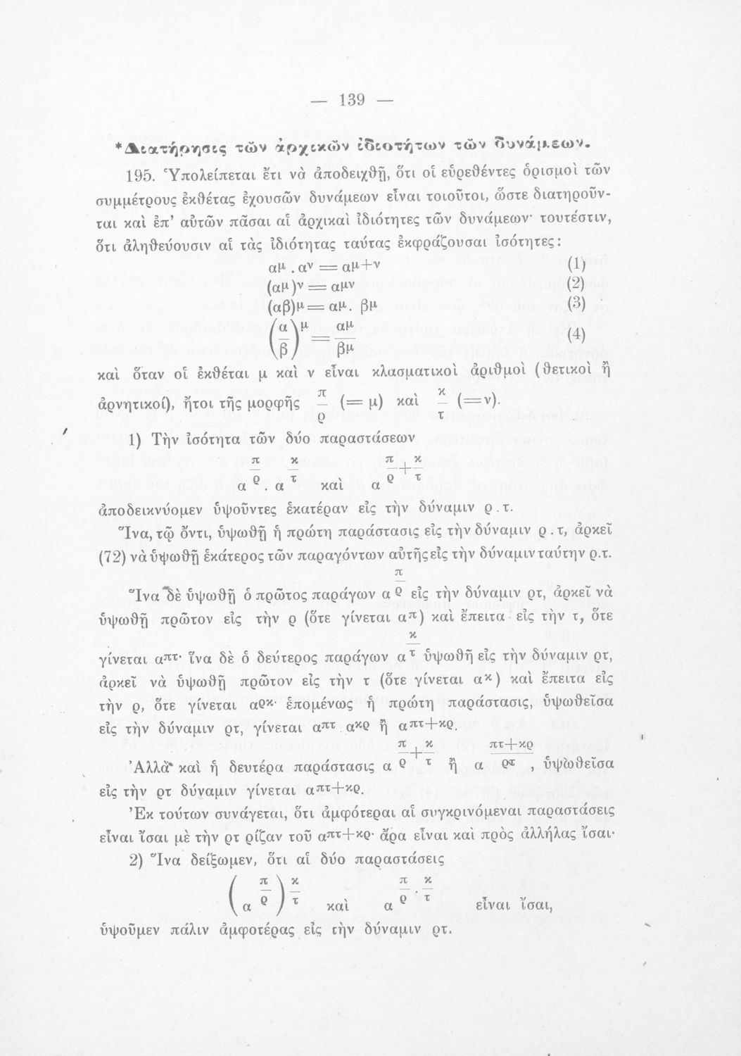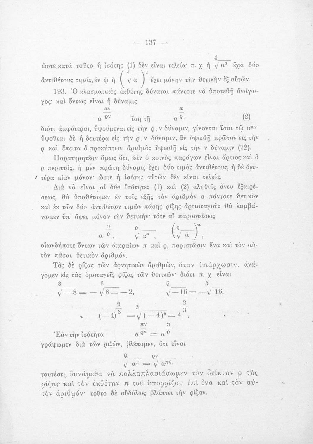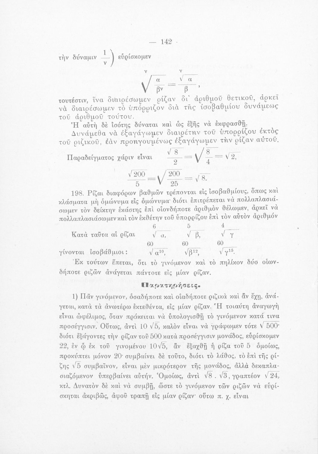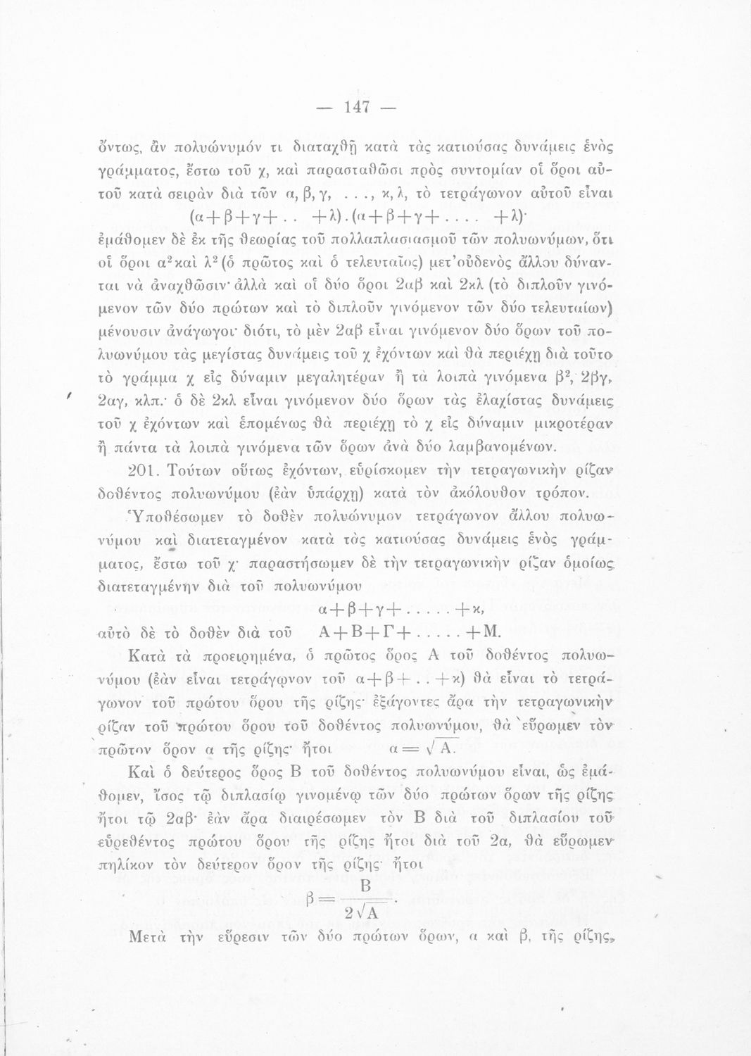 Σχολικό εγχειρίδιο Άλγεβρας Γυμνασίου που περιέχει θεωρία και ασκήσεις. Ο συγγραφέας ήταν υφηγητής στο Εθνικό Πανεπιστήμιο.