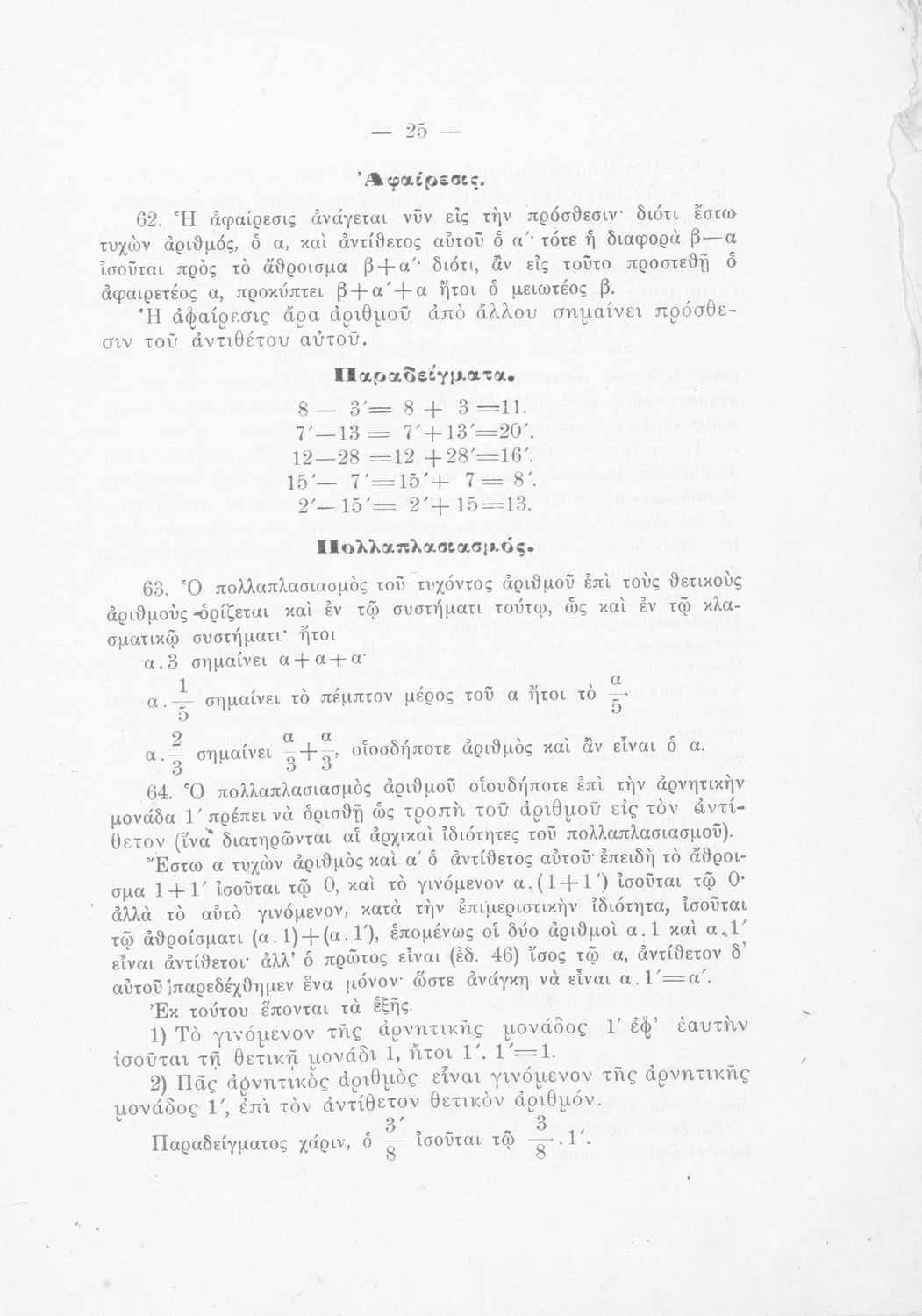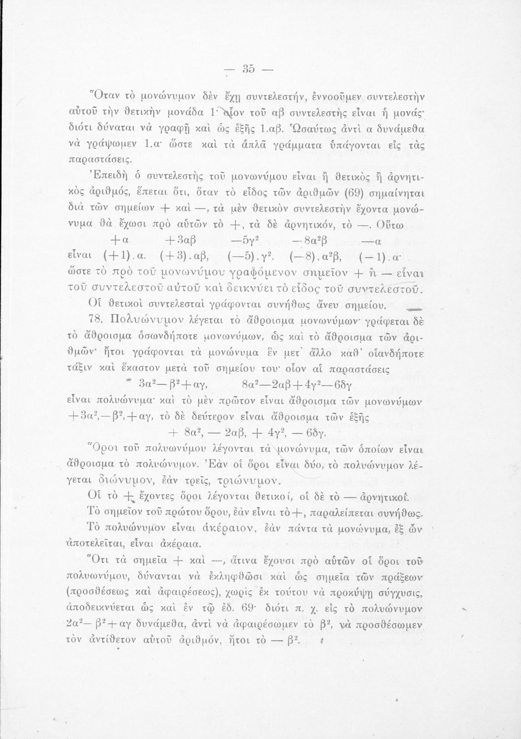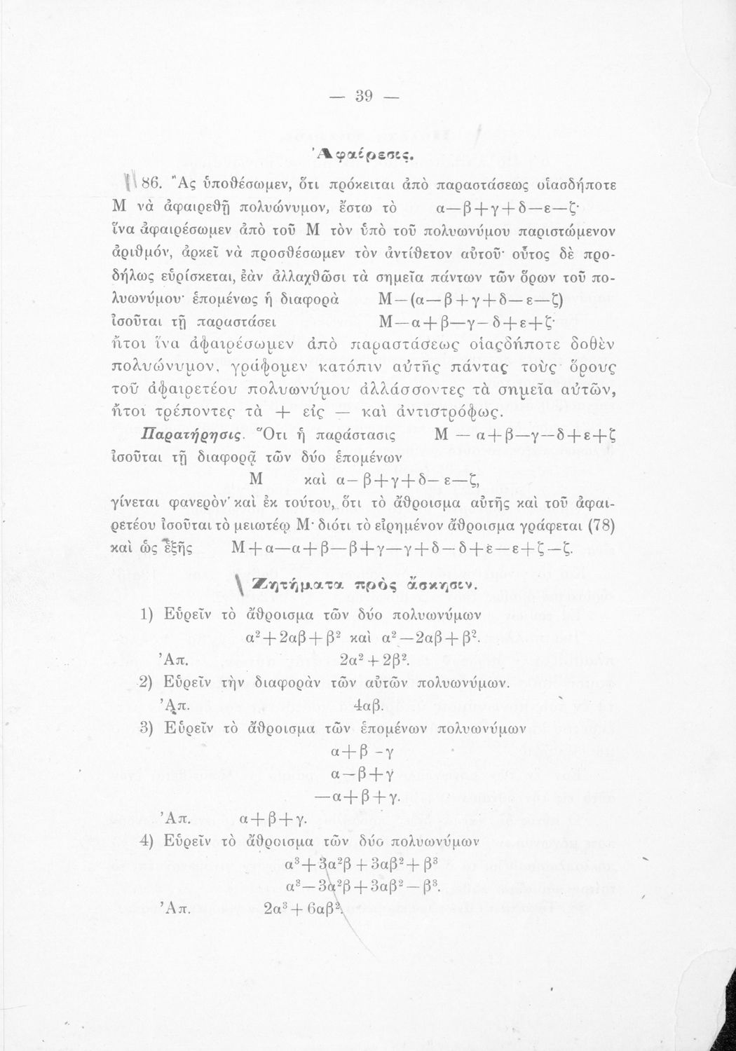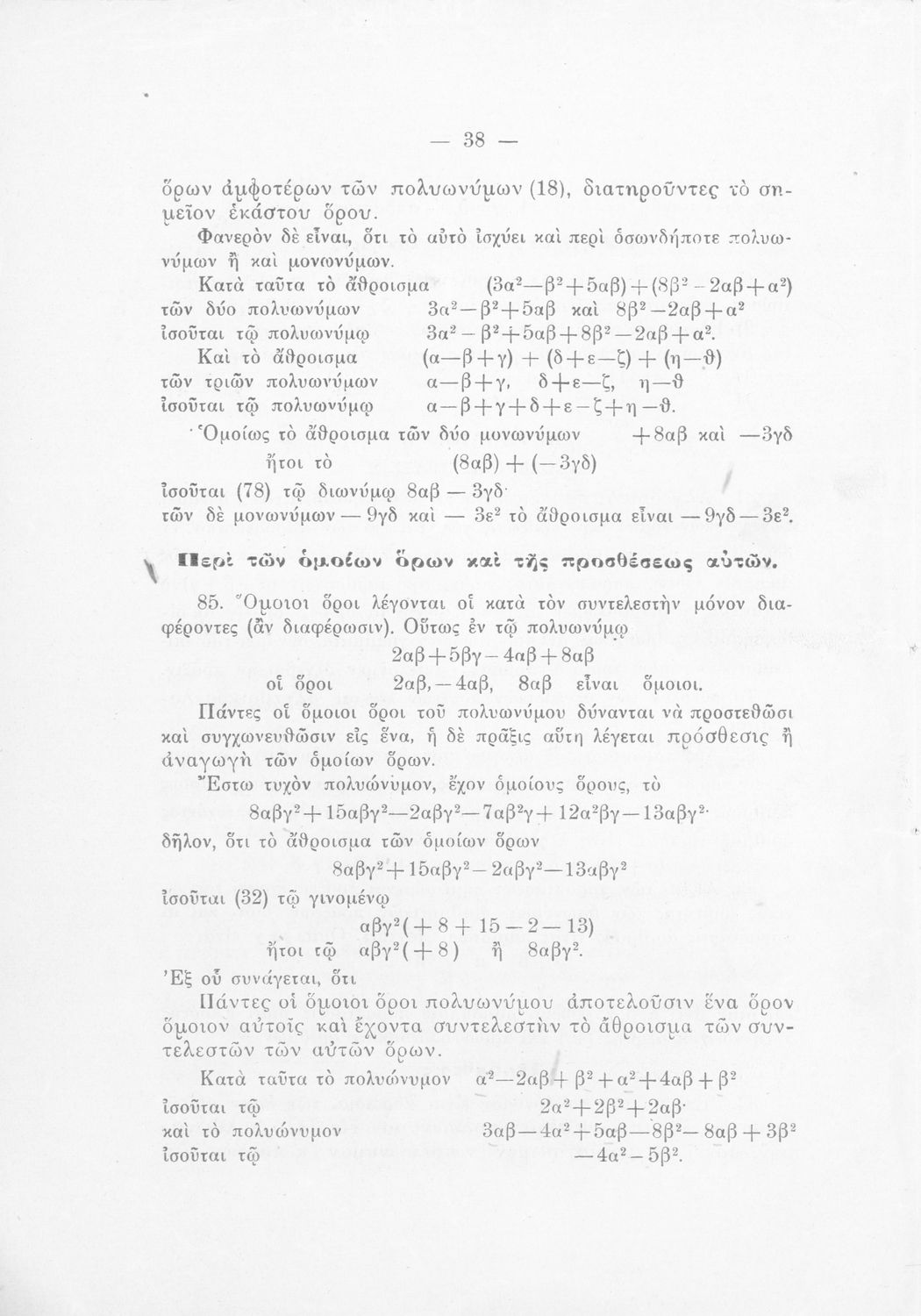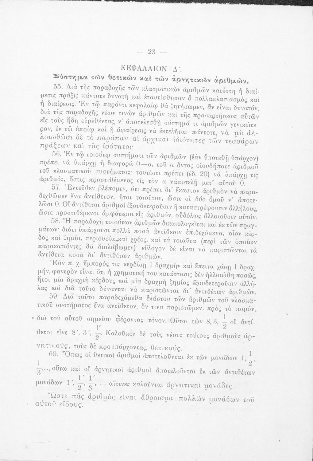 Σχολικό εγχειρίδιο Άλγεβρας Γυμνασίου που περιέχει θεωρία και ασκήσεις. Ο συγγραφέας ήταν υφηγητής στο Εθνικό Πανεπιστήμιο.