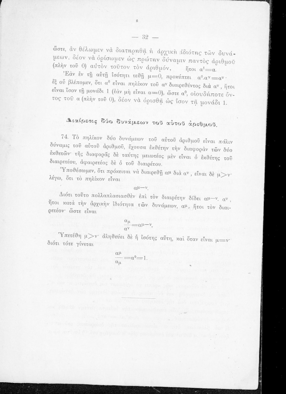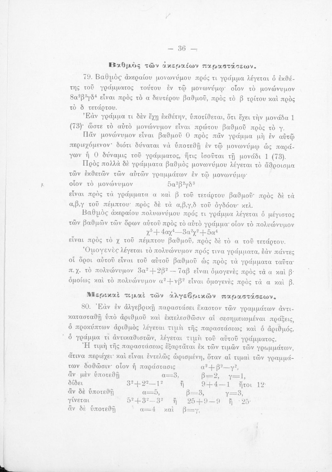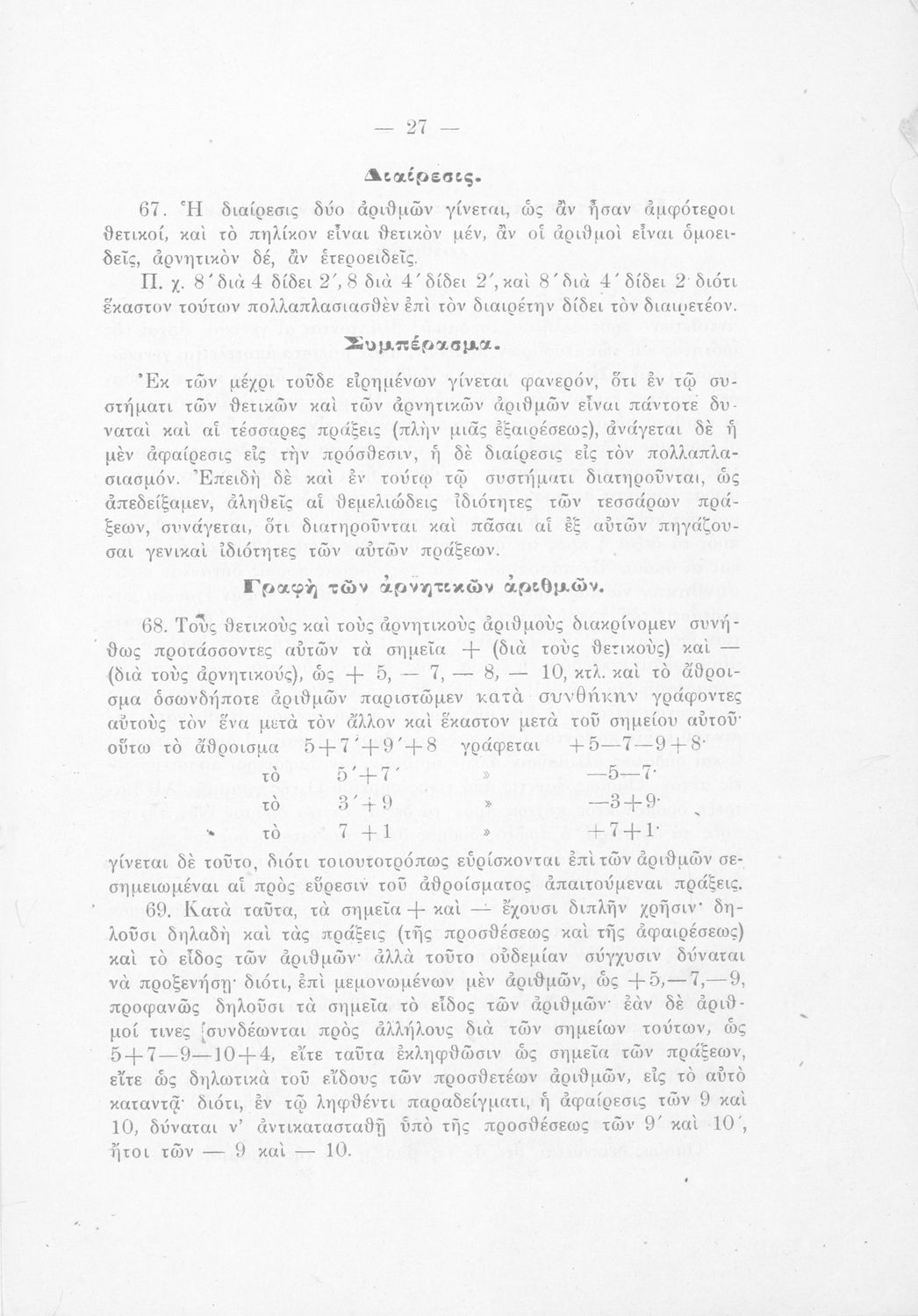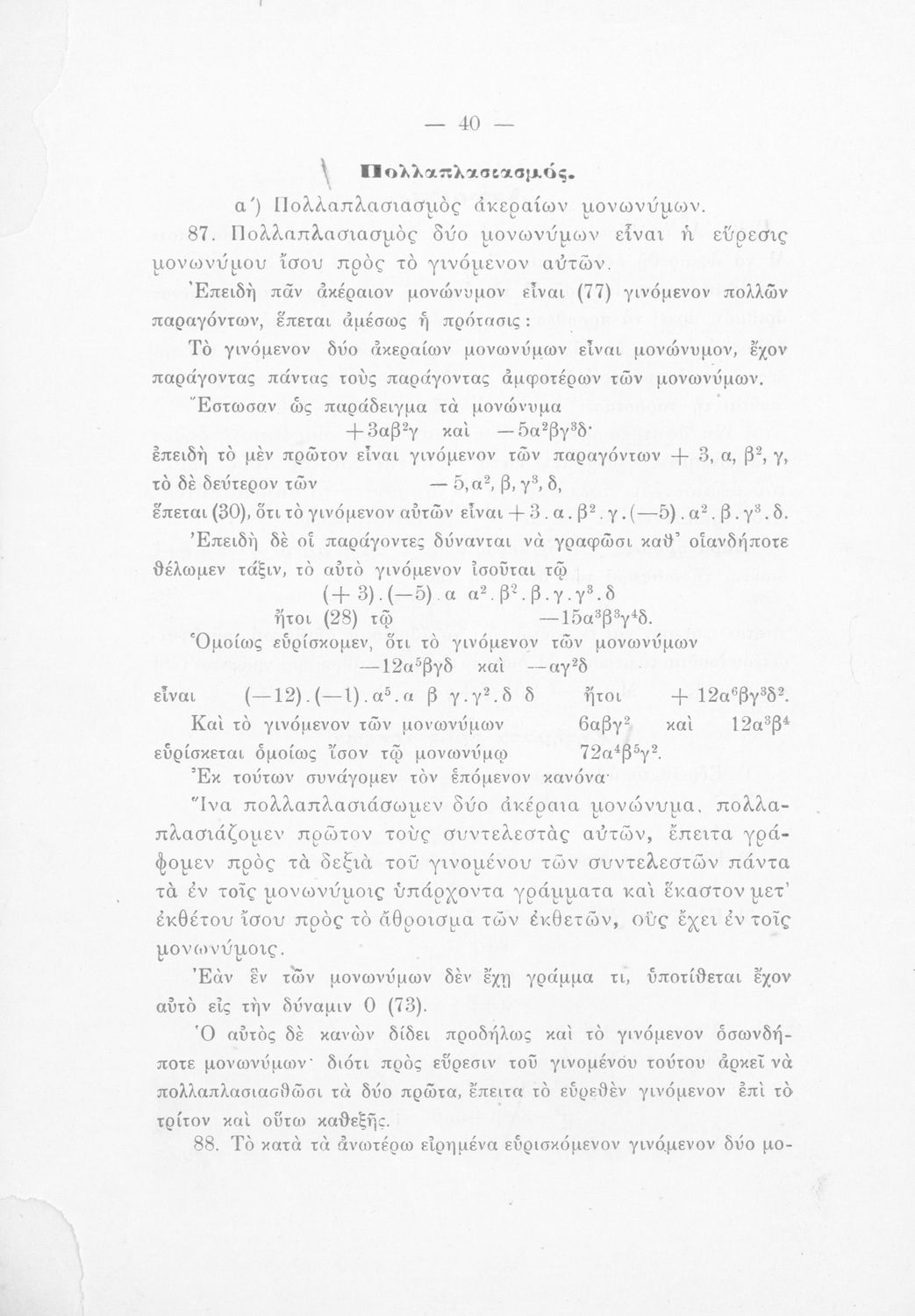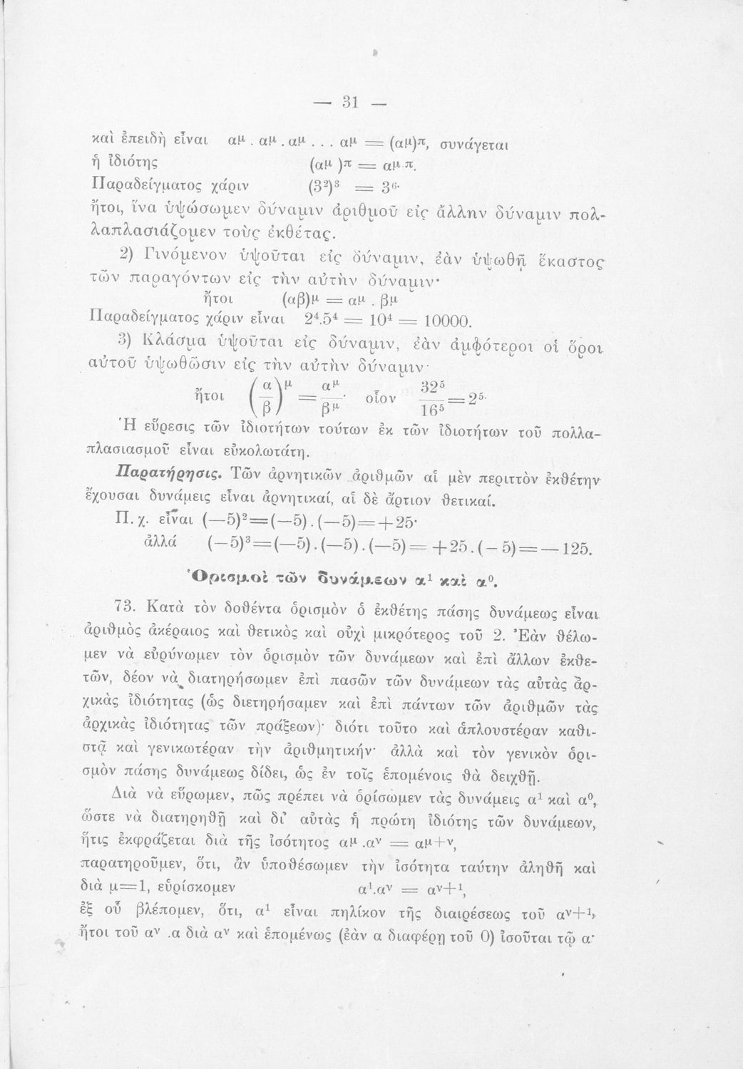 Σχολικό εγχειρίδιο Άλγεβρας Γυμνασίου που περιέχει θεωρία και ασκήσεις. Ο συγγραφέας ήταν υφηγητής στο Εθνικό Πανεπιστήμιο.