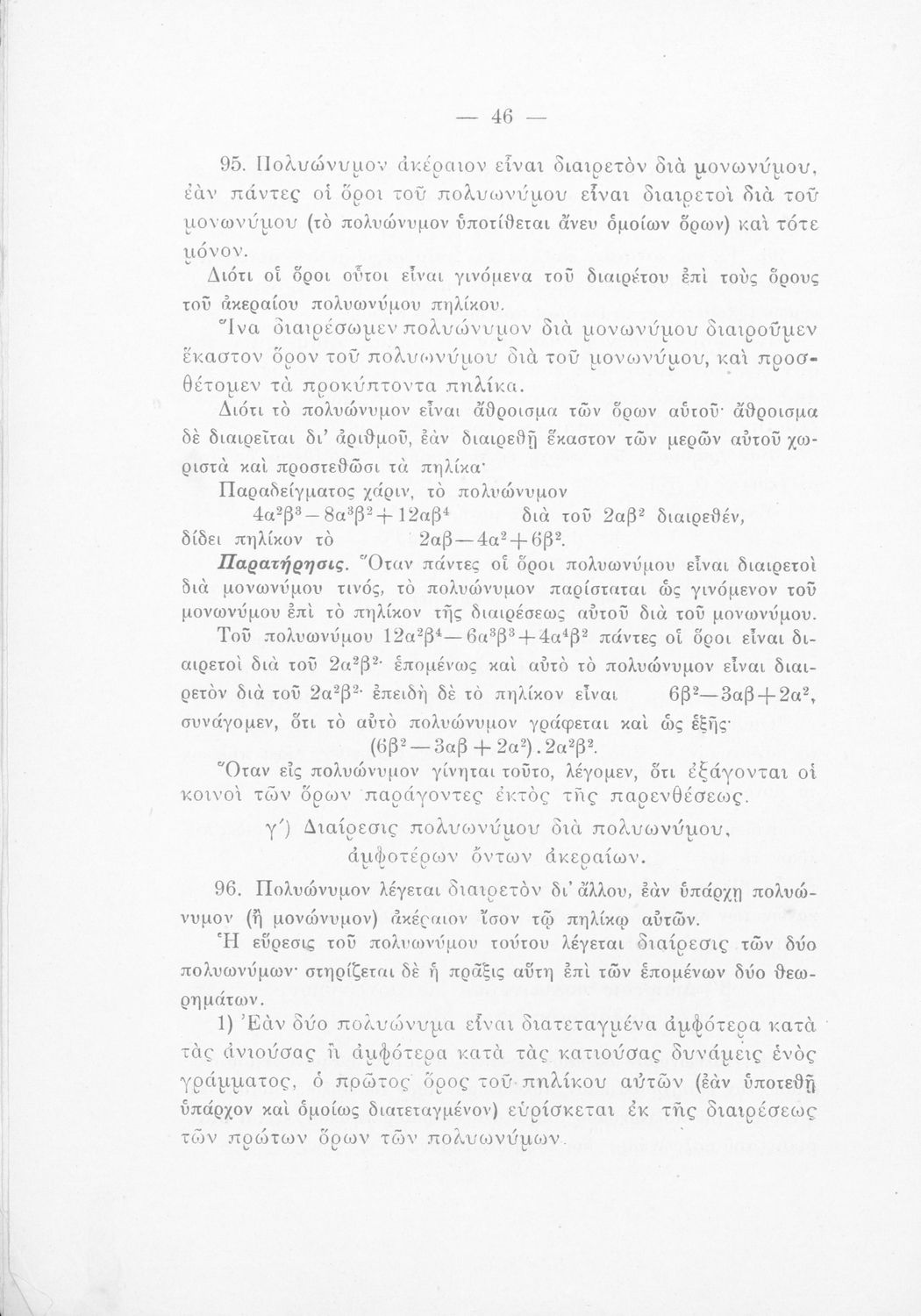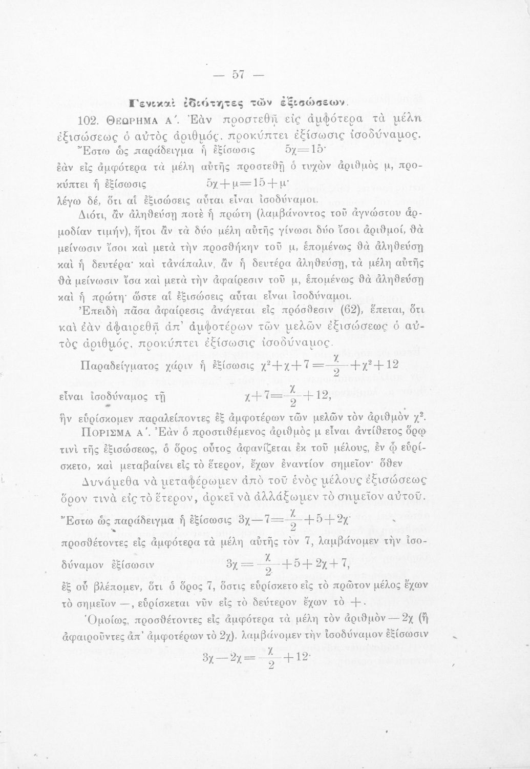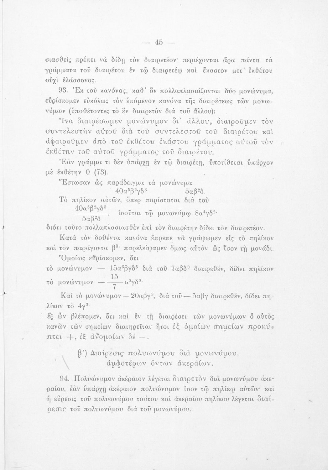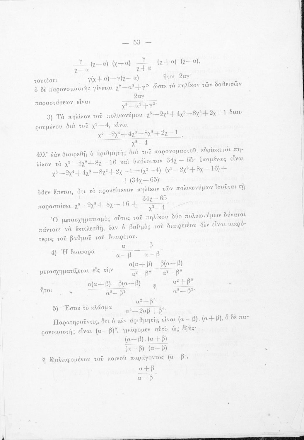 Σχολικό εγχειρίδιο Άλγεβρας Γυμνασίου που περιέχει θεωρία και ασκήσεις. Ο συγγραφέας ήταν υφηγητής στο Εθνικό Πανεπιστήμιο.