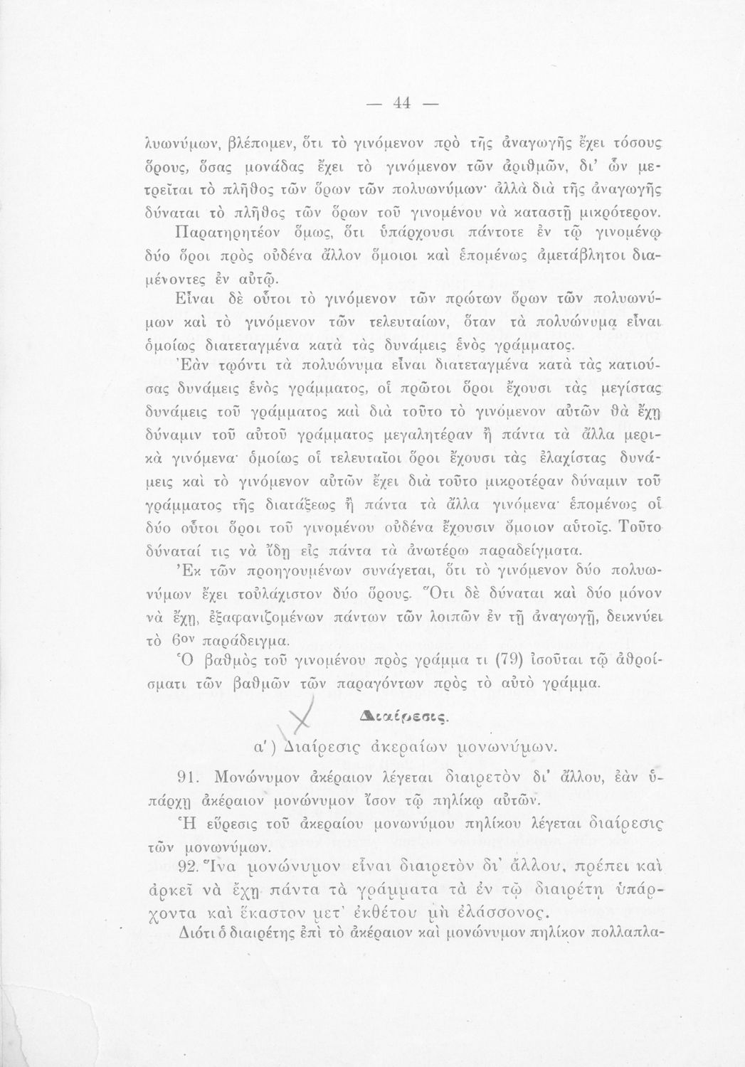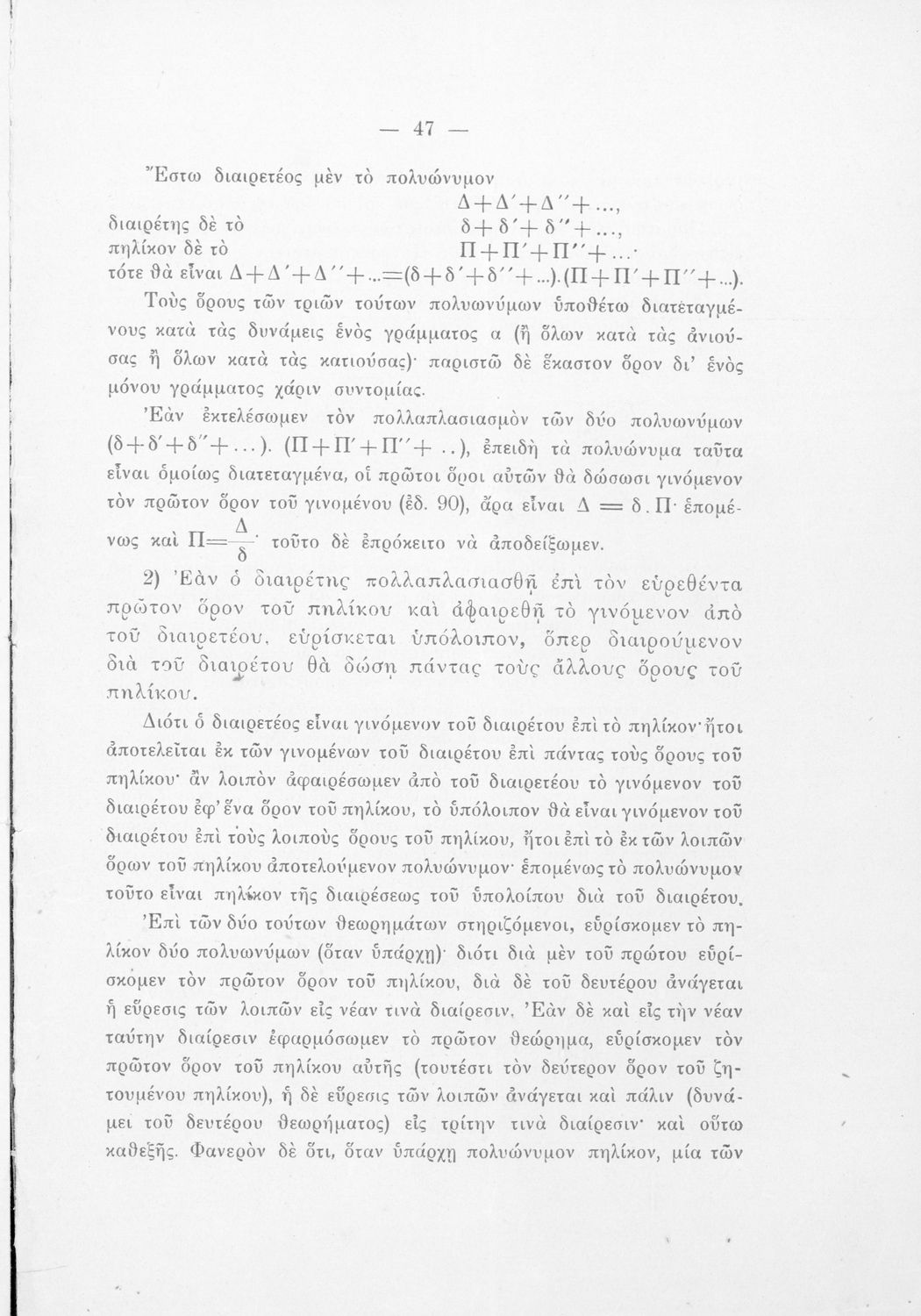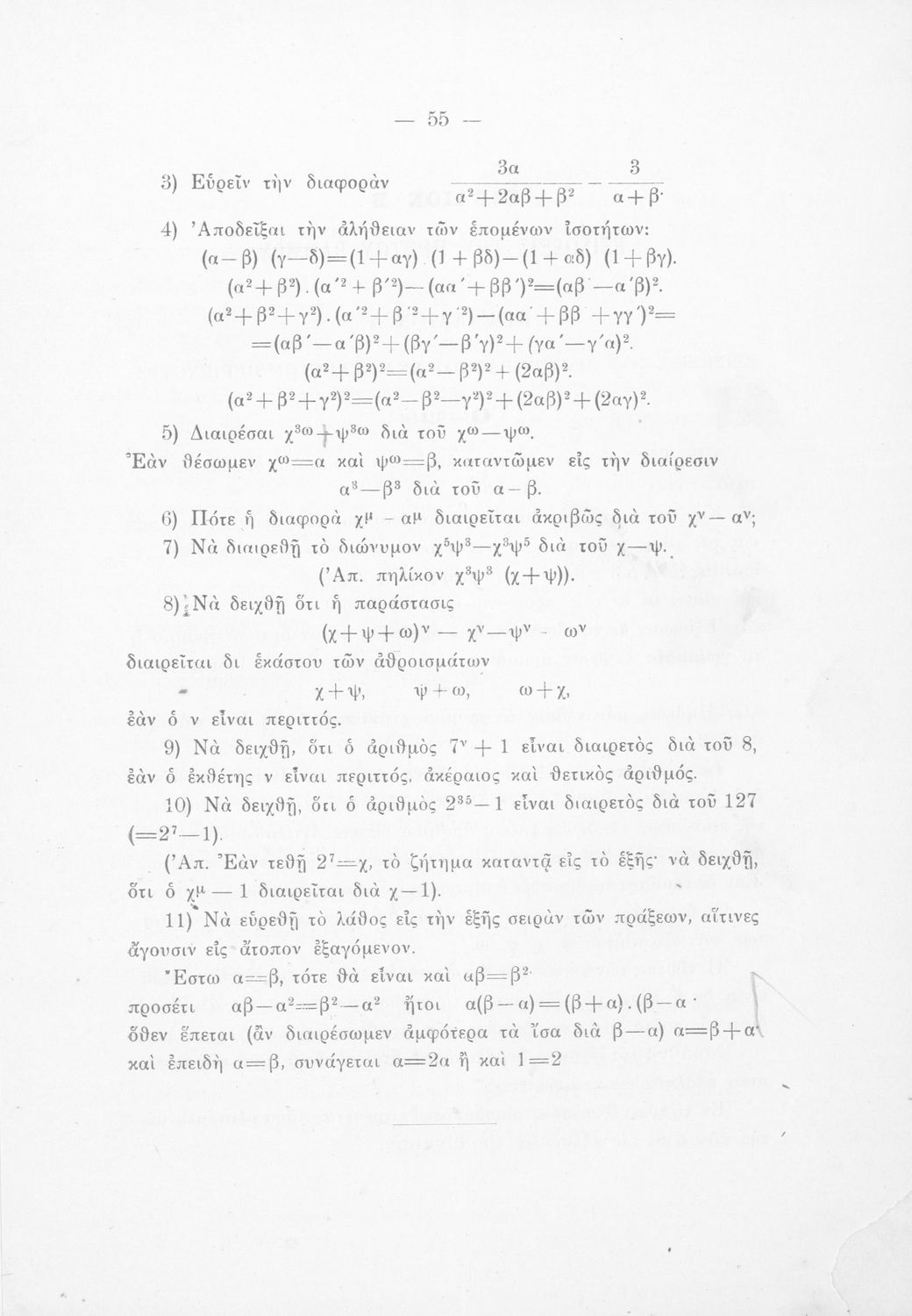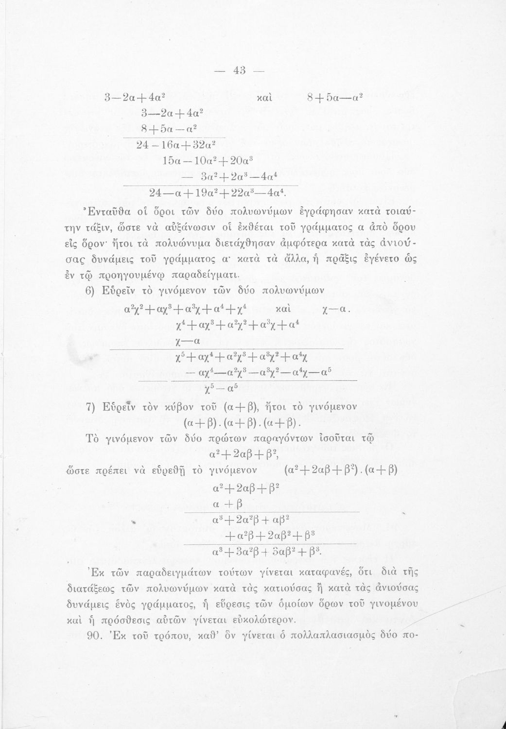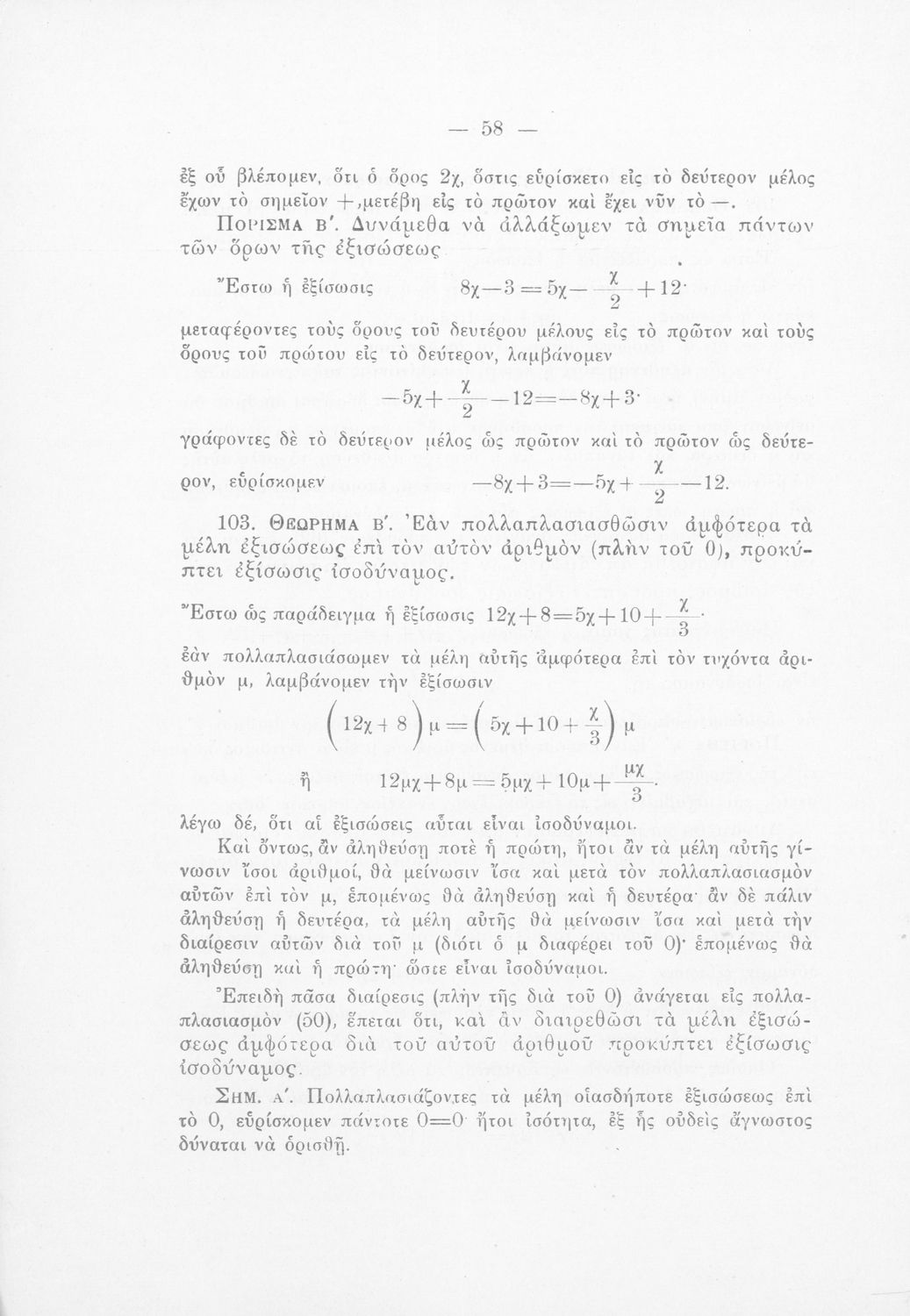 Σχολικό εγχειρίδιο Άλγεβρας Γυμνασίου που περιέχει θεωρία και ασκήσεις. Ο συγγραφέας ήταν υφηγητής στο Εθνικό Πανεπιστήμιο.