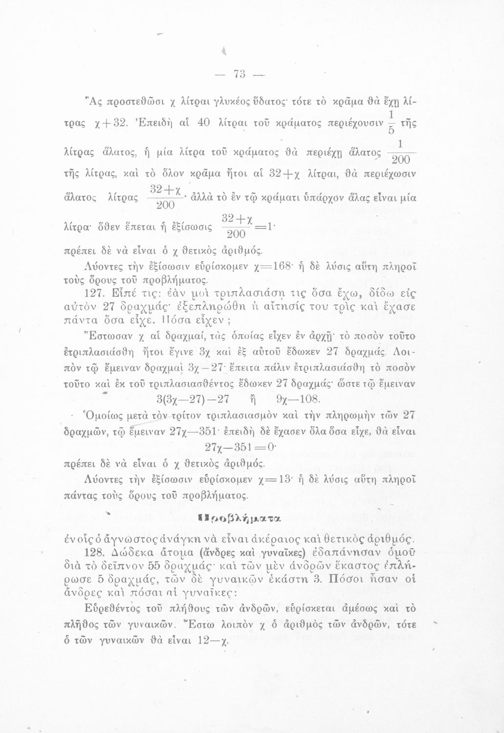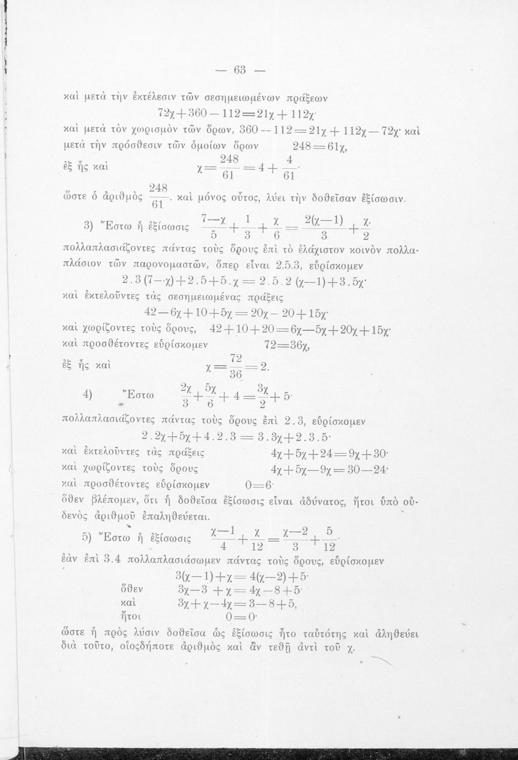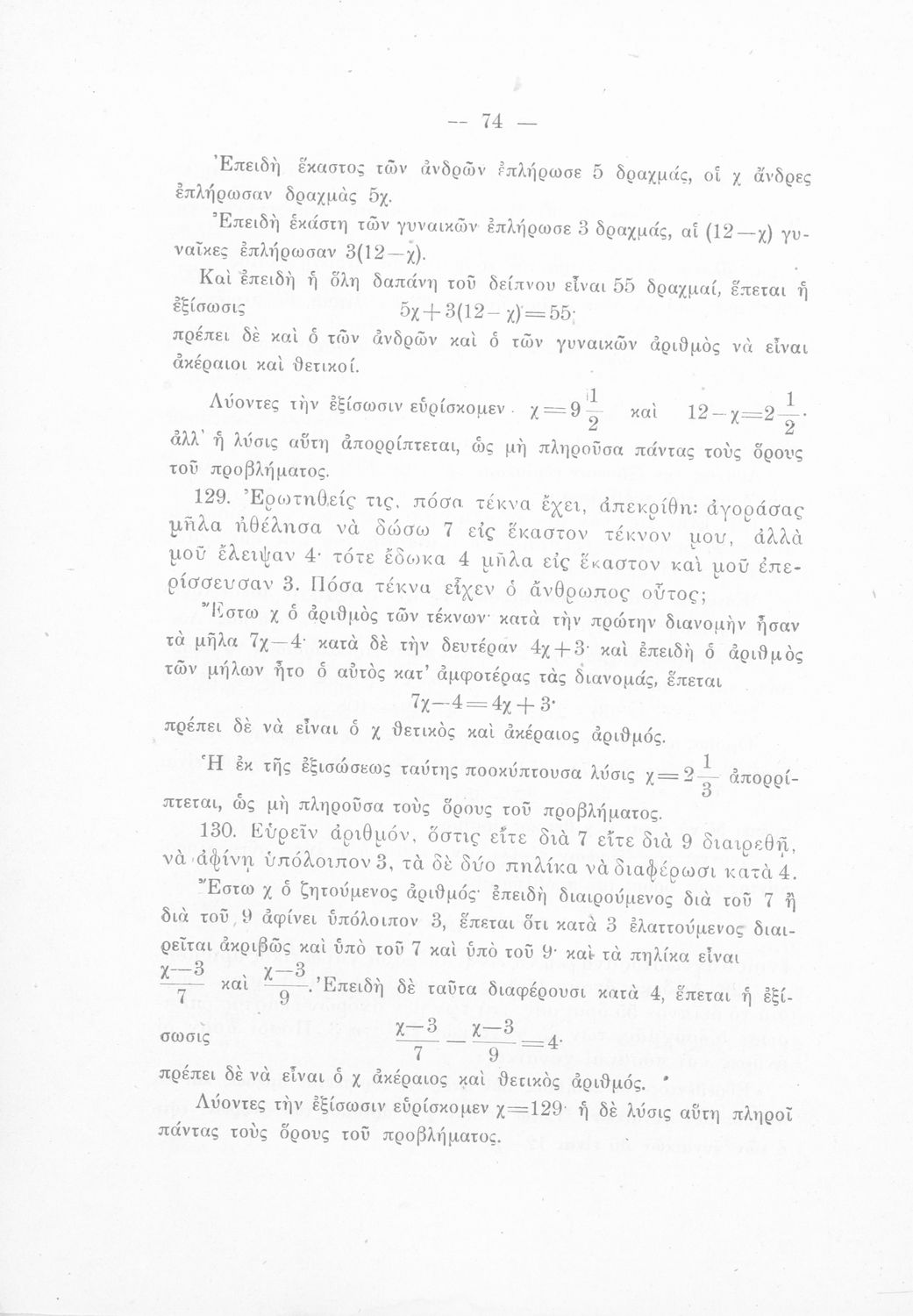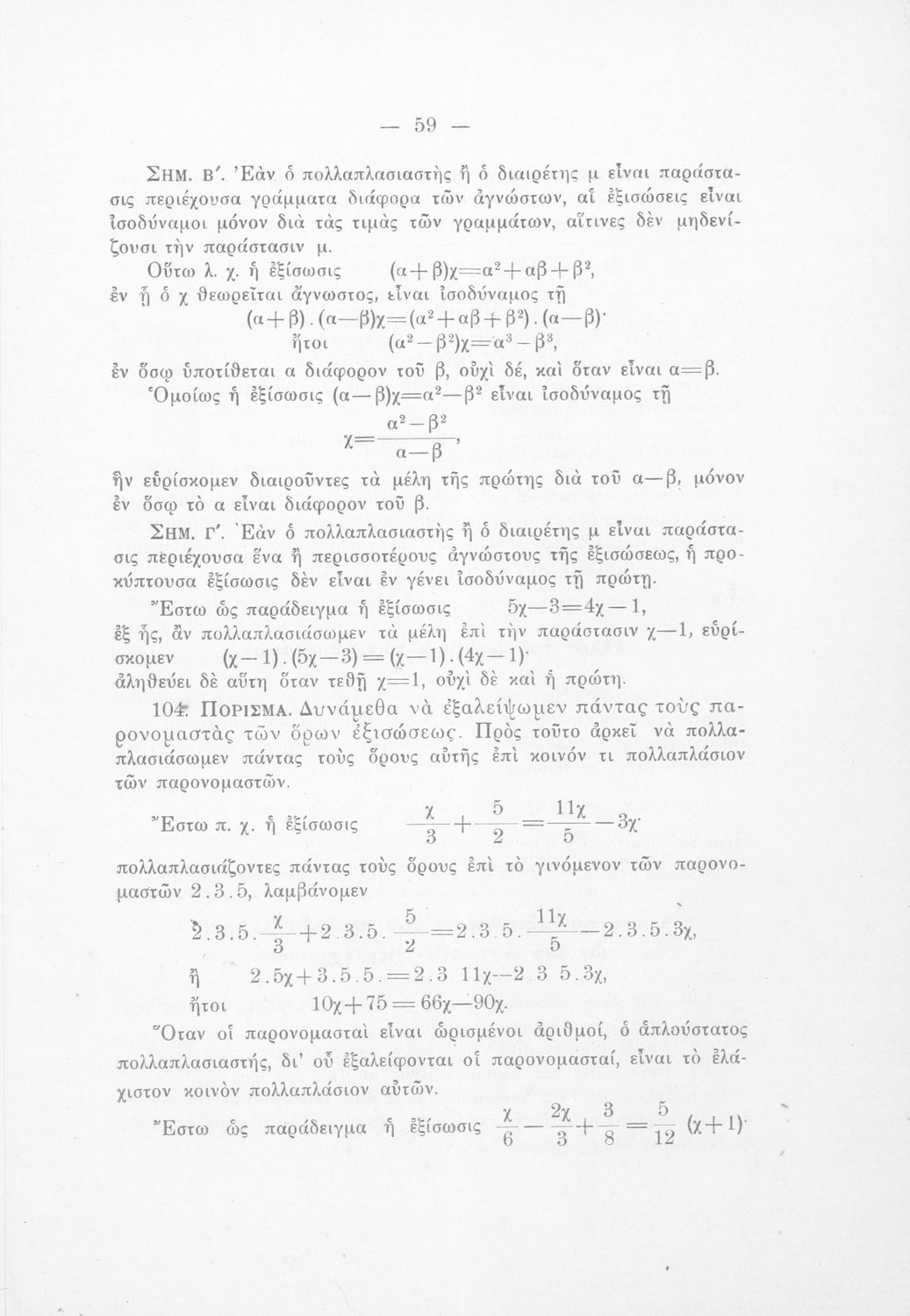 Σχολικό εγχειρίδιο Άλγεβρας Γυμνασίου που περιέχει θεωρία και ασκήσεις. Ο συγγραφέας ήταν υφηγητής στο Εθνικό Πανεπιστήμιο.