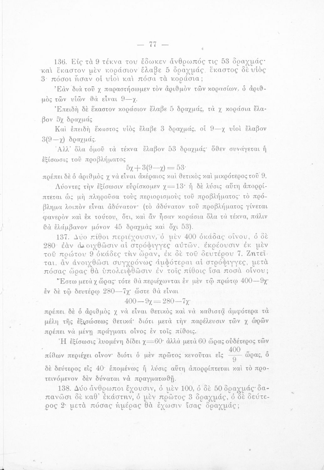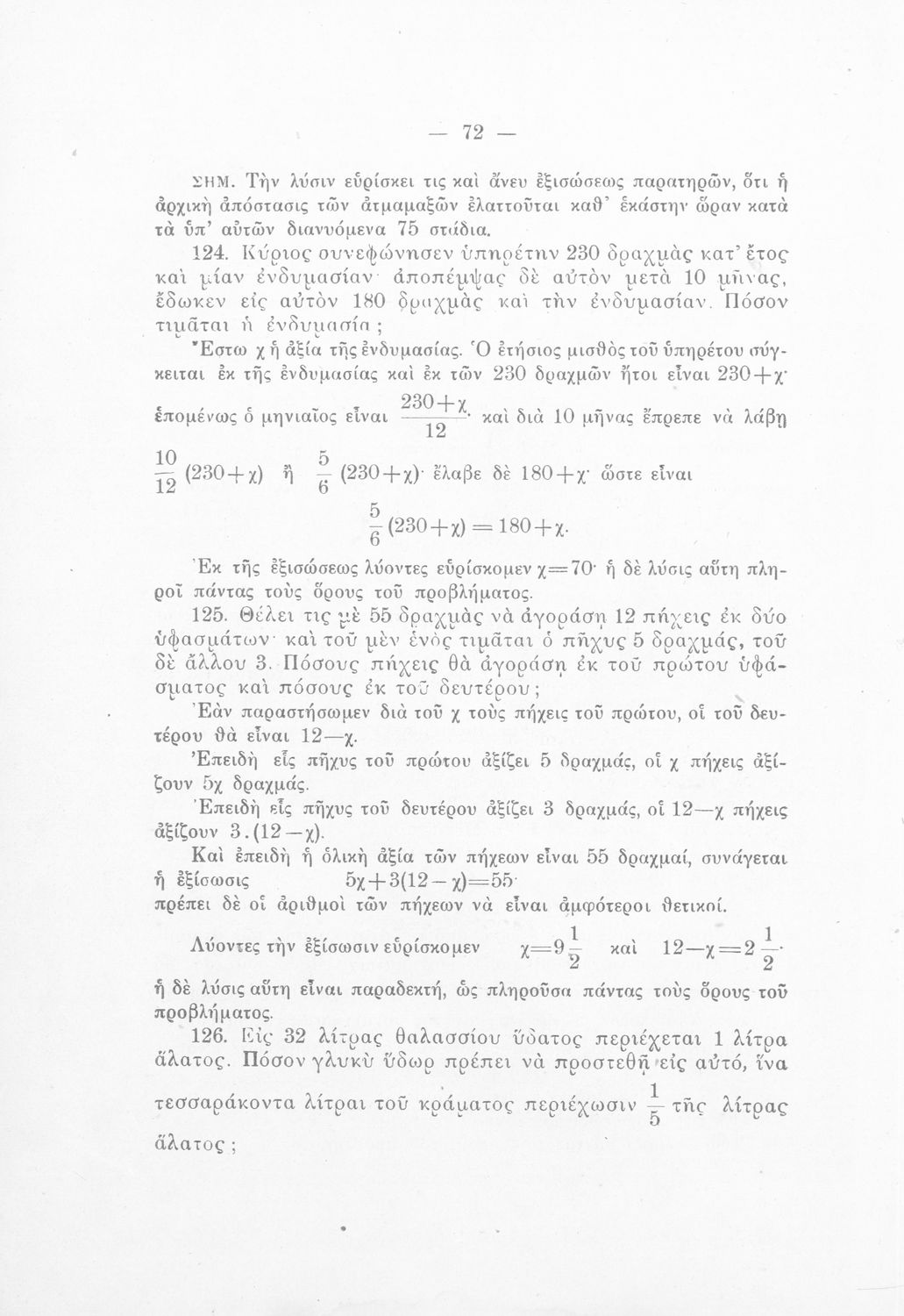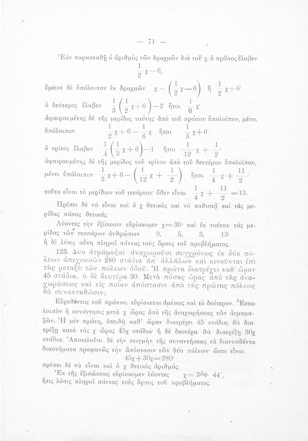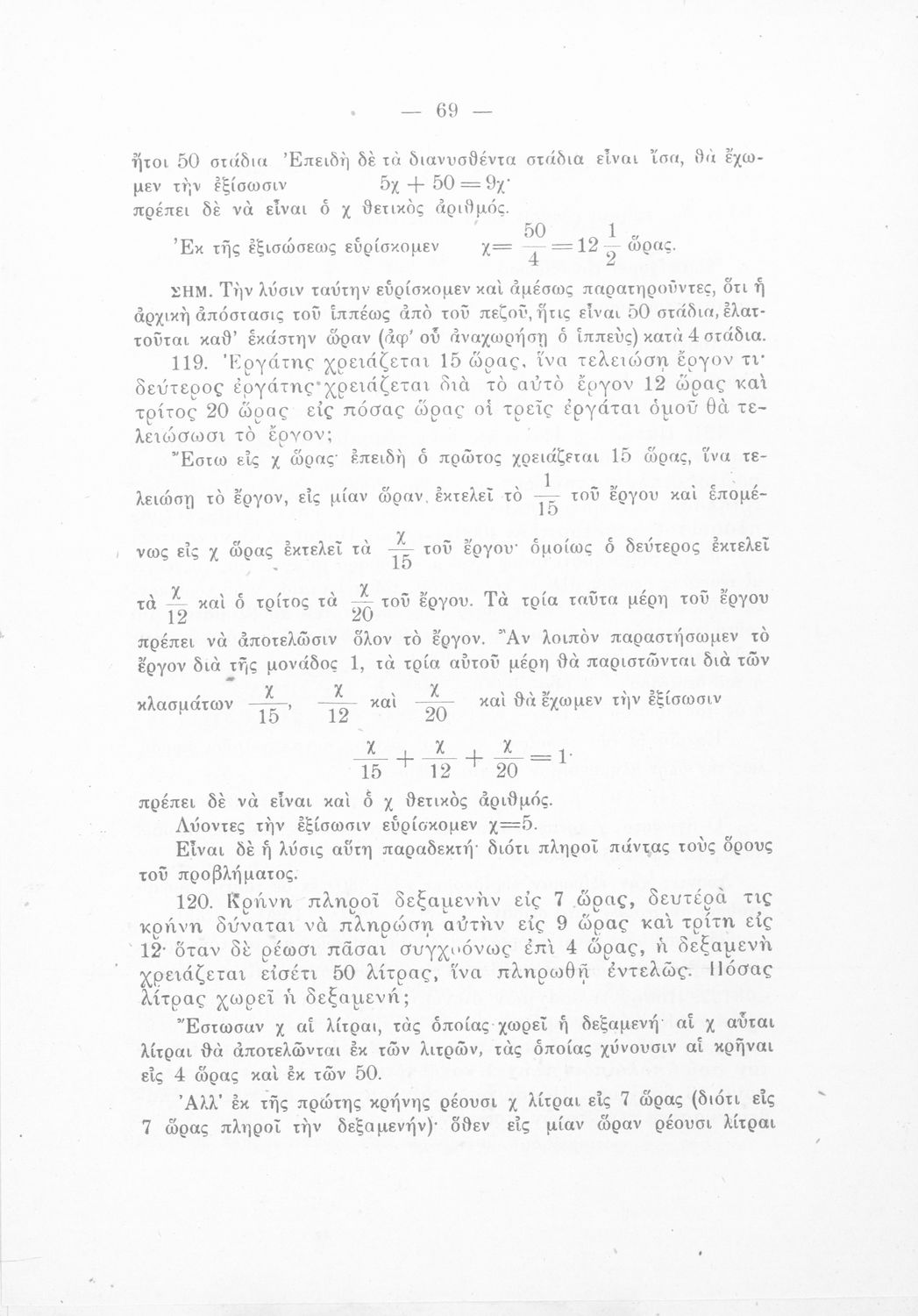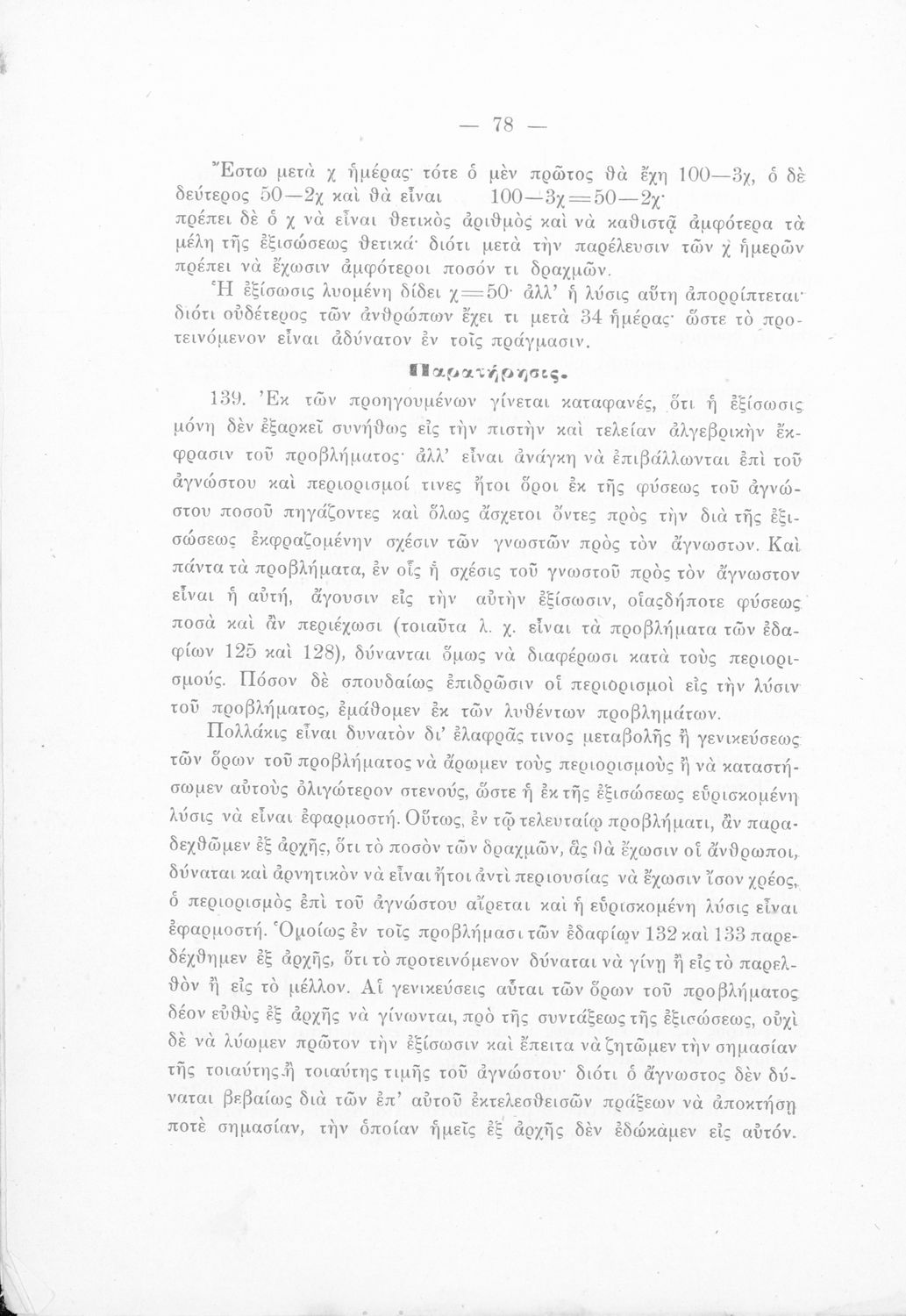 Σχολικό εγχειρίδιο Άλγεβρας Γυμνασίου που περιέχει θεωρία και ασκήσεις. Ο συγγραφέας ήταν υφηγητής στο Εθνικό Πανεπιστήμιο.