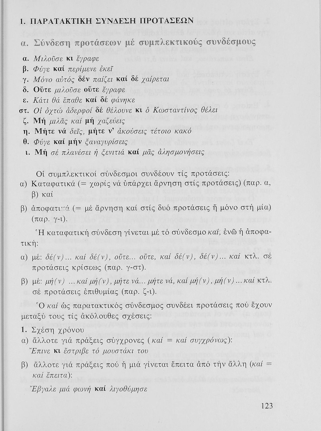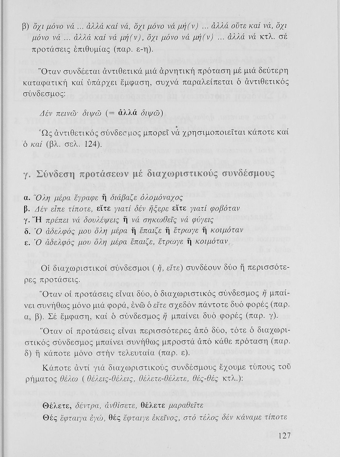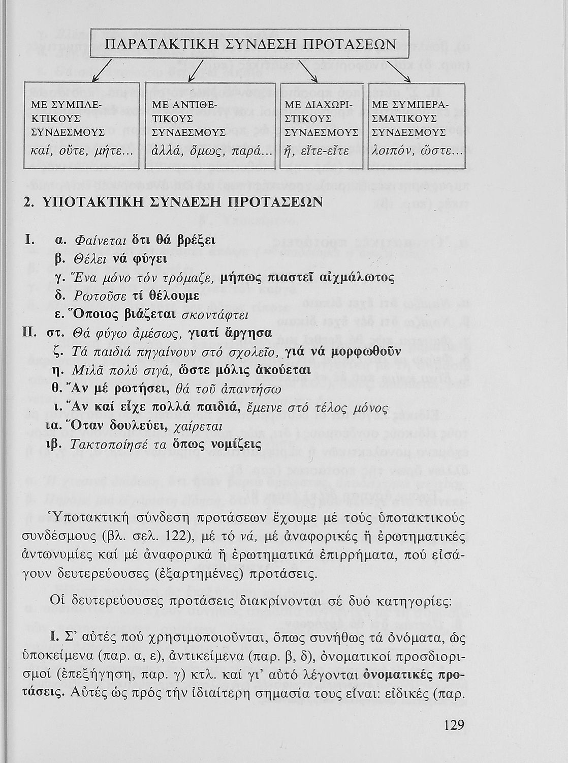 Σχολικό εγχειρίδιο Νέων Ελληνικών για τις Β΄ και Γ΄ Γυμνασίου που εξετάζει τα μέρη του λόγου και την σύνταξή τους.