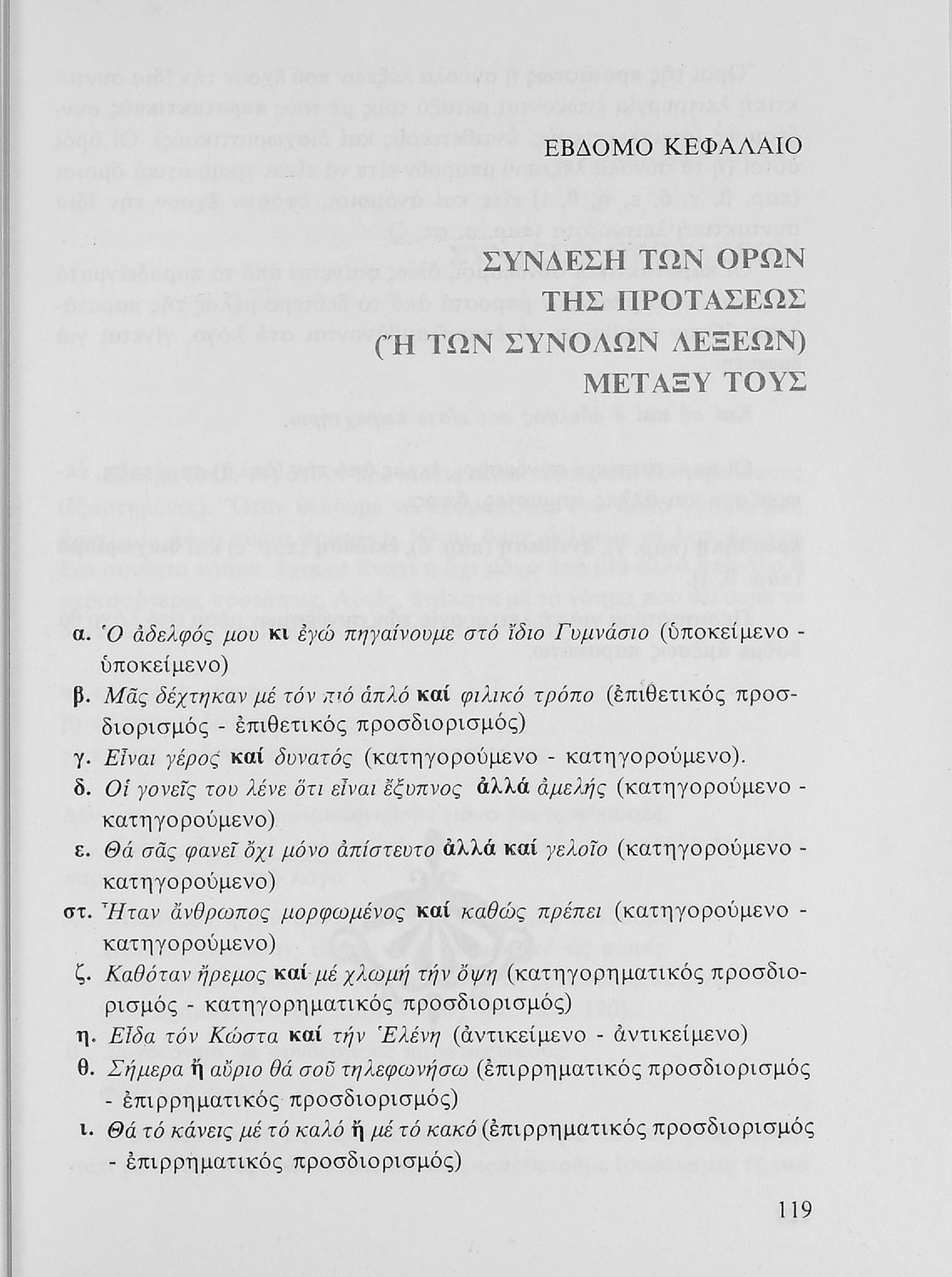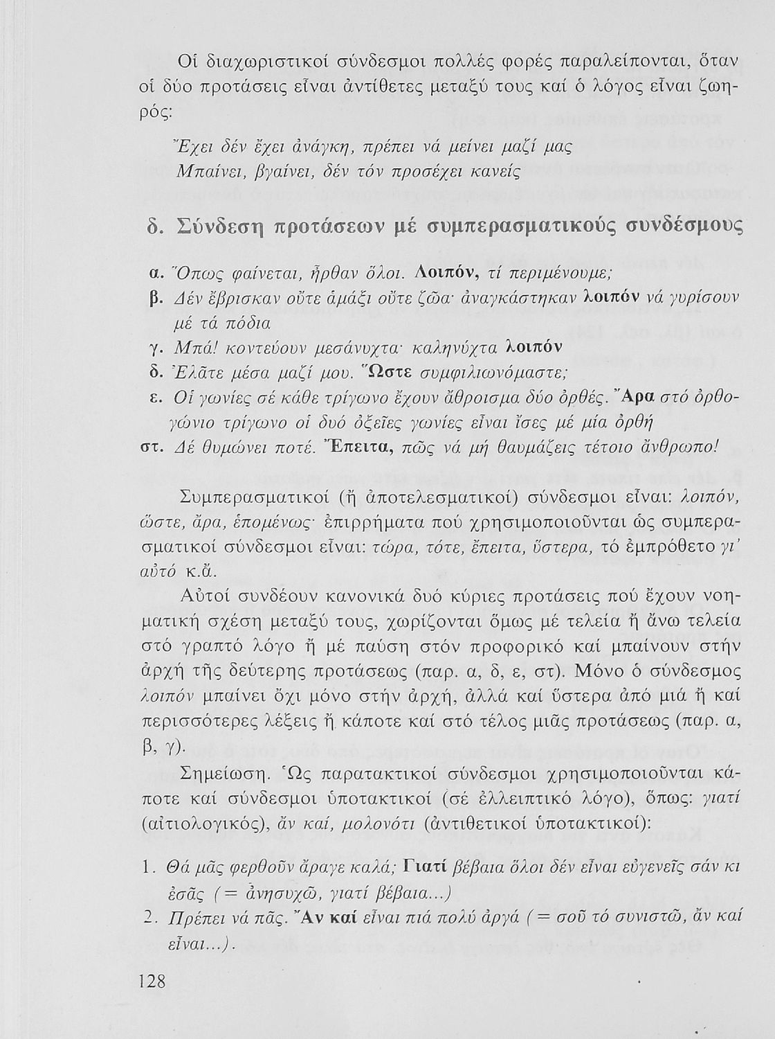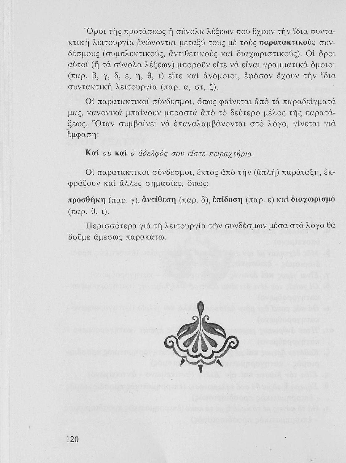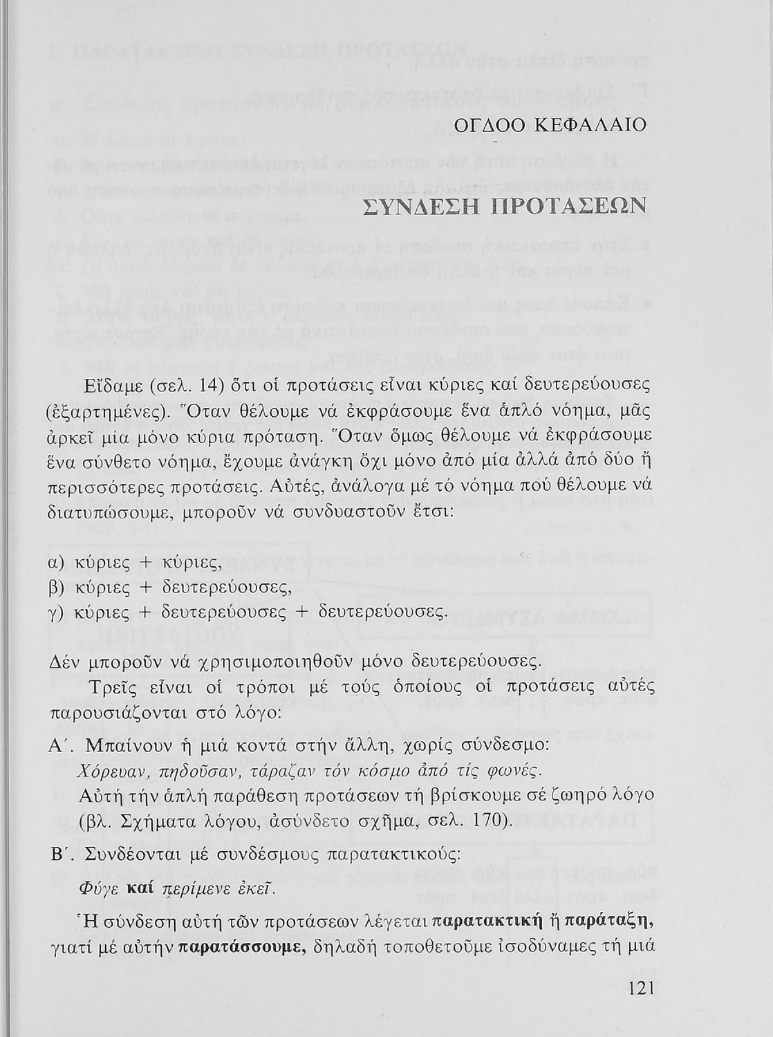 Σχολικό εγχειρίδιο Νέων Ελληνικών για τις Β΄ και Γ΄ Γυμνασίου που εξετάζει τα μέρη του λόγου και την σύνταξή τους.