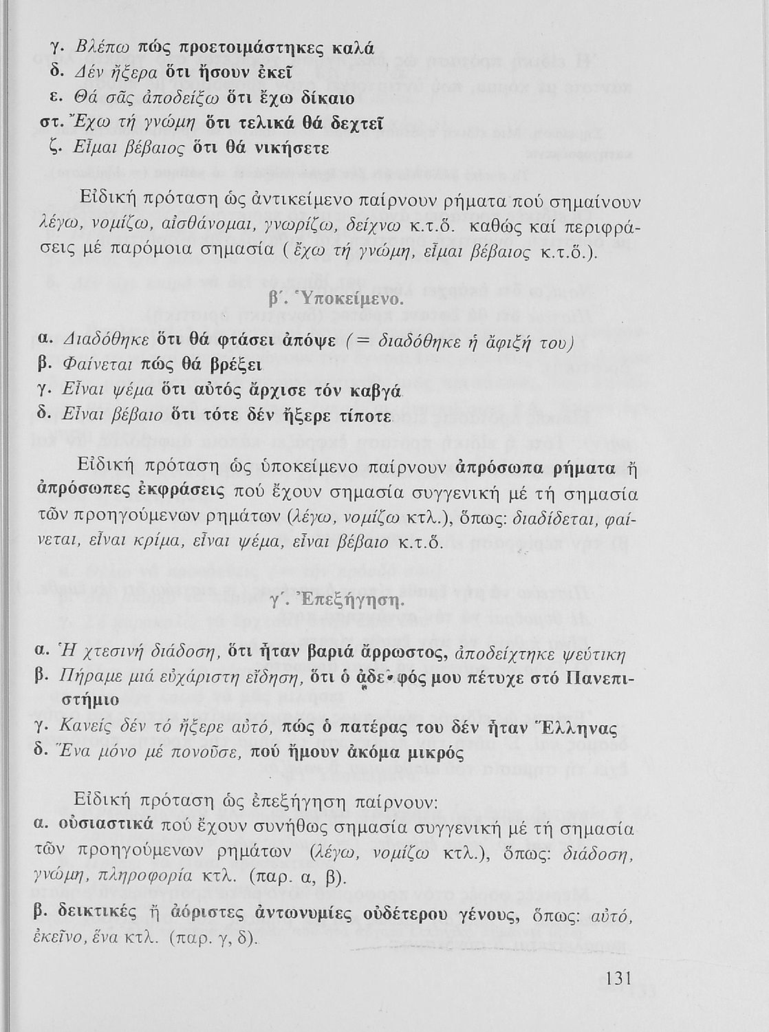 Βαθμίδα εκπαίδευσης: Δευτεροβάθμια Τάξη: Β' Γυμνασίου / Γ' Γυμνασίου Μάθημα: Αρχαία Ελληνικά Γλώσσα: Δημοτική Παρουσίαση περιεχομένου: Σχολικό εγχειρίδιο Νέων Ελληνικών για τις Β΄ και Γ΄ Γυμνασίου που εξετάζει τα μέρη του λόγου και την σύνταξή τους. |