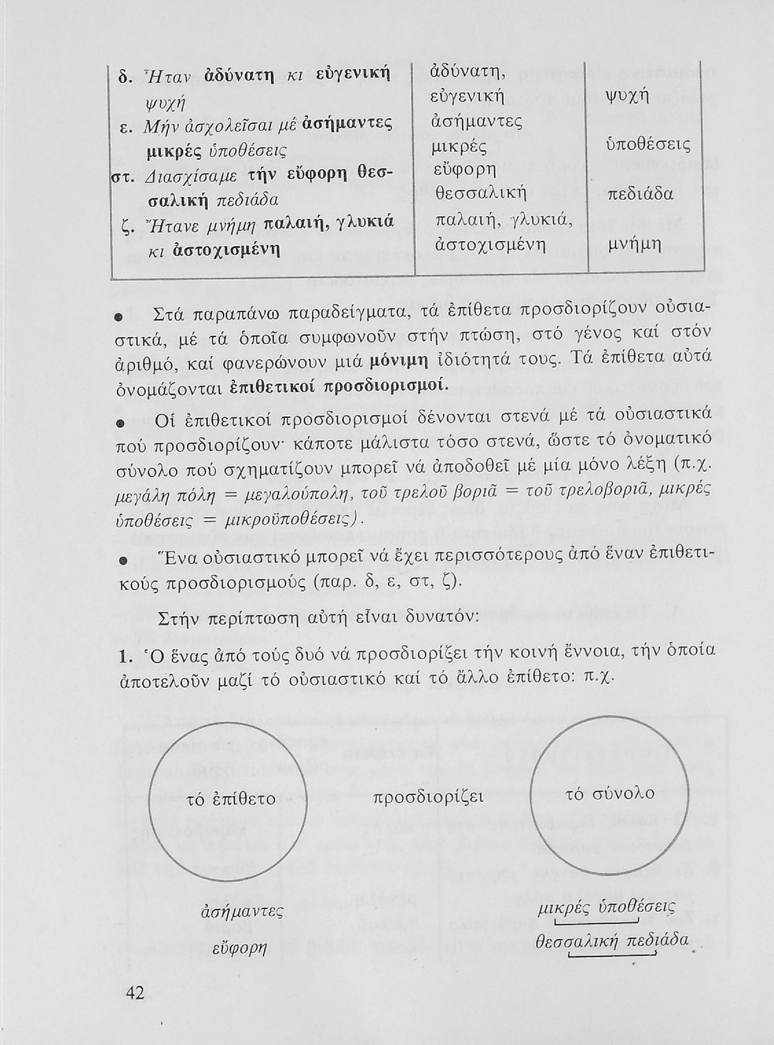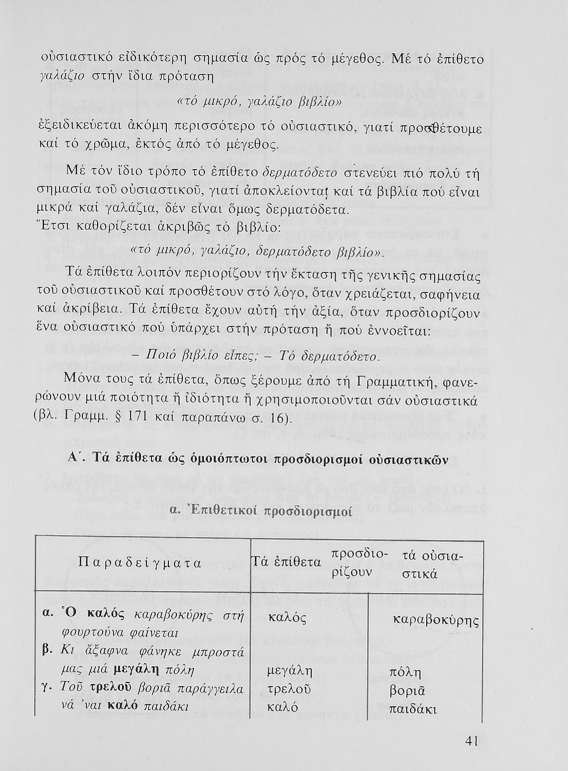 Σχολικό εγχειρίδιο Νέων Ελληνικών για τις Β΄ και Γ΄ Γυμνασίου που εξετάζει τα μέρη του λόγου και την σύνταξή τους.