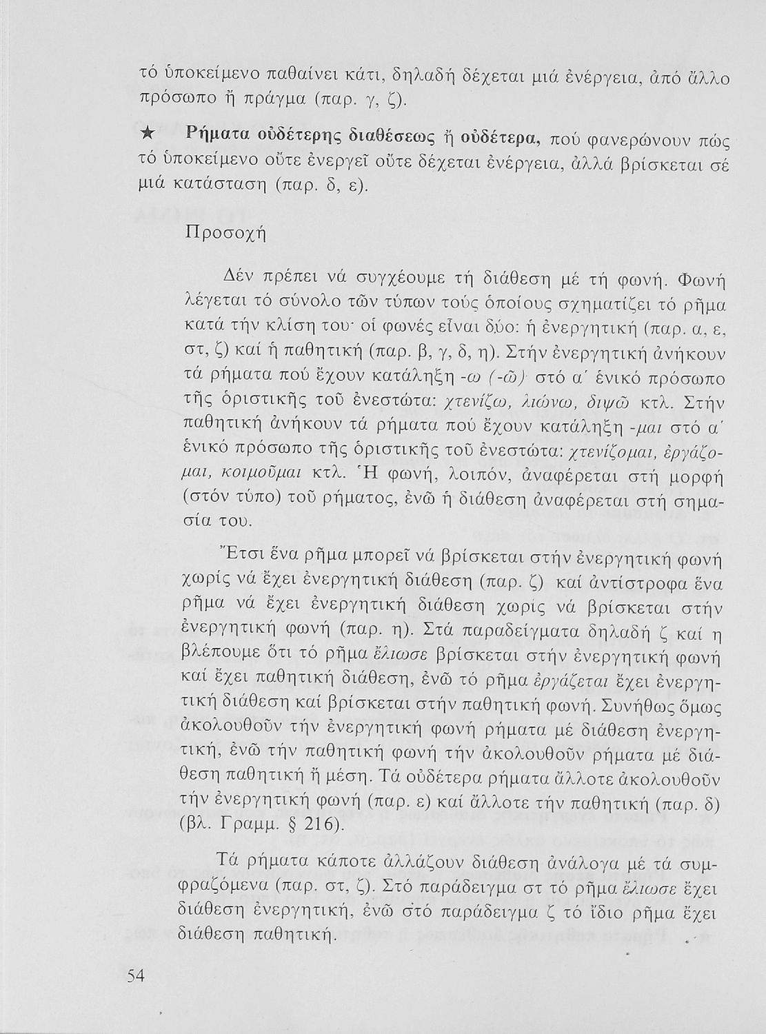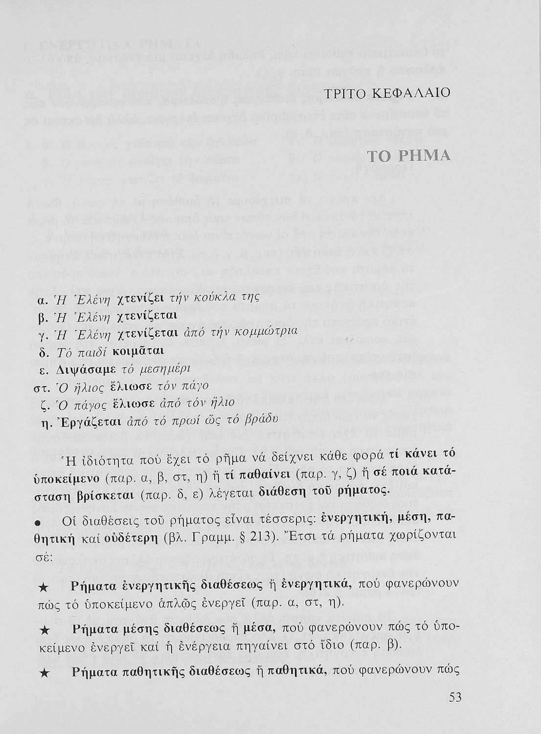 Σχολικό εγχειρίδιο Αρχαίων Ελληνικών για τις Α΄, Β΄ και Γ΄ Λυκείου που εξετάζει τα μέρη του λόγου και την σύνταξή τους.