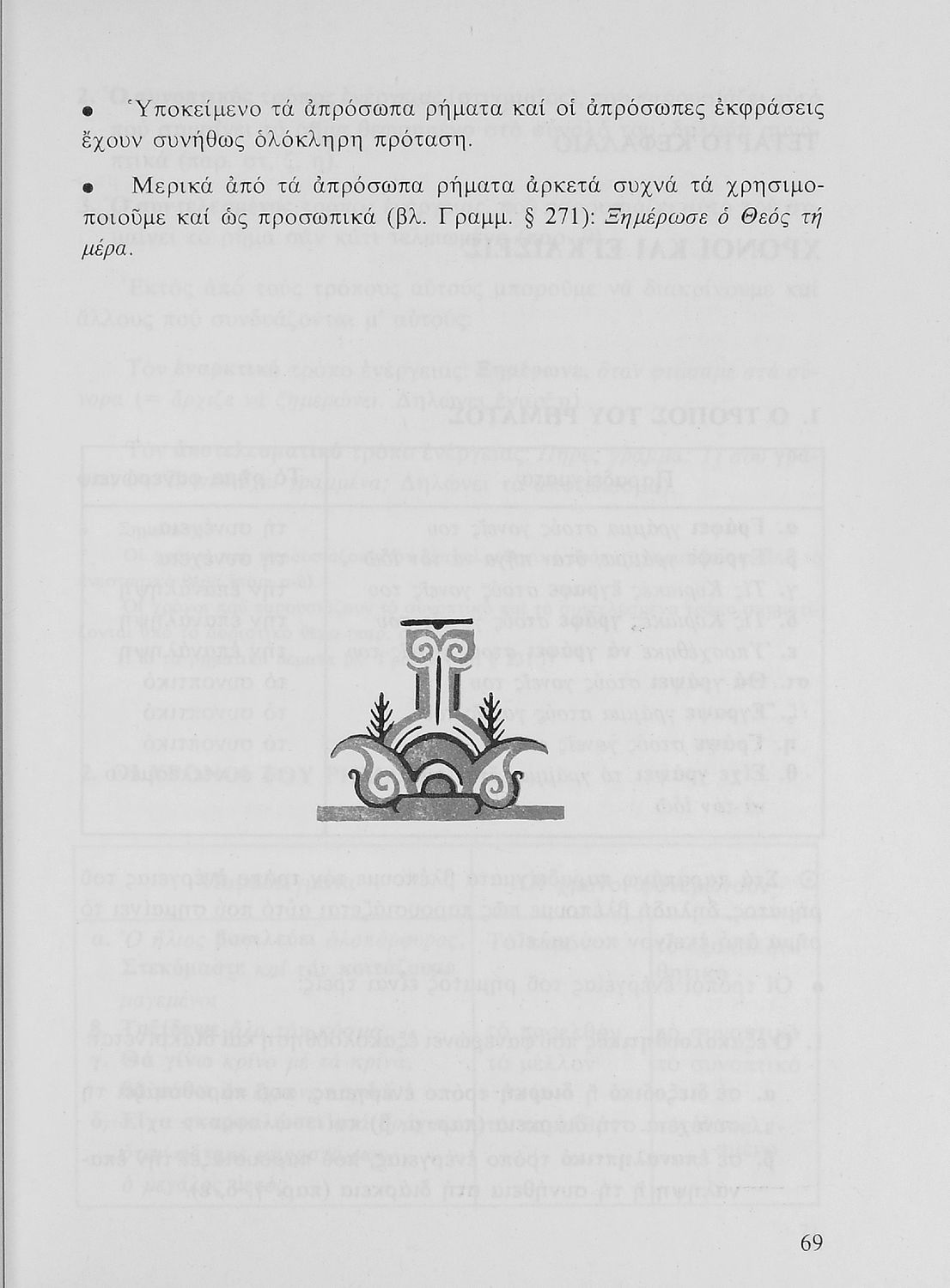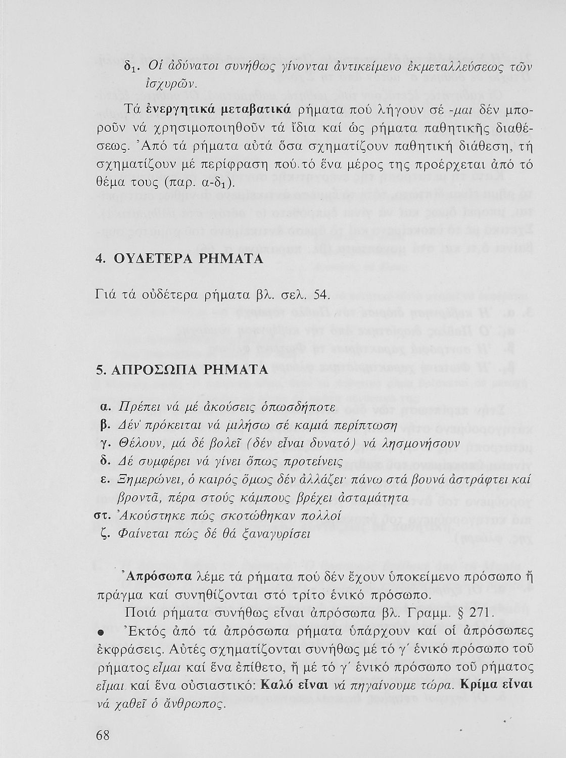 Μαθητικό βοήθημα Νέων Ελληνικών Γυμνασίου που περιλαμβάνει τους κανόνες της γραμματικής και του συντακτικού της καθαρεύουσας.