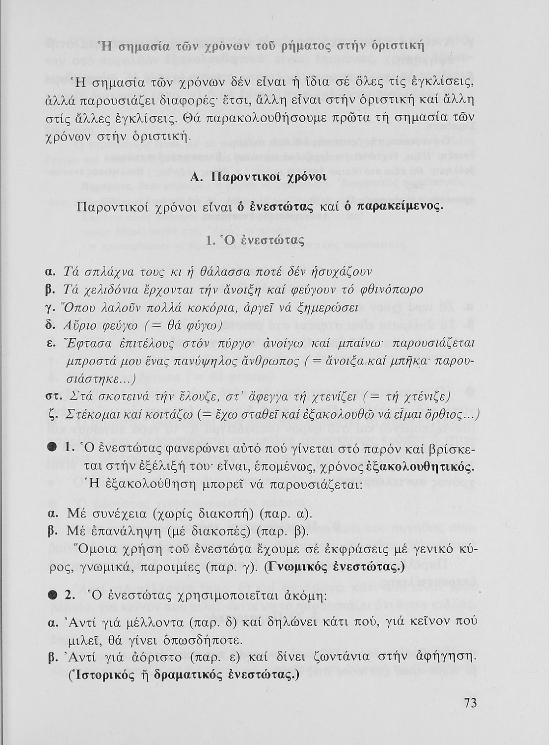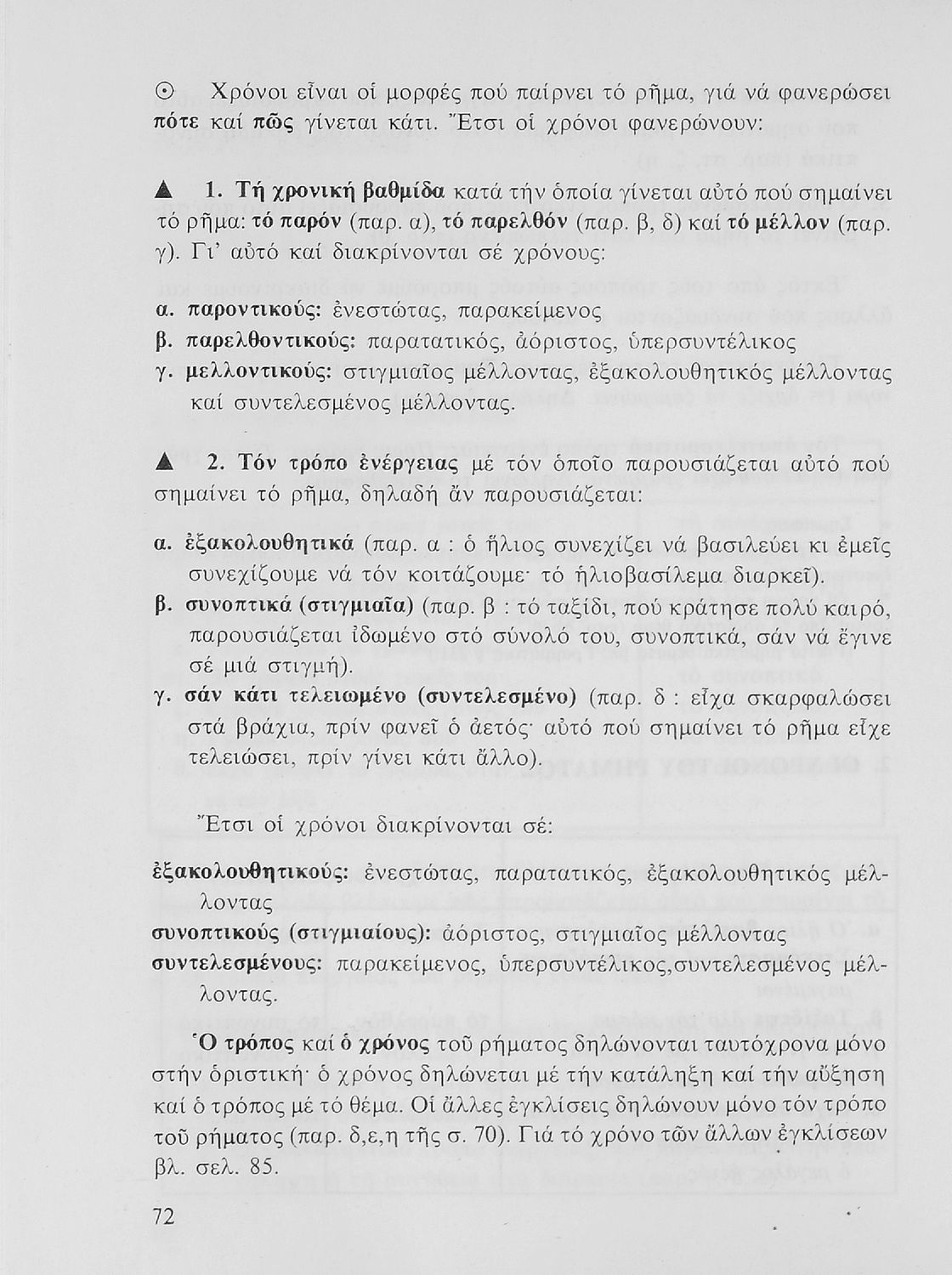 Σχολικό εγχειρίδιο Αρχαίων Ελληνικών για τις Α΄, Β΄ και Γ΄ Λυκείου που εξετάζει τα μέρη του λόγου και την σύνταξή τους.