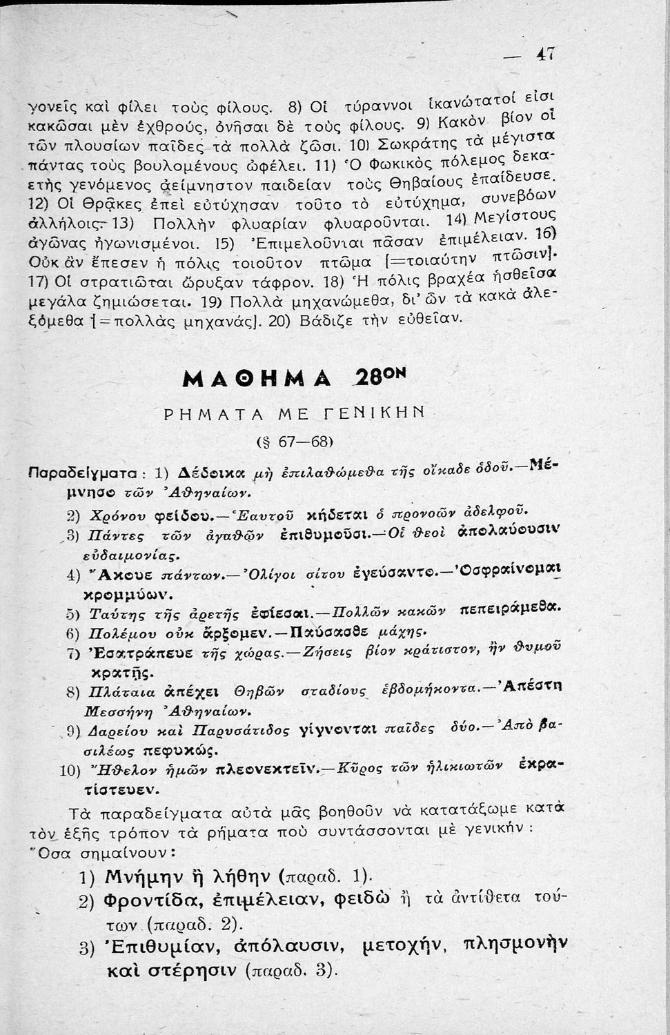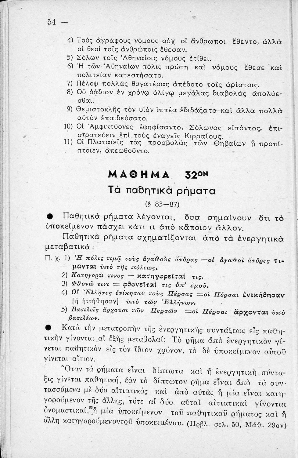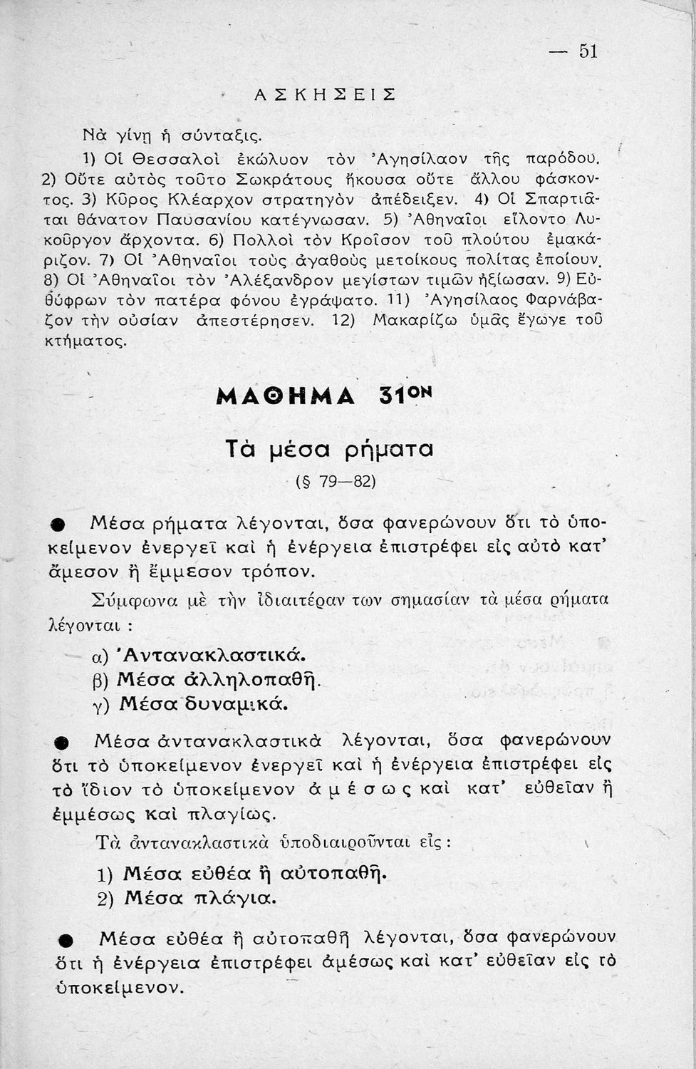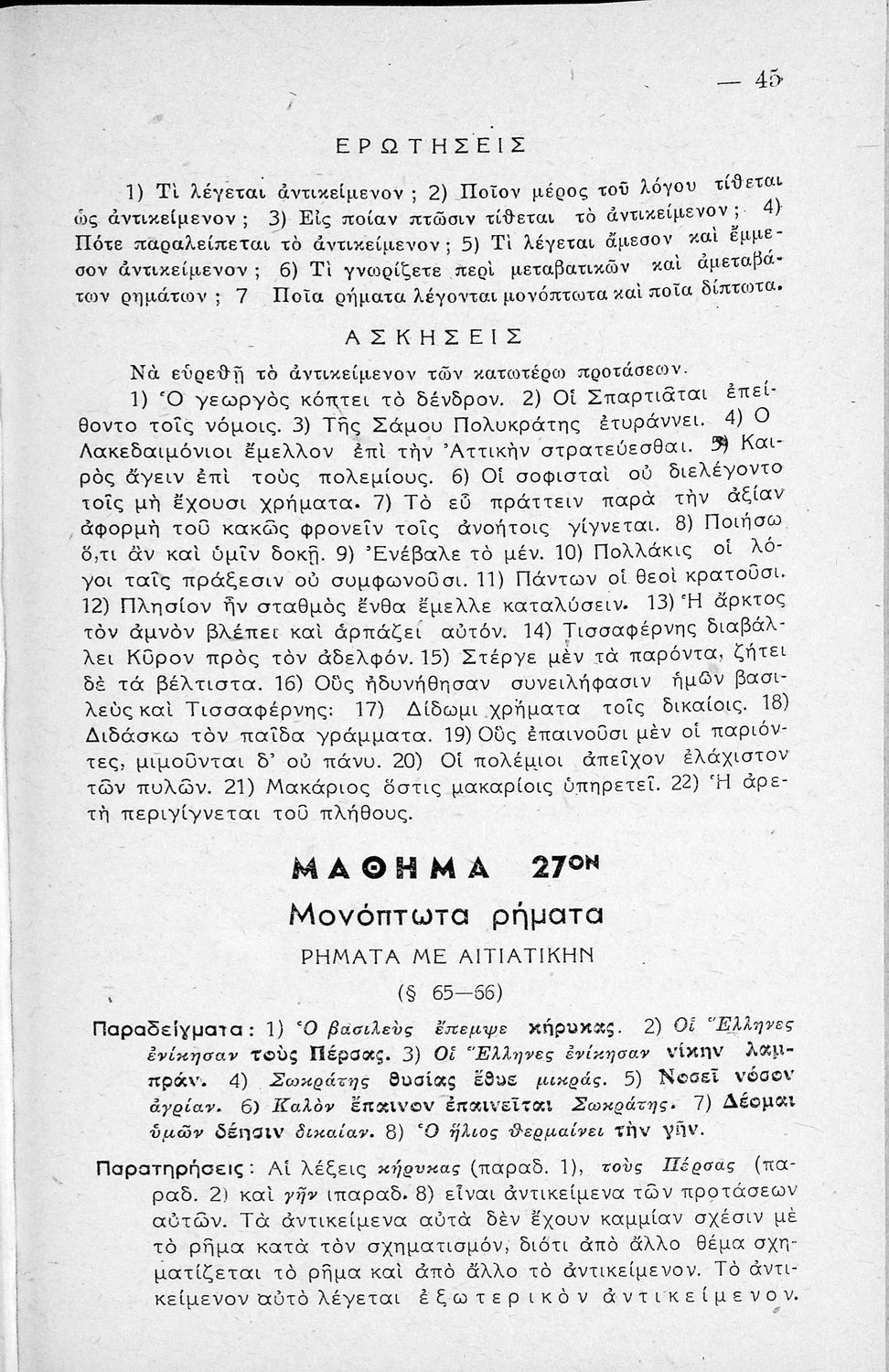 Μαθητικό βοήθημα Αρχαίων Ελληνικών Γυμνασίου που εξετάζει τα μέρη του λόγου και την σύνταξή τους.