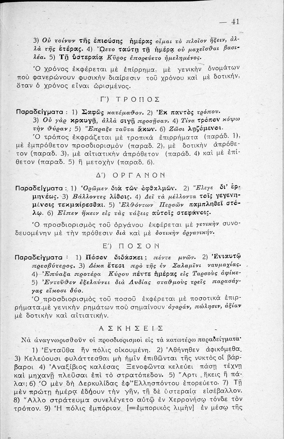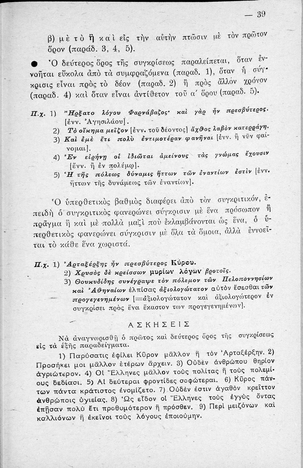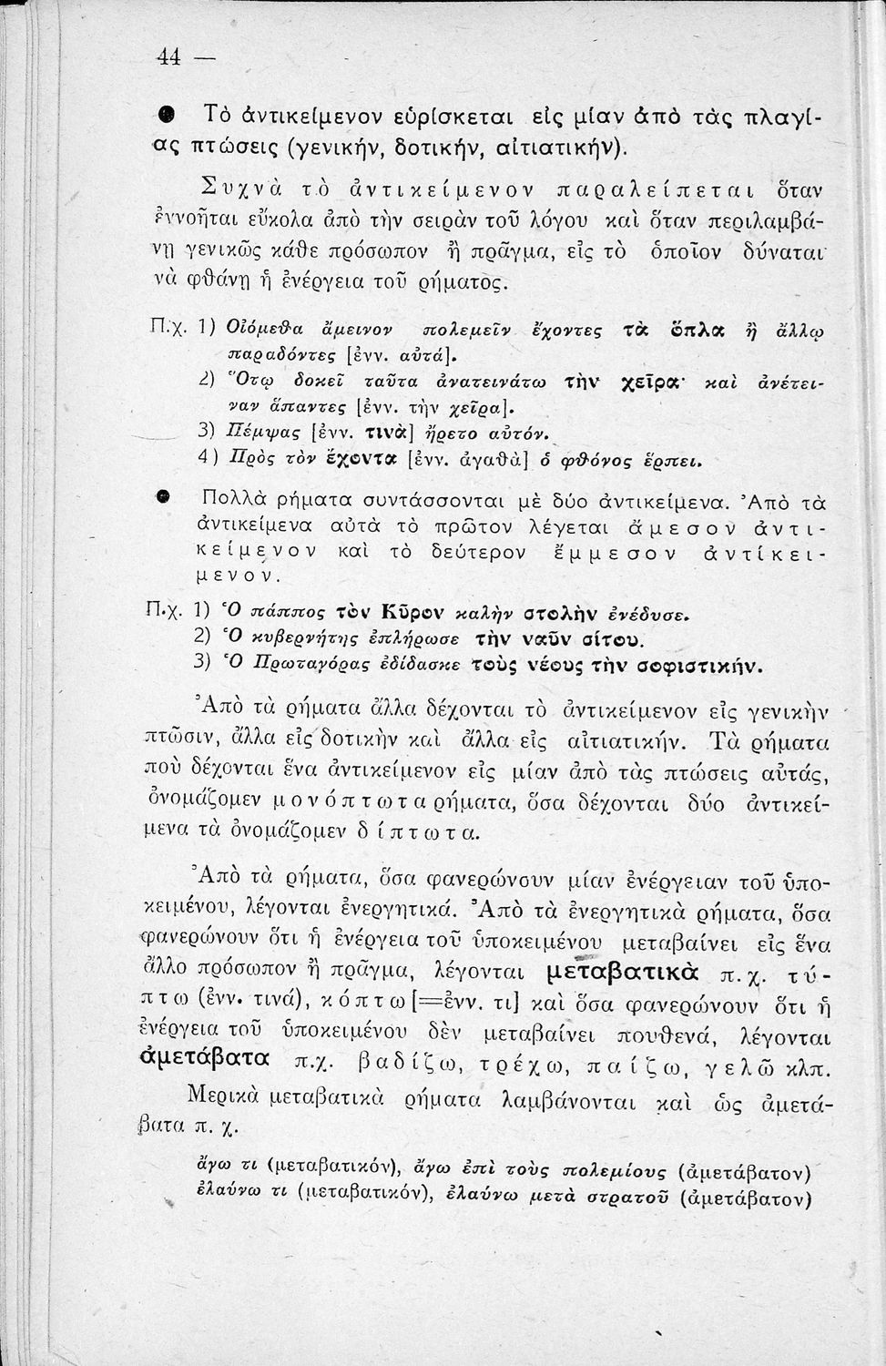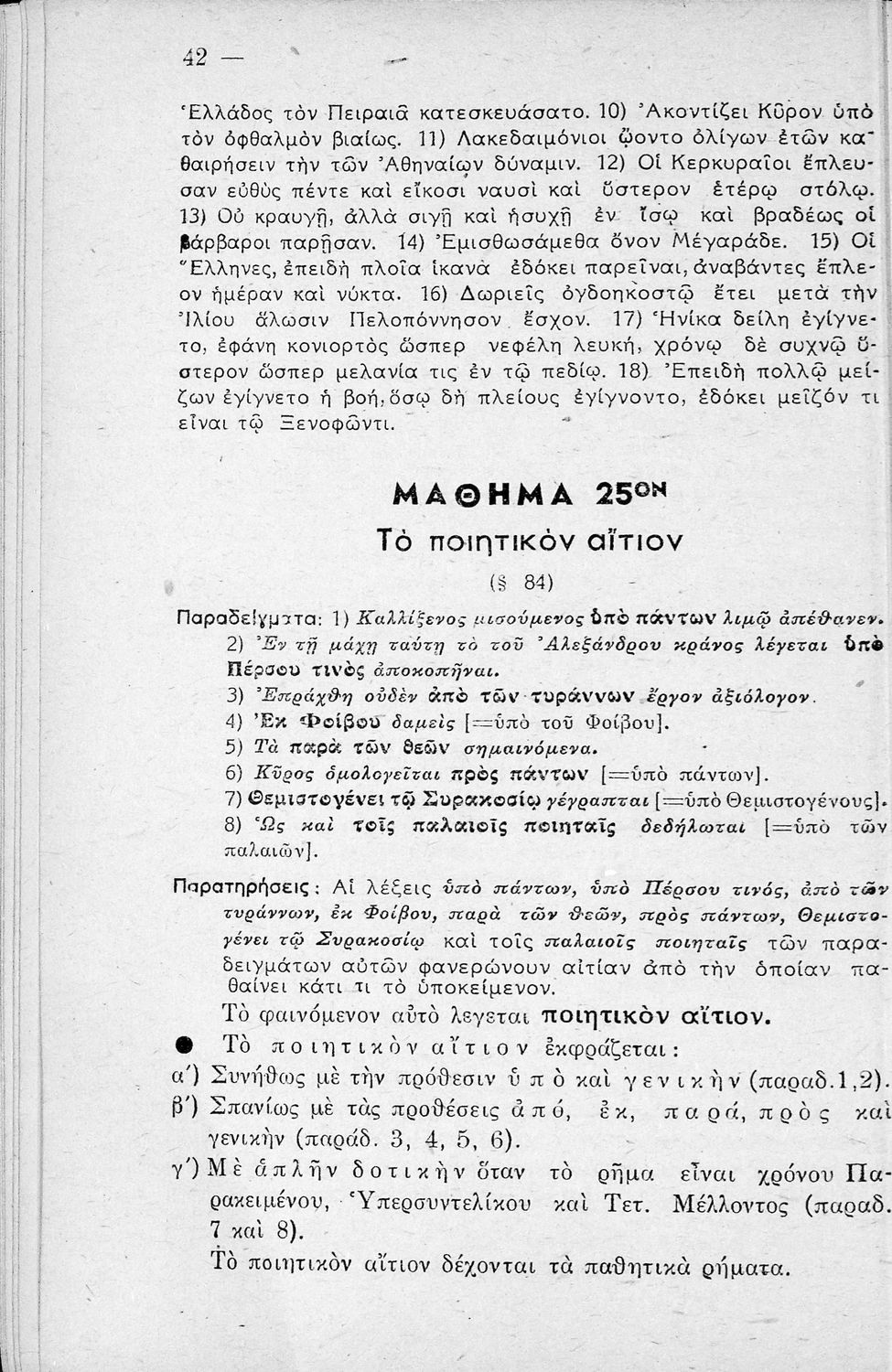 Μαθητικό βοήθημα Αρχαίων Ελληνικών Γυμνασίου που εξετάζει τα μέρη του λόγου και την σύνταξή τους.
