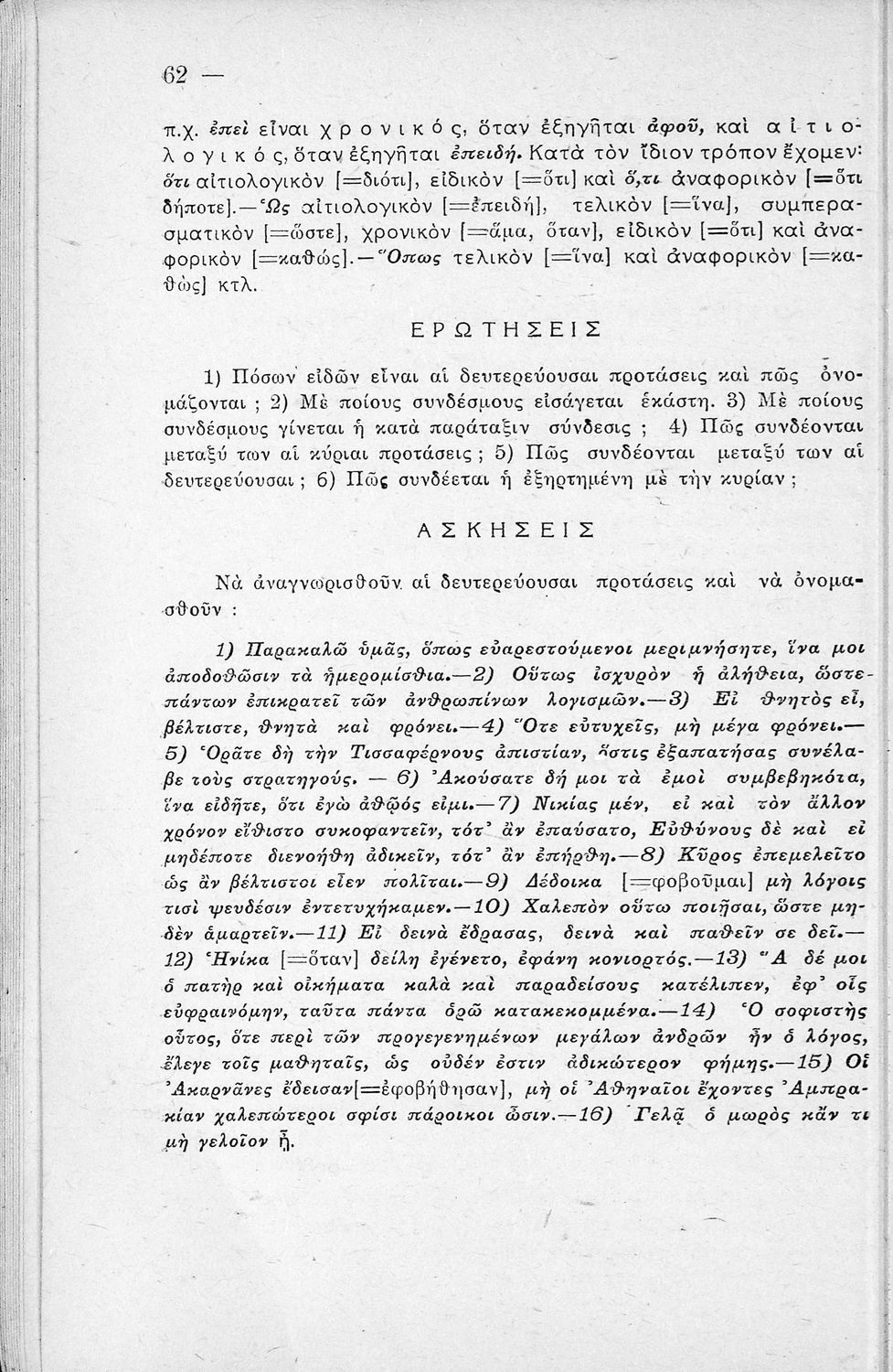 Μαθητικό βοήθημα Αρχαίων Ελληνικών Γυμνασίου που εξετάζει τα μέρη του λόγου και την σύνταξή τους.