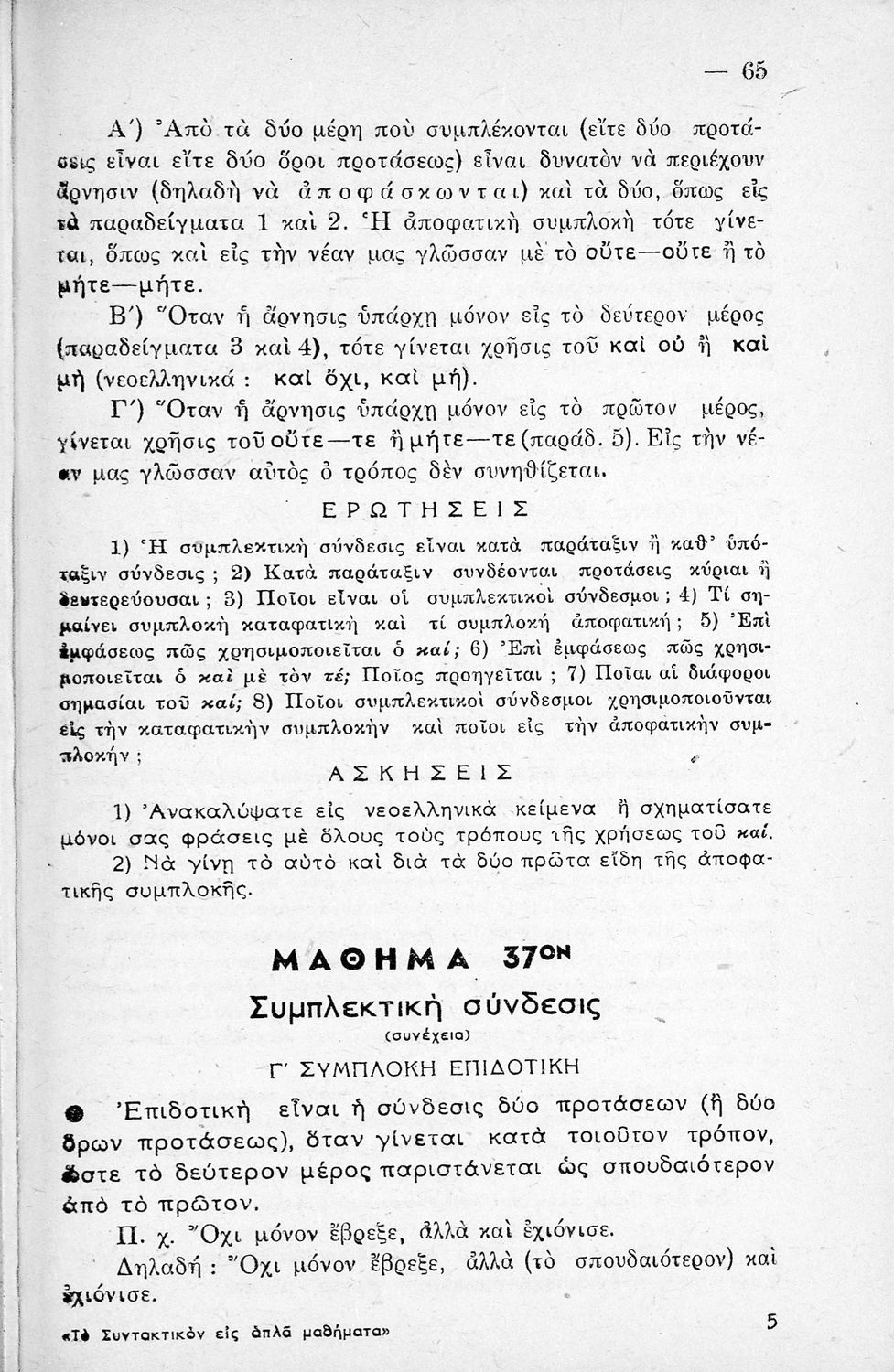 Το Συντακτικόν εις απλά μαθήματα βοηθητικόν βιβλίον δια τους μαθητάς των Γυμνασίων και των αντιστοίχων σχολείων της Μέσης Εκπαιδεύσεως