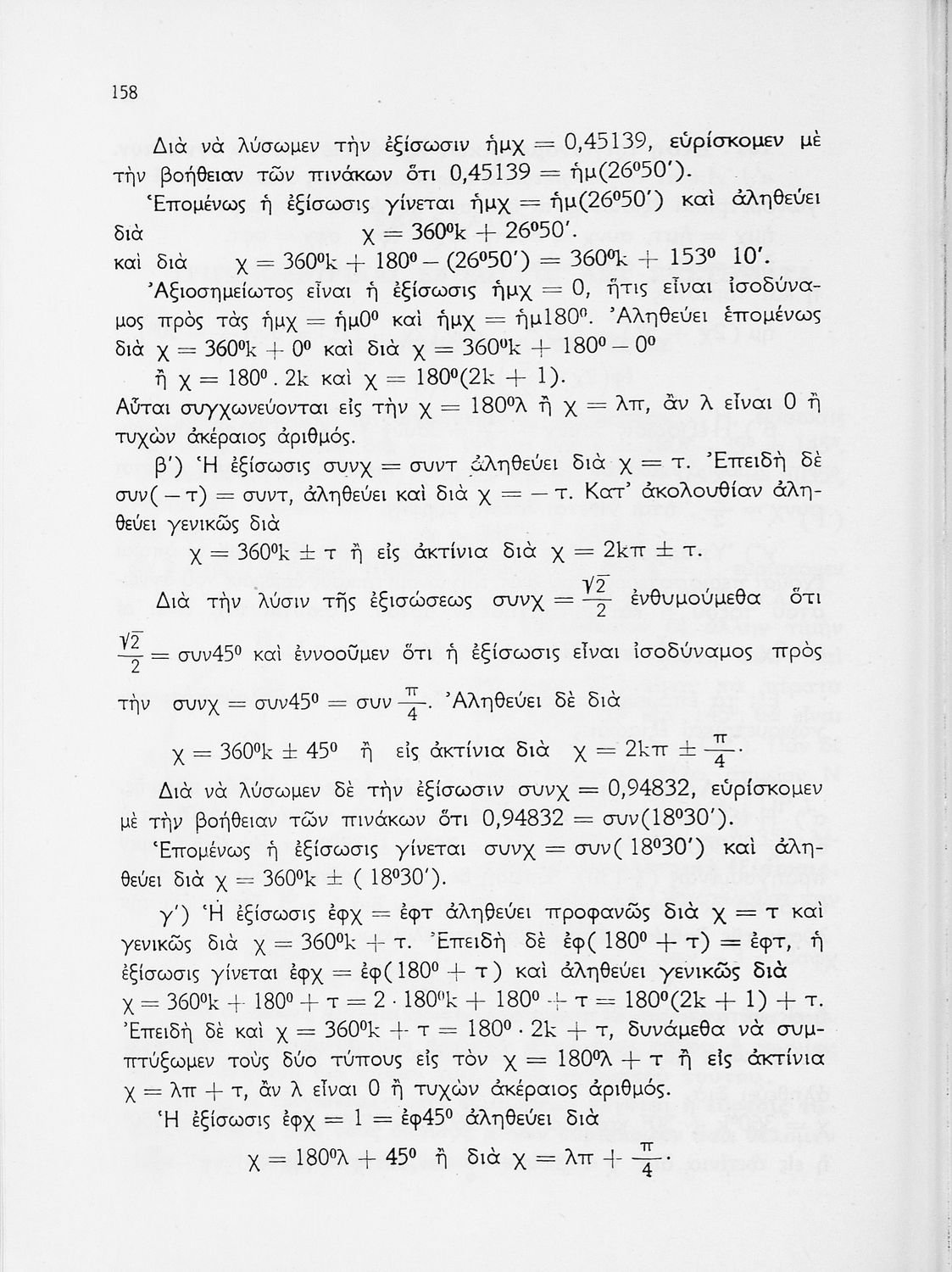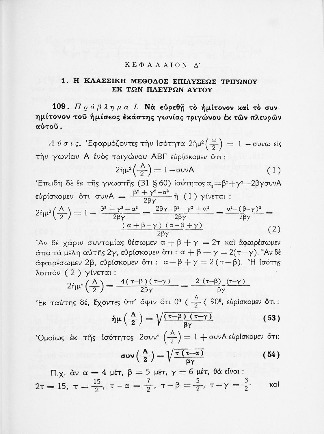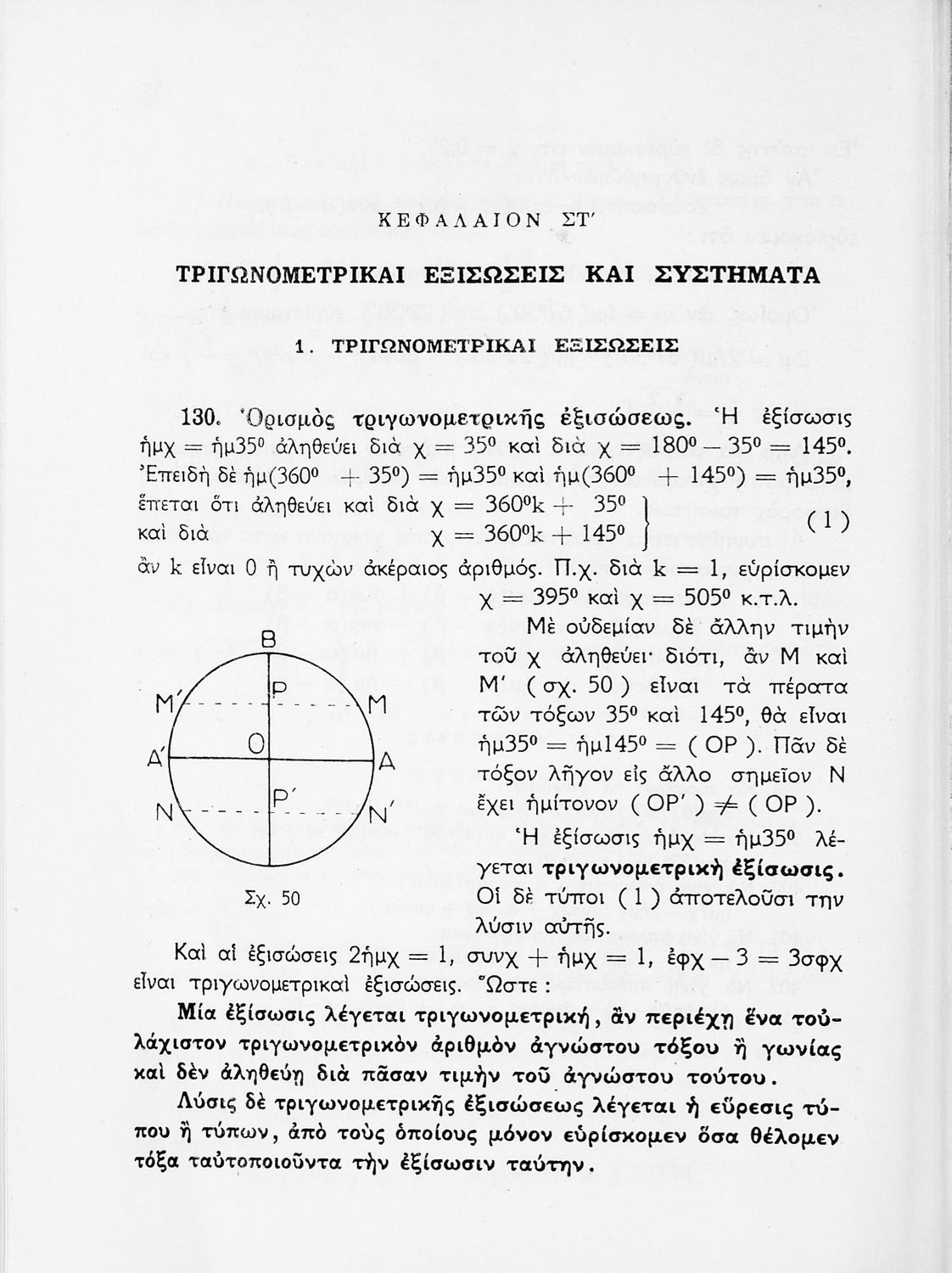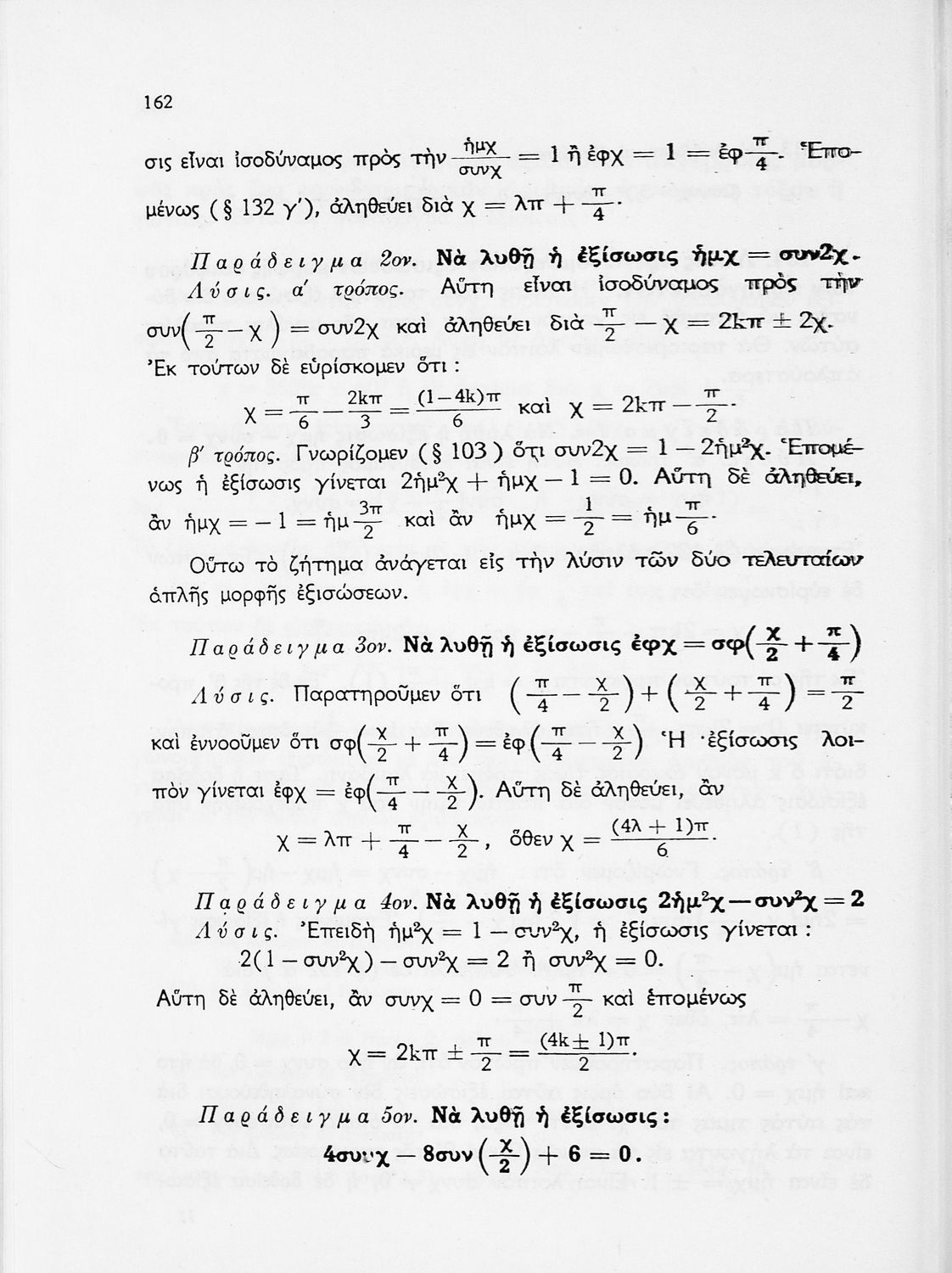 Σχολικό εγχειρίδιο Τριγωνομετρίας για τις Δ΄, Ε΄ και ΣΤ΄ Γυμνασίου που περιλαμβάνει θεωρία και ασκήσεις. Φέρει το σύμβολο της δικτατορίας.