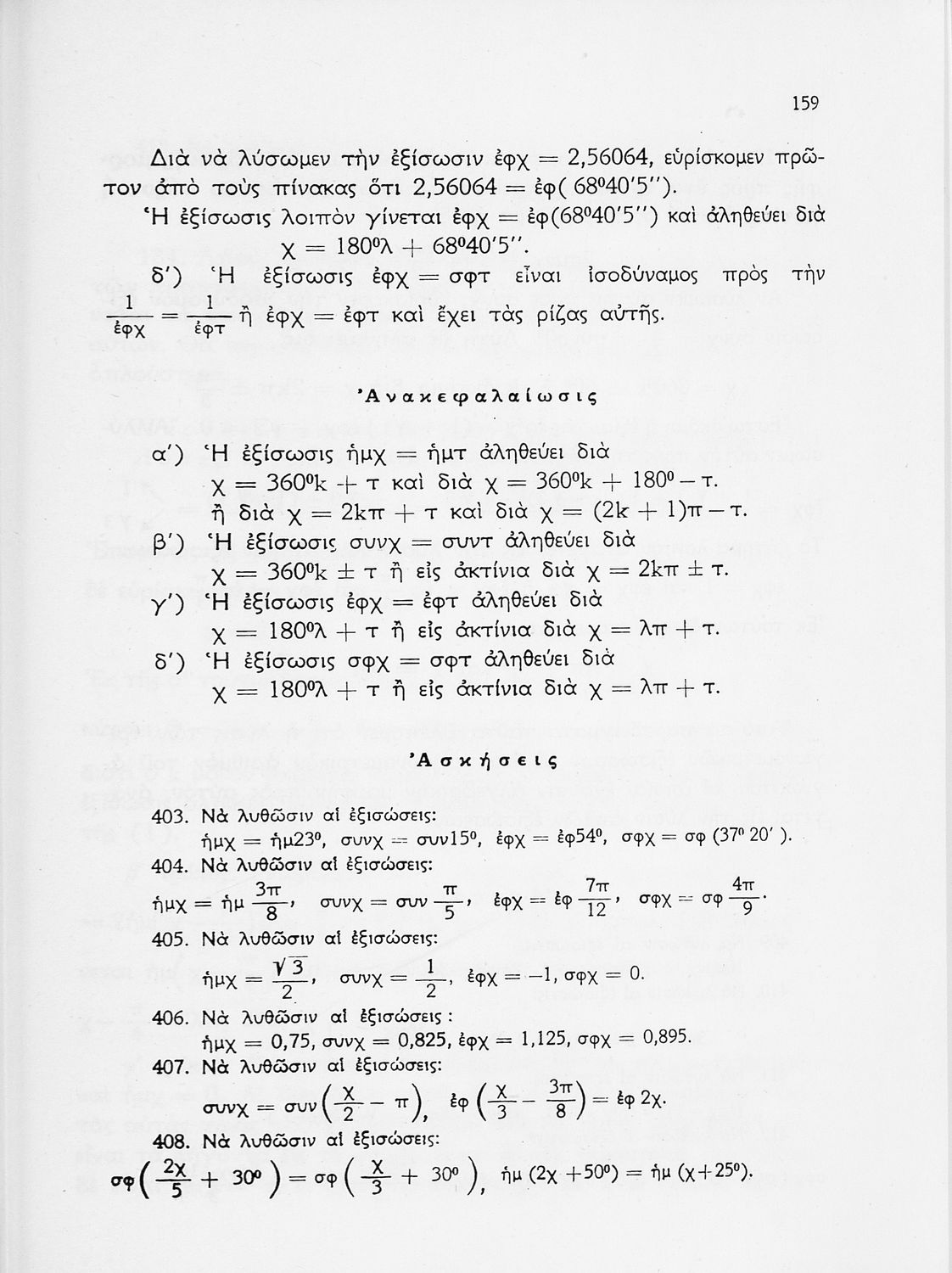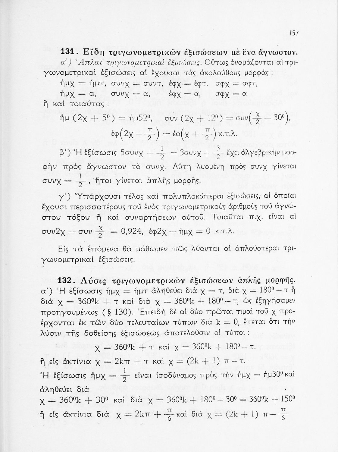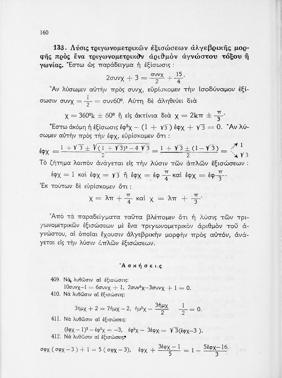 Σχολικό εγχειρίδιο Τριγωνομετρίας για τις Δ΄, Ε΄ και ΣΤ΄ Γυμνασίου που περιλαμβάνει θεωρία και ασκήσεις. Φέρει το σύμβολο της δικτατορίας.