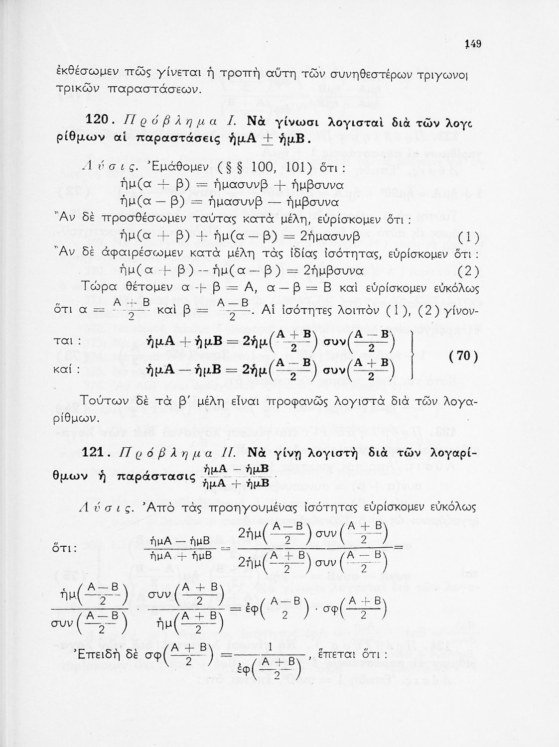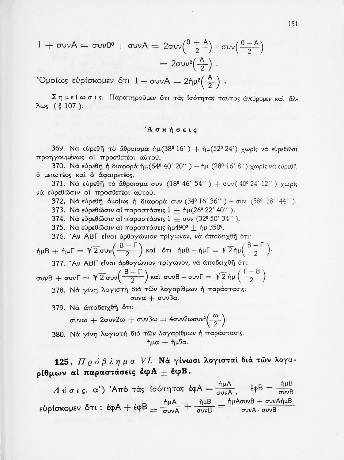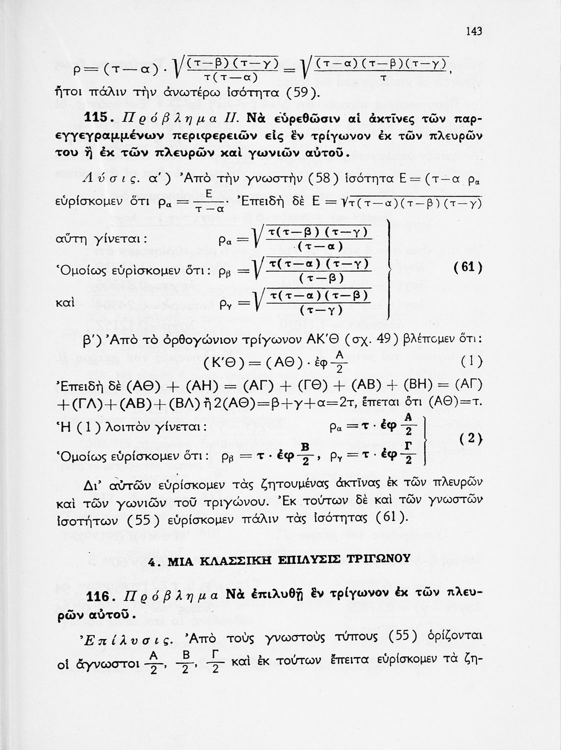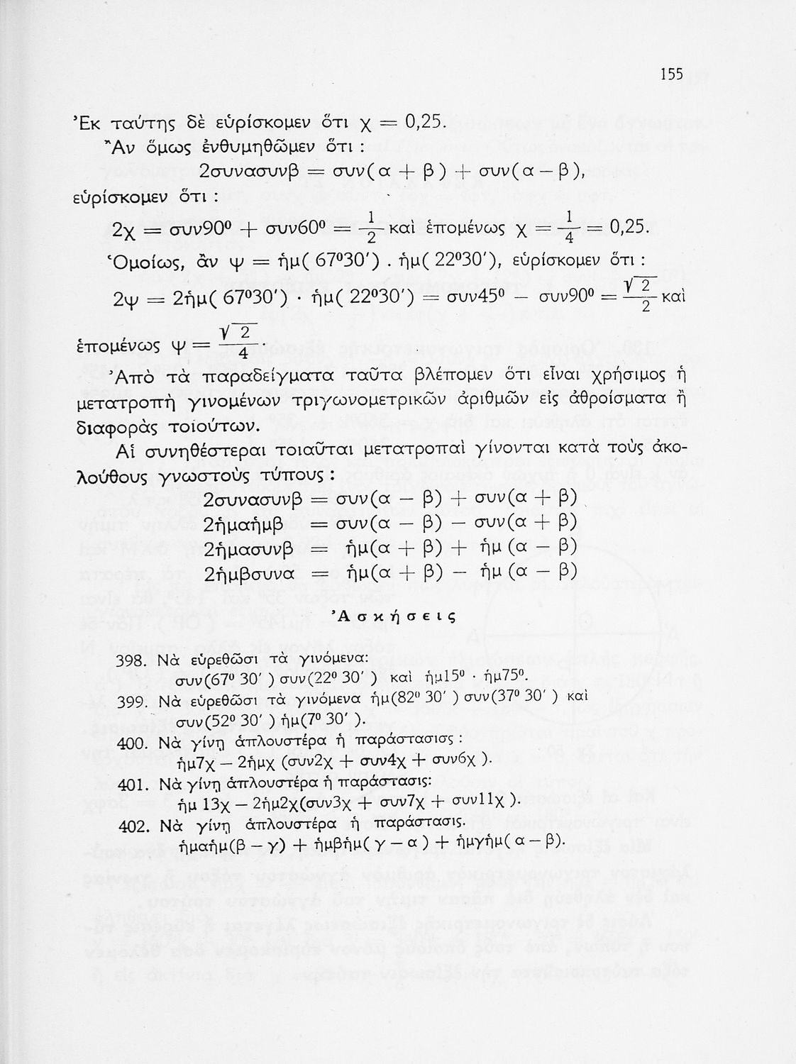 Σχολικό εγχειρίδιο Τριγωνομετρίας για τις Δ΄, Ε΄ και ΣΤ΄ Γυμνασίου που περιλαμβάνει θεωρία και ασκήσεις. Φέρει το σύμβολο της δικτατορίας.