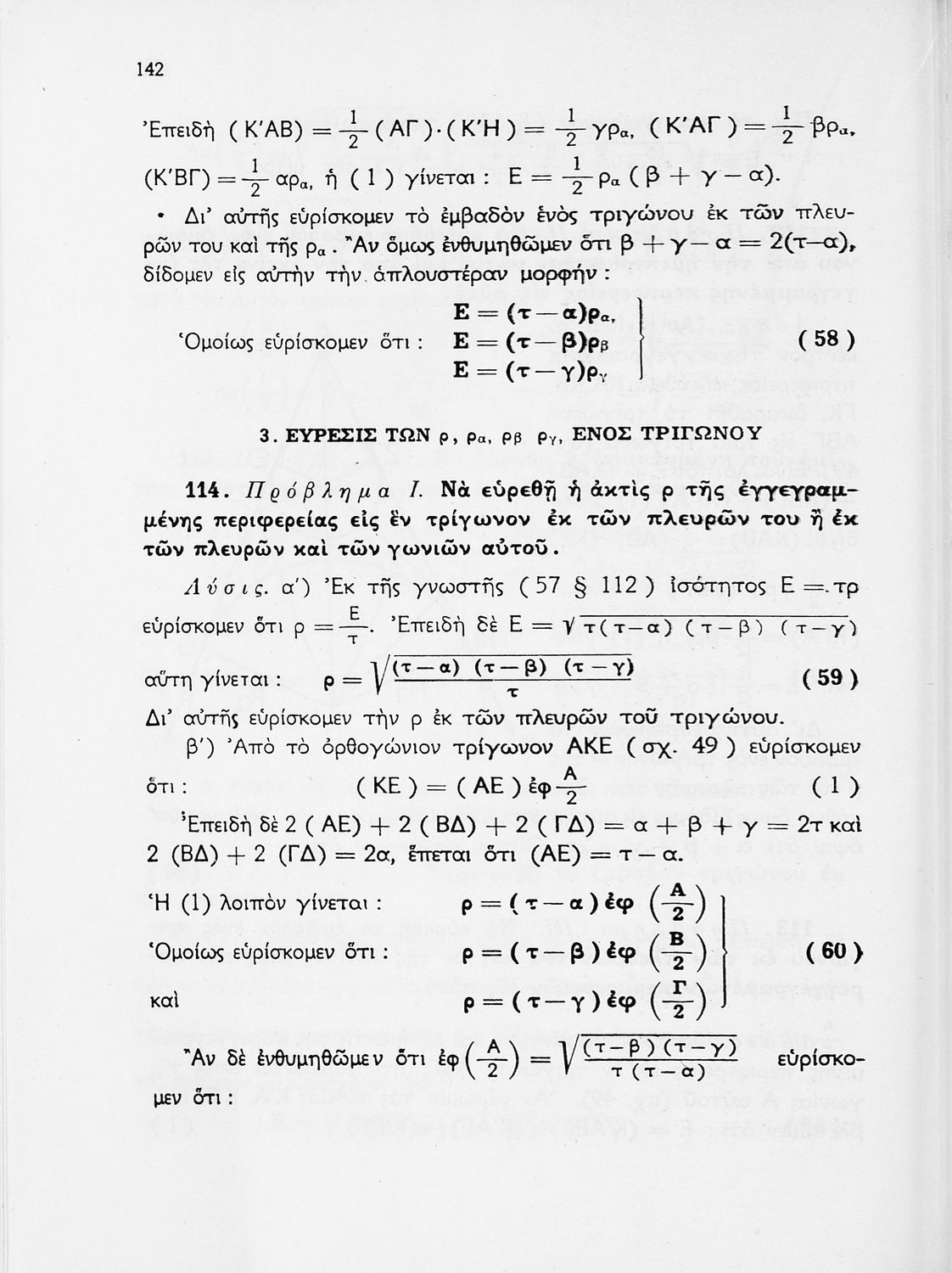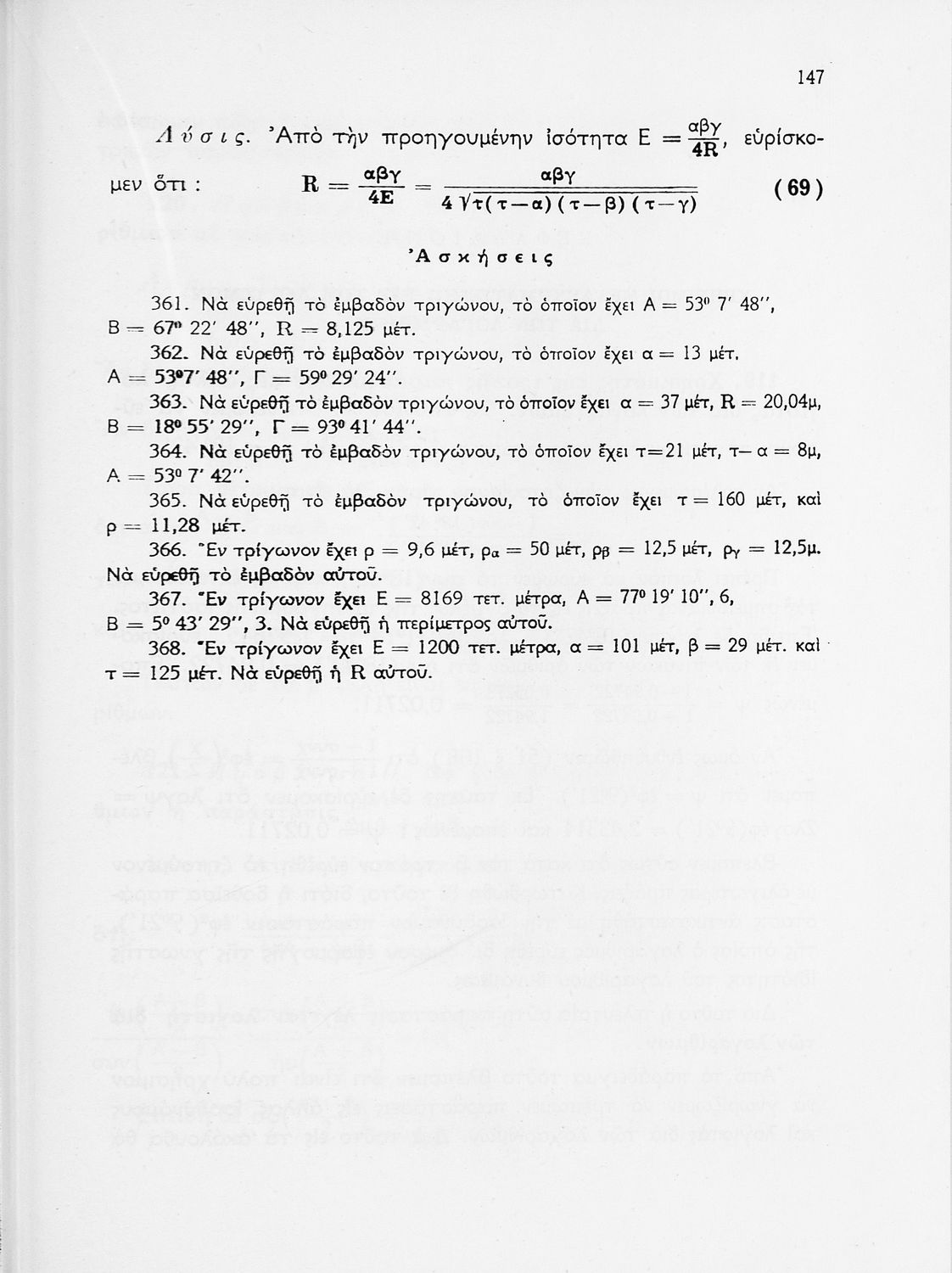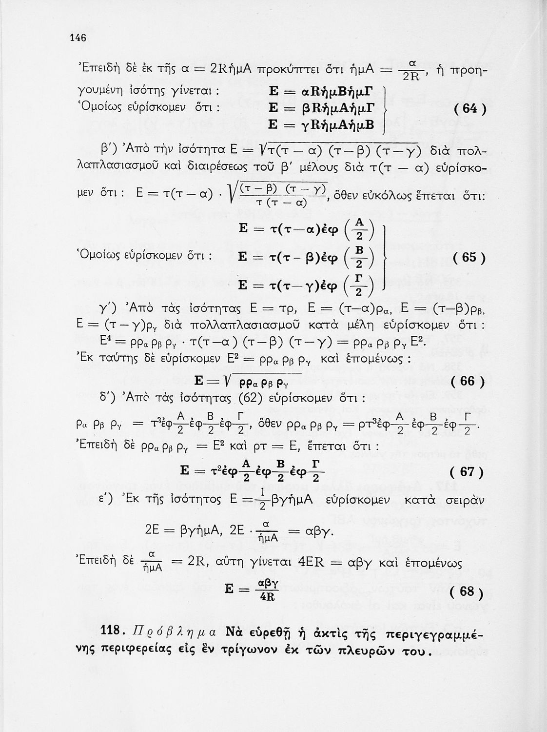 Σχολικό εγχειρίδιο Γεωμετρίας για τις Γ΄, Δ΄, Ε΄, ΣΤ΄ Γυμνασίου που περιλαμβάνει θεωρία και ασκήσεις και είναι χωρισμένο σε Επιπεδομετρία και Στερεομετρία. Φέρει το σύμβολο της δικτατορίας.