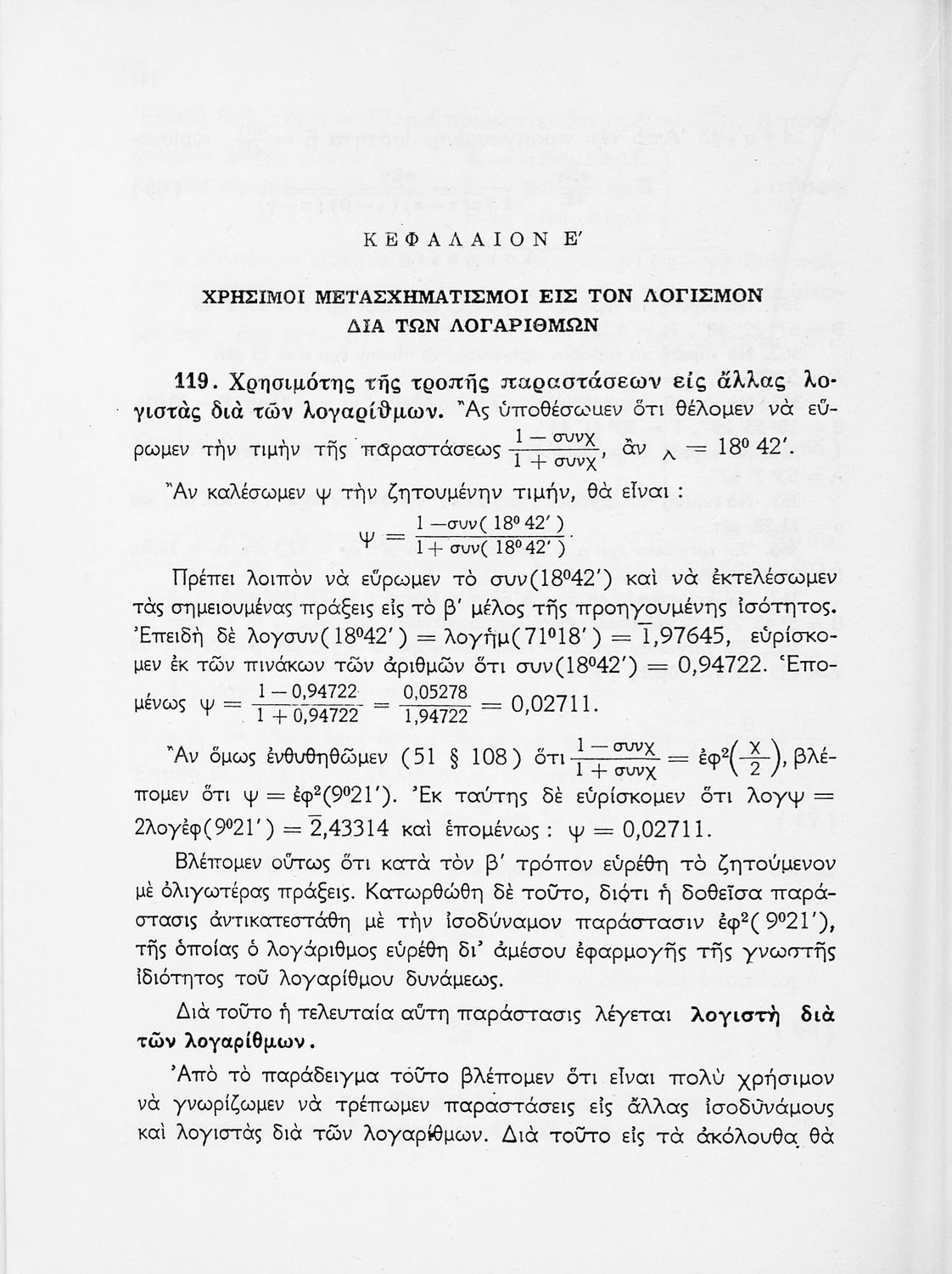 Παρουσίαση περιεχομένου: Σχολικό εγχειρίδιο Τριγωνομετρίας για τις Δ΄, Ε΄ και ΣΤ΄ Γυμνασίου που περιλαμβάνει θεωρία και ασκήσεις. Φέρει το σύμβολο της δικτατορίας.