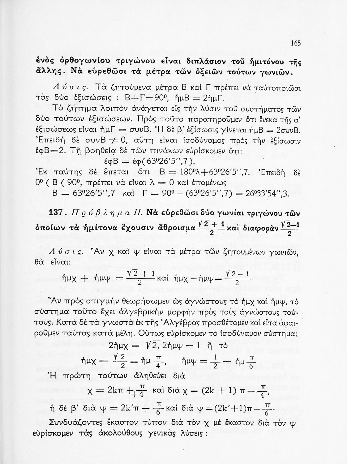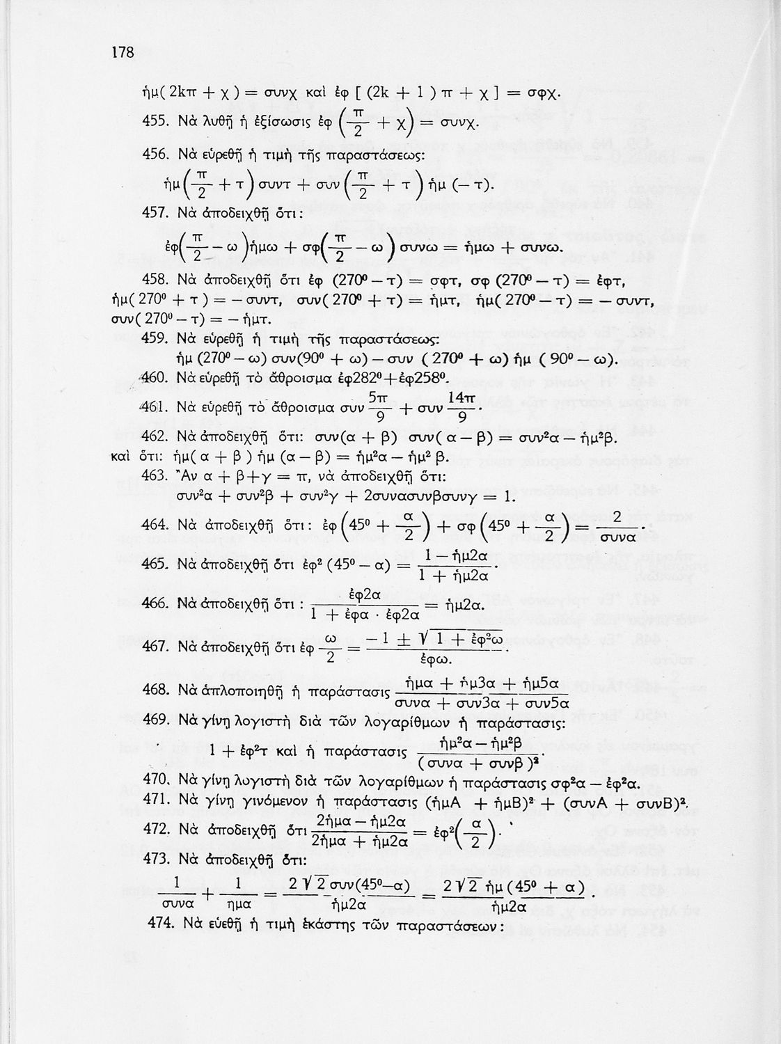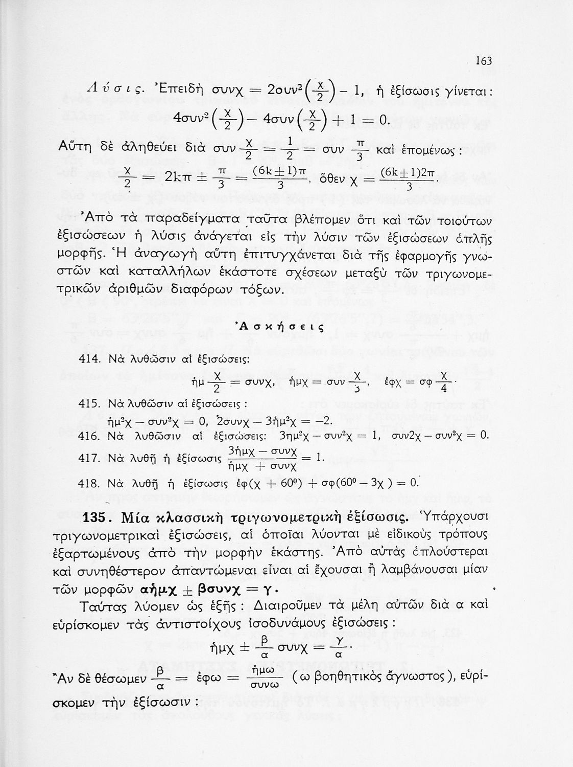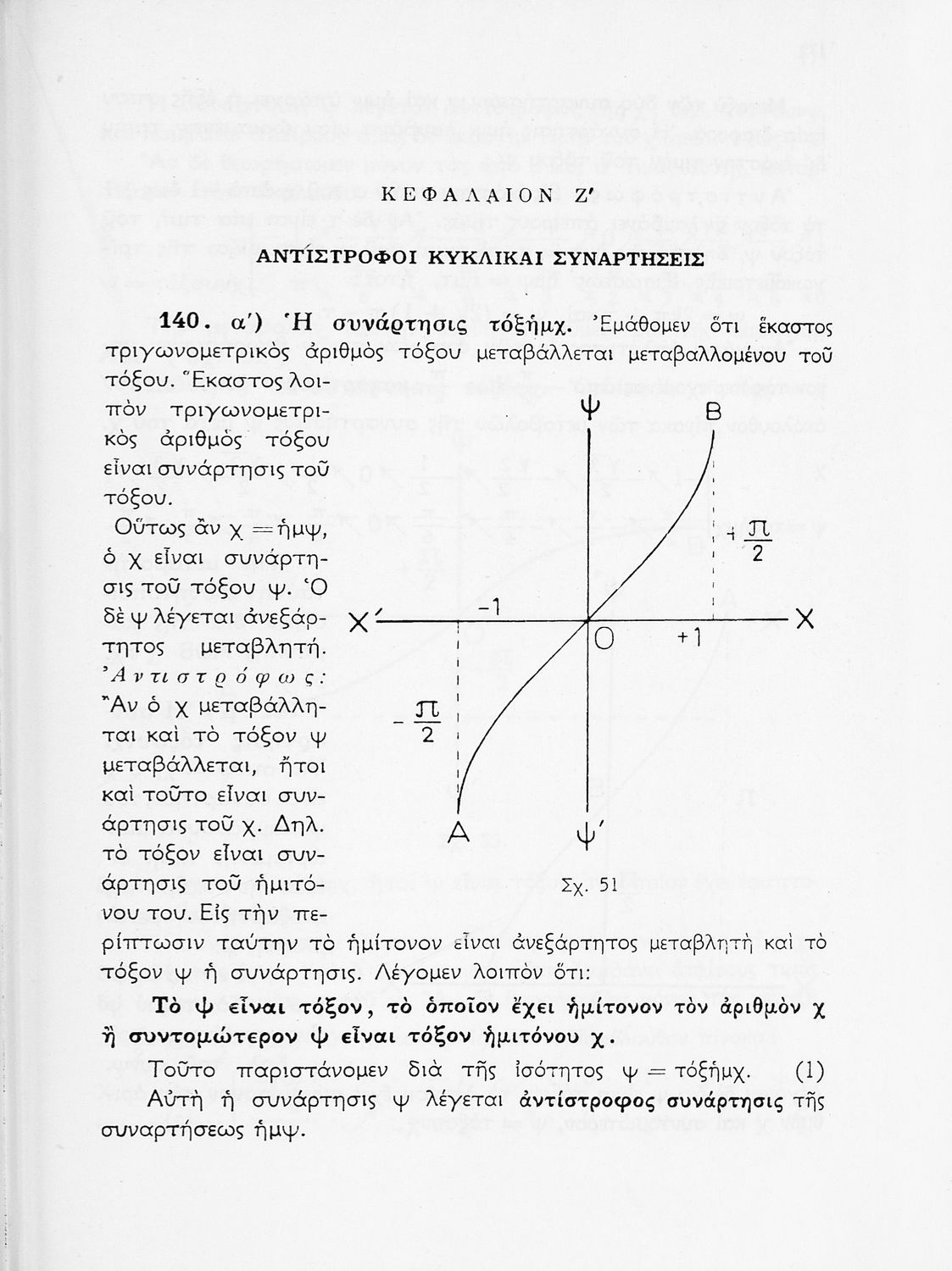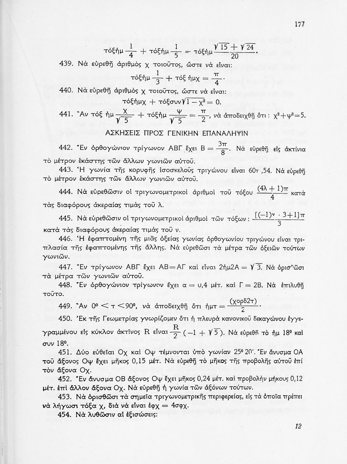Σχολικό εγχειρίδιο Τριγωνομετρίας για τις Δ΄, Ε΄ και ΣΤ΄ Γυμνασίου που περιλαμβάνει θεωρία και ασκήσεις. Φέρει το σύμβολο της δικτατορίας.