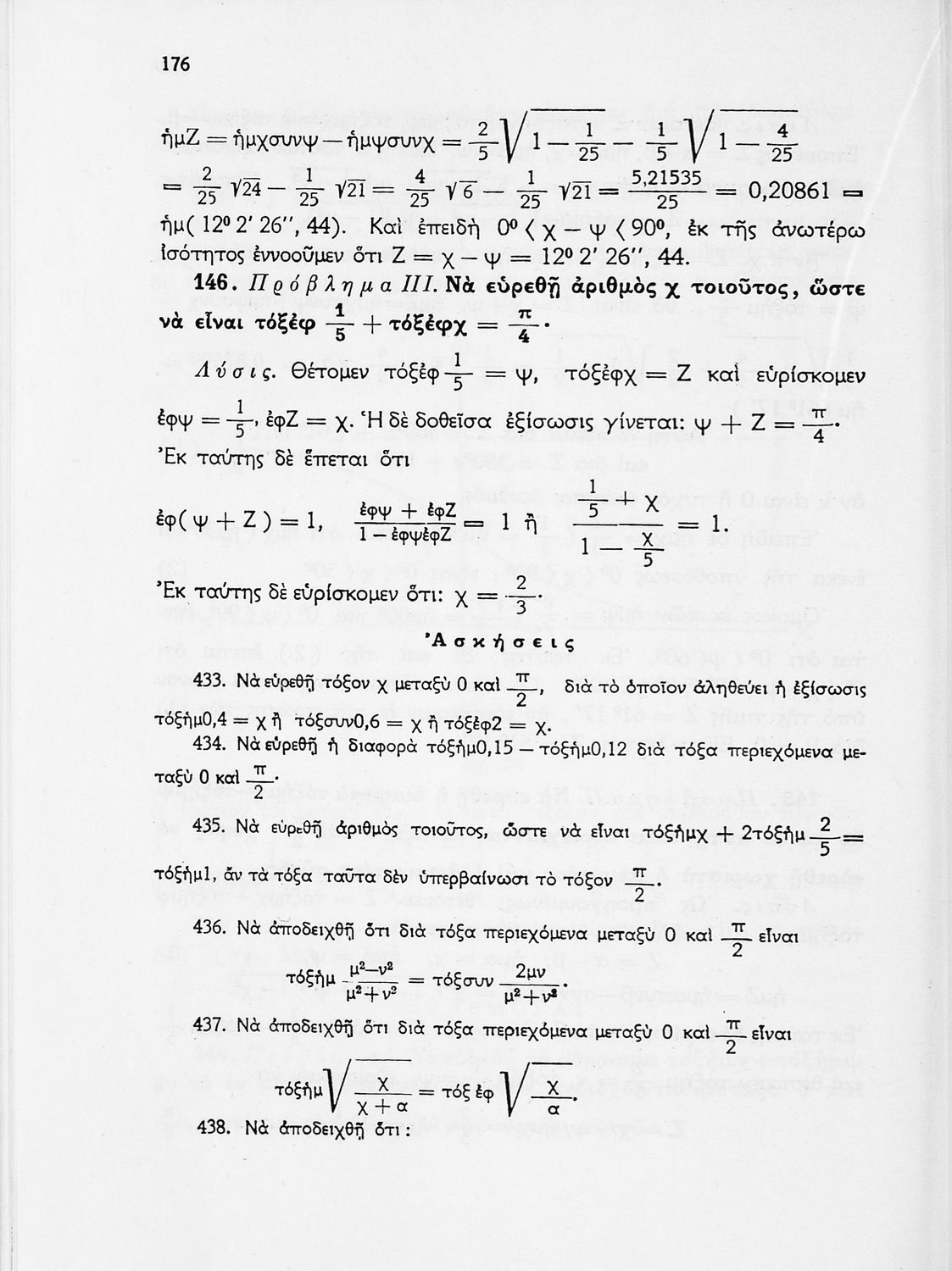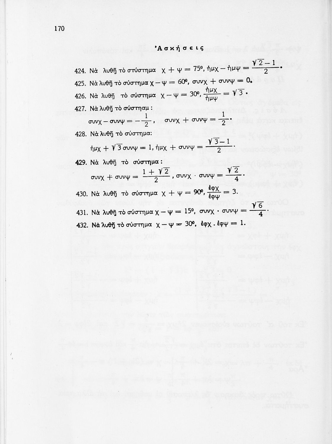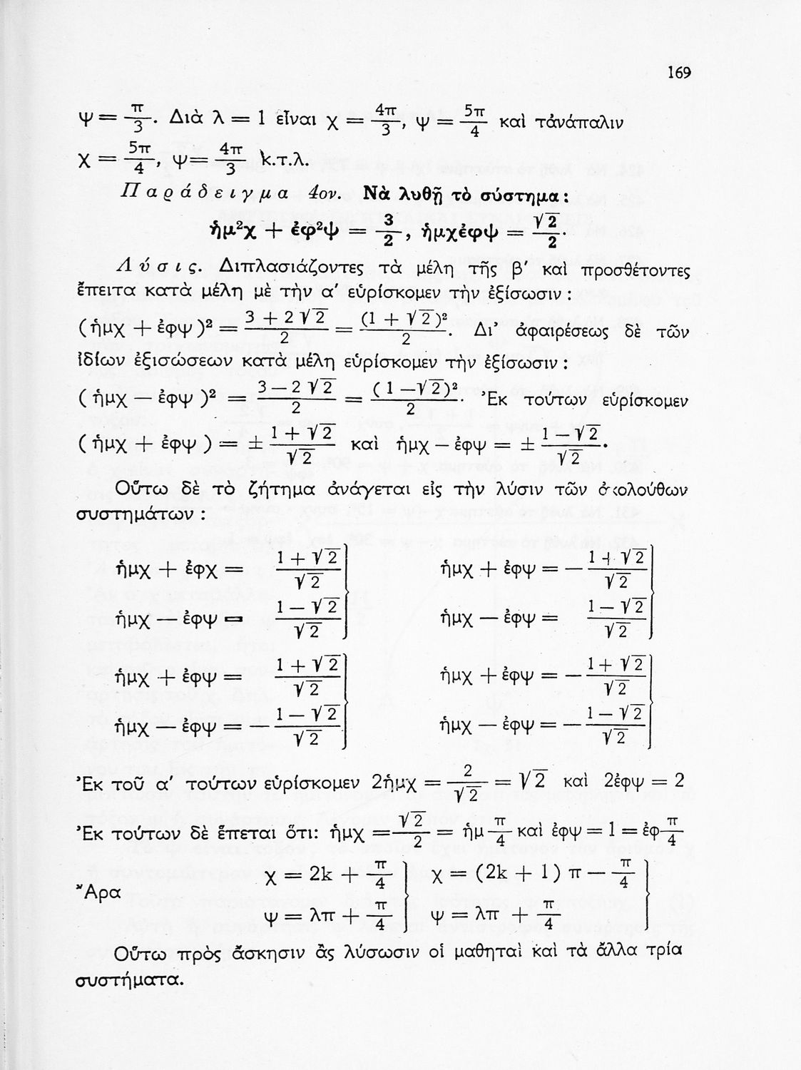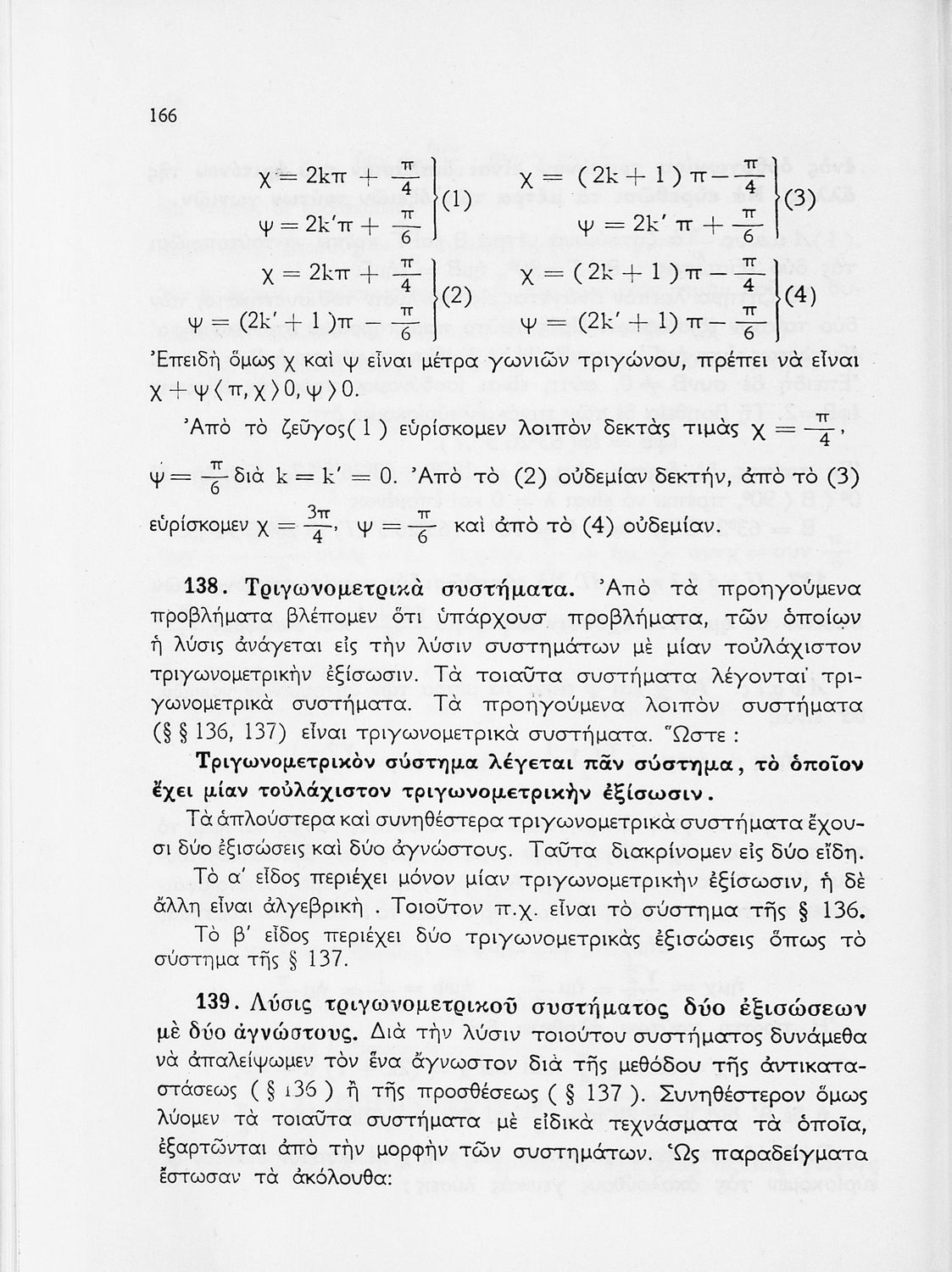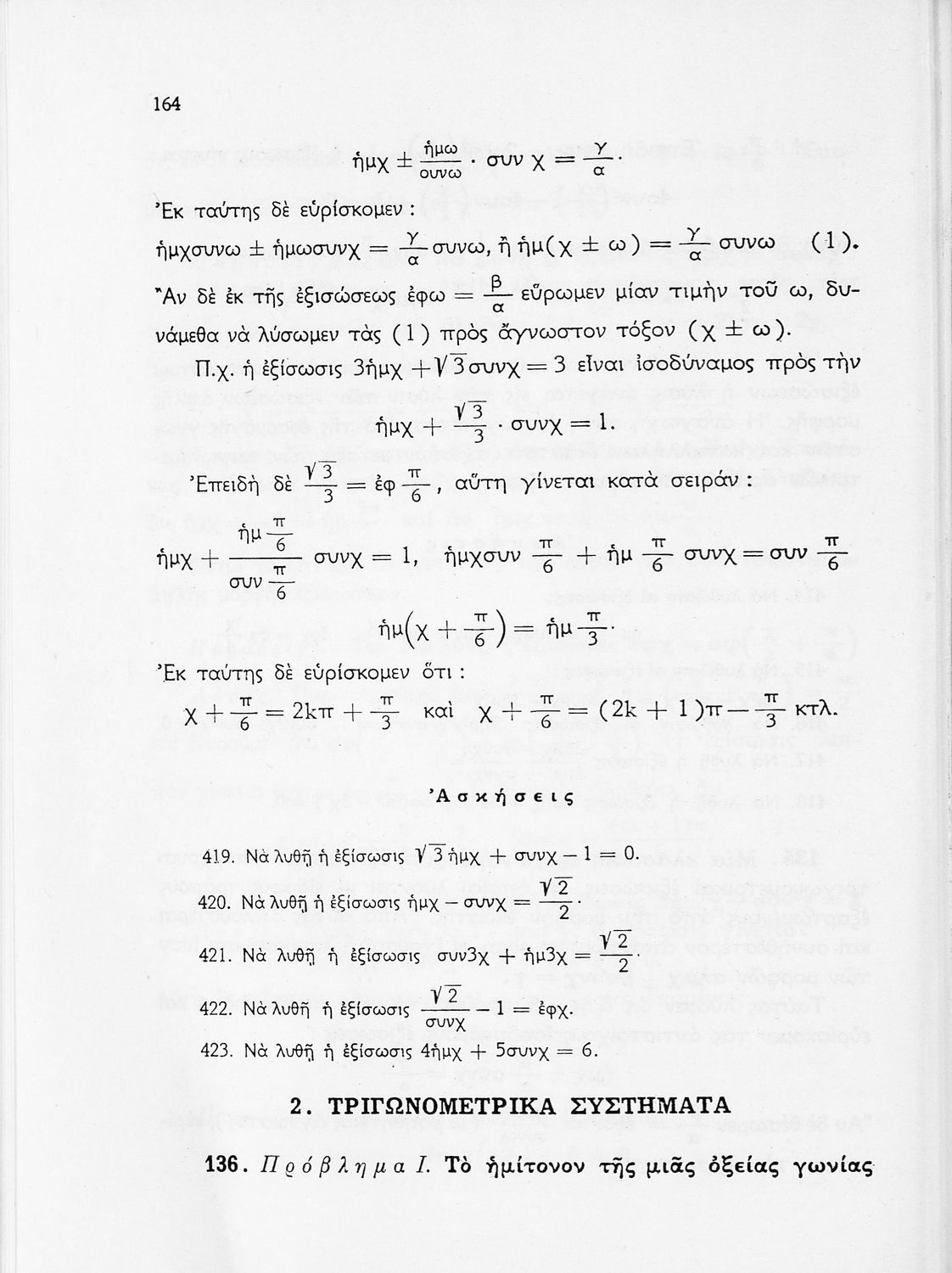 Σχολικό εγχειρίδιο Τριγωνομετρίας για τις Δ΄, Ε΄ και ΣΤ΄ Γυμνασίου που περιλαμβάνει θεωρία και ασκήσεις. Φέρει το σύμβολο της δικτατορίας.
