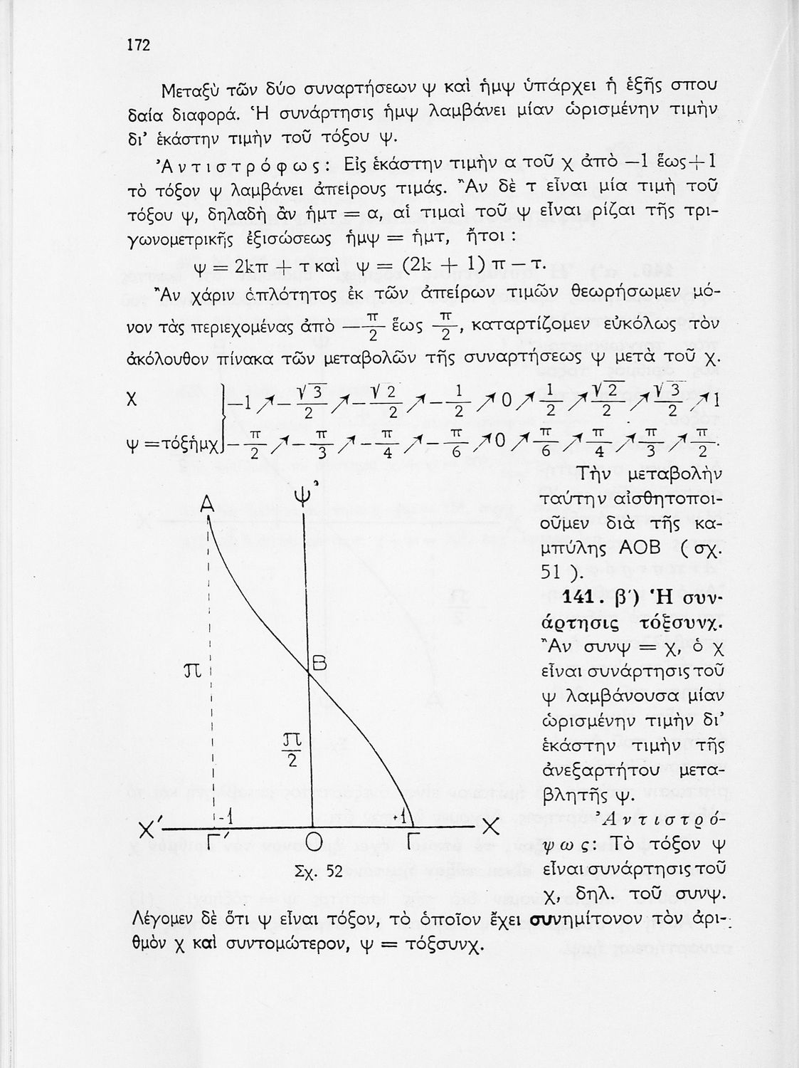 Παρουσίαση περιεχομένου: Σχολικό εγχειρίδιο Τριγωνομετρίας για τις Δ΄, Ε΄ και ΣΤ΄ Γυμνασίου που περιλαμβάνει θεωρία και ασκήσεις. Φέρει το σύμβολο της δικτατορίας.