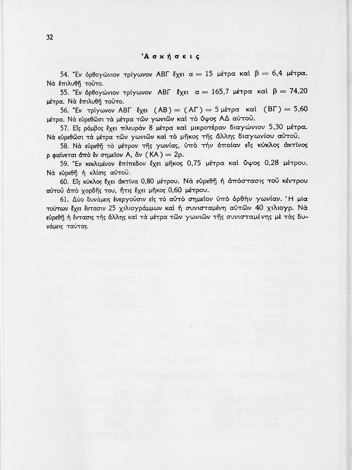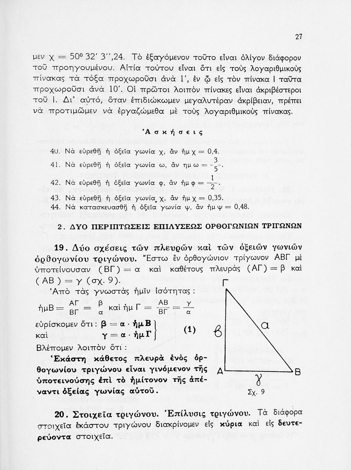 Παρουσίαση περιεχομένου: Σχολικό εγχειρίδιο Τριγωνομετρίας για τις Δ΄, Ε΄ και ΣΤ΄ Γυμνασίου που περιλαμβάνει θεωρία και ασκήσεις. Φέρει το σύμβολο της δικτατορίας.