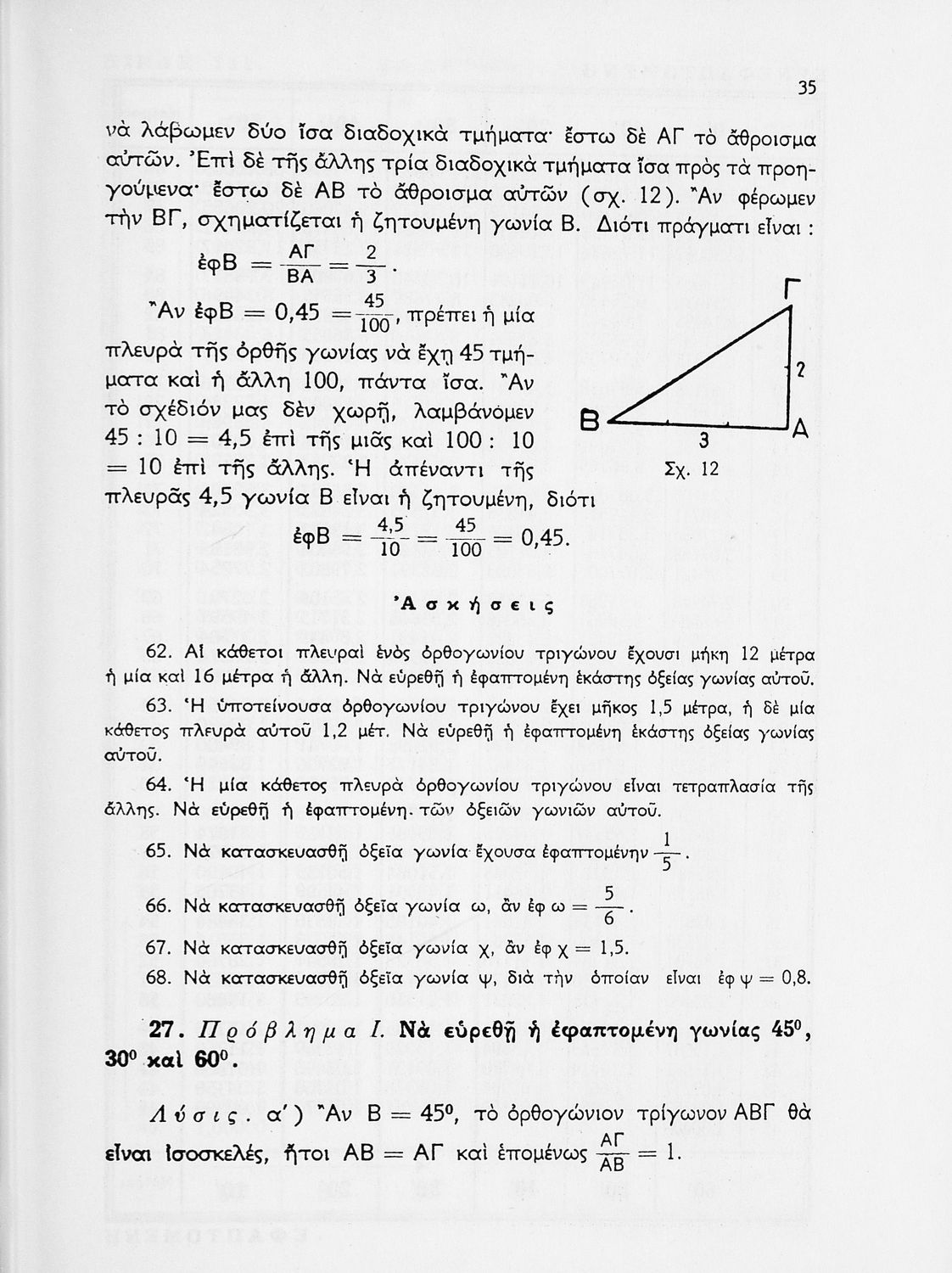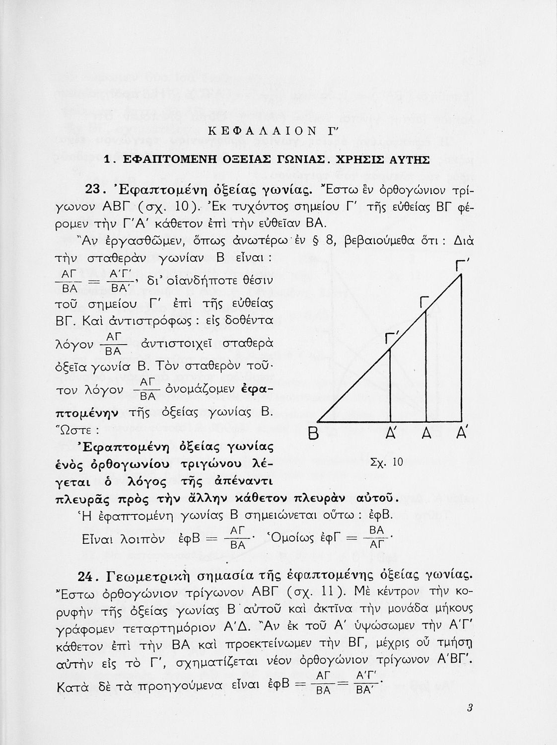 Σχολικό εγχειρίδιο Τριγωνομετρίας για τις Δ΄, Ε΄ και ΣΤ΄ Γυμνασίου που περιλαμβάνει θεωρία και ασκήσεις. Φέρει το σύμβολο της δικτατορίας.