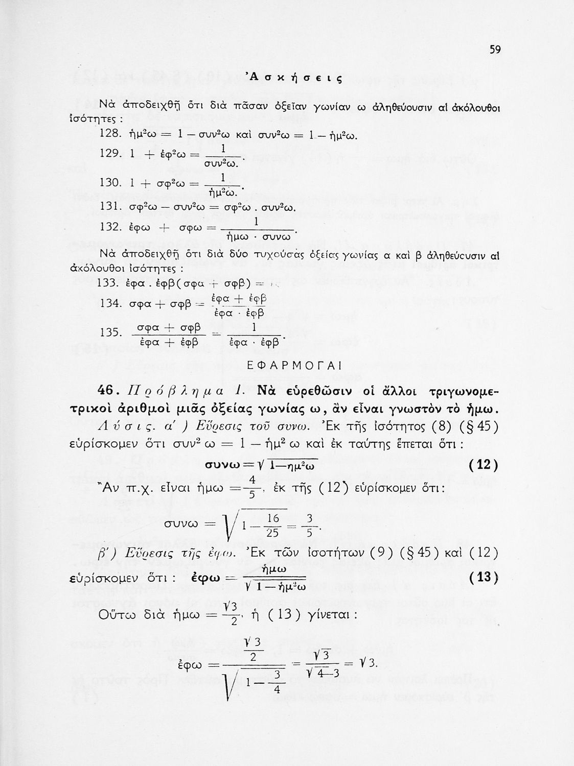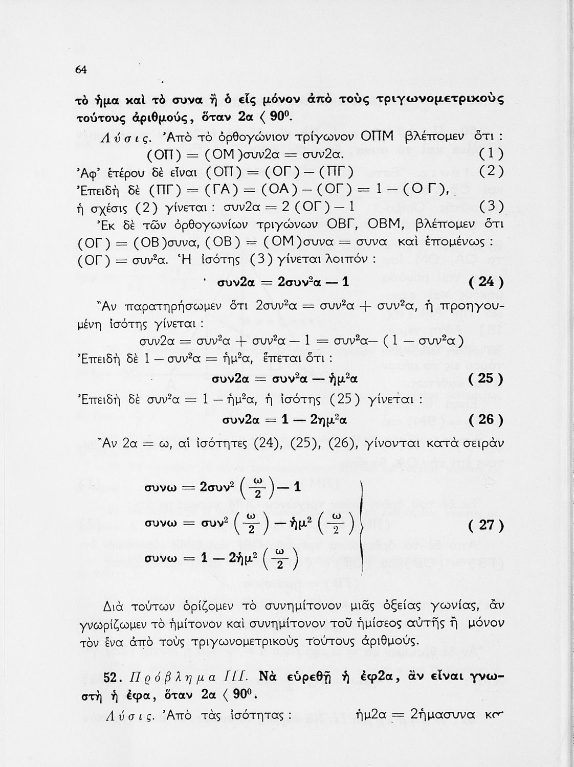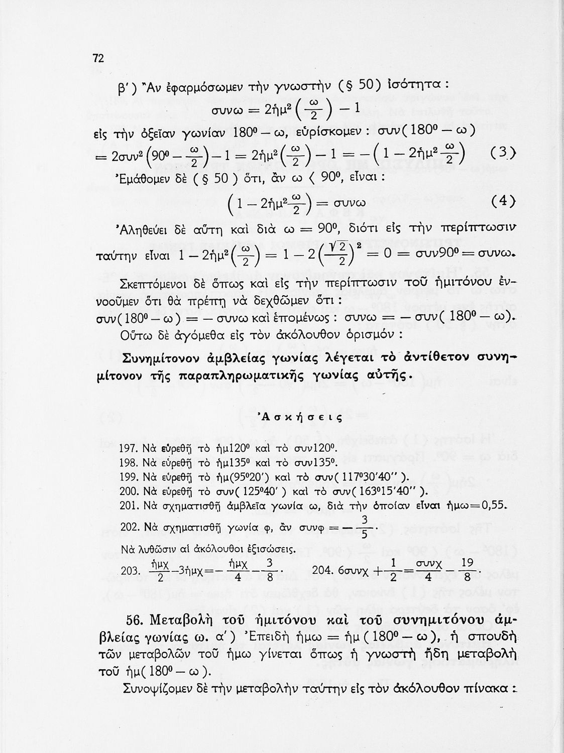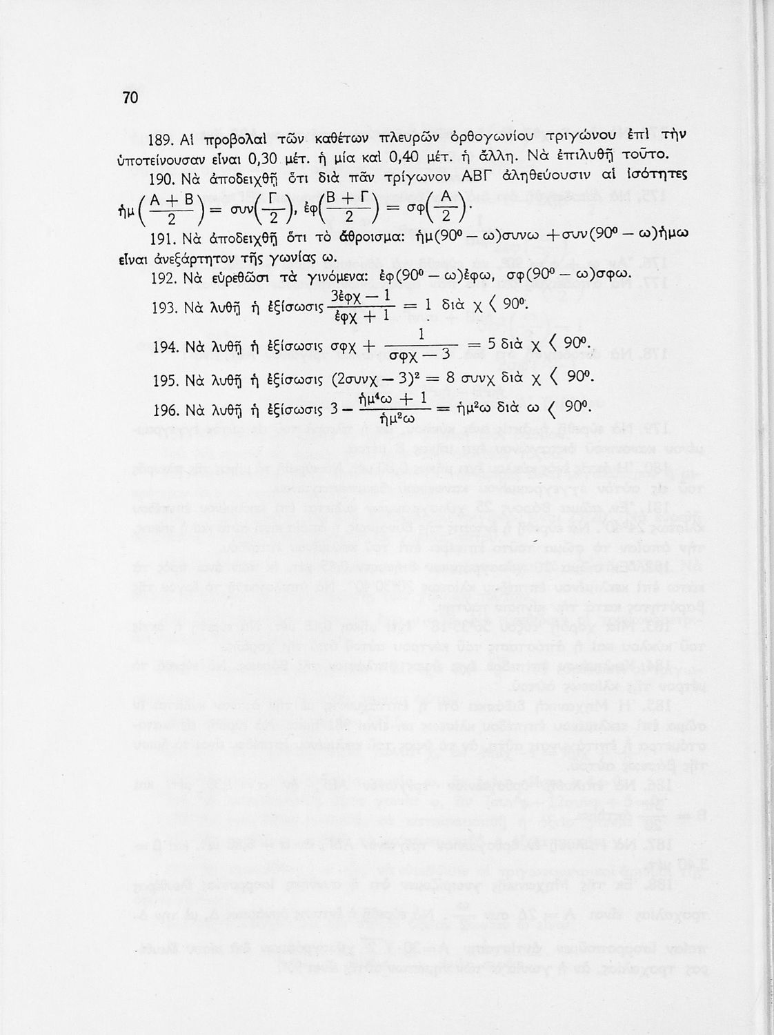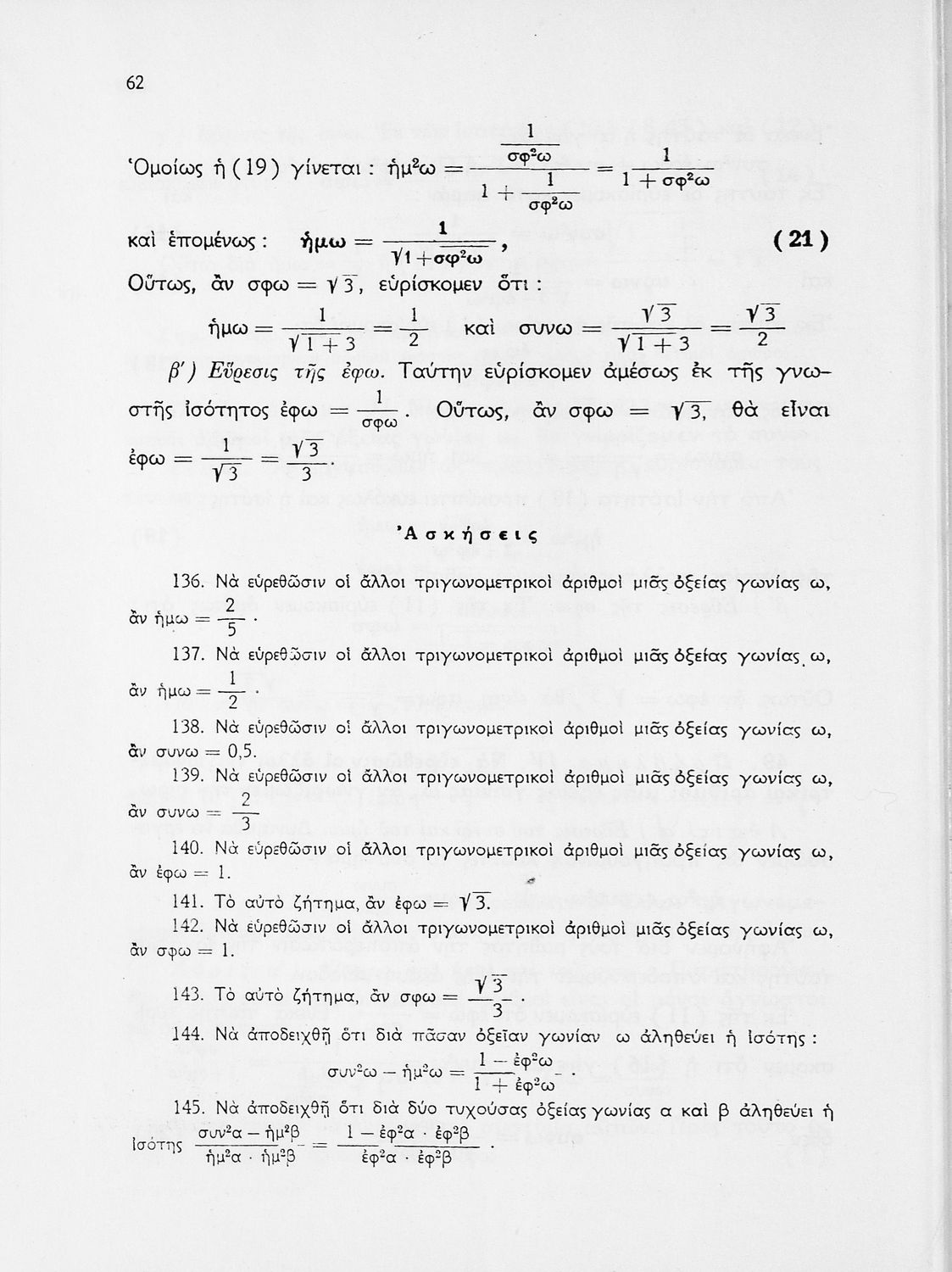 Σχολικό εγχειρίδιο Τριγωνομετρίας για τις Δ΄, Ε΄ και ΣΤ΄ Γυμνασίου που περιλαμβάνει θεωρία και ασκήσεις. Φέρει το σύμβολο της δικτατορίας.