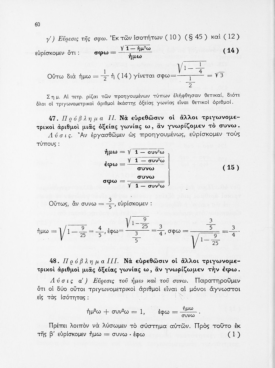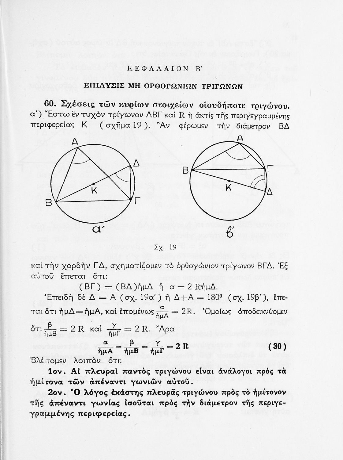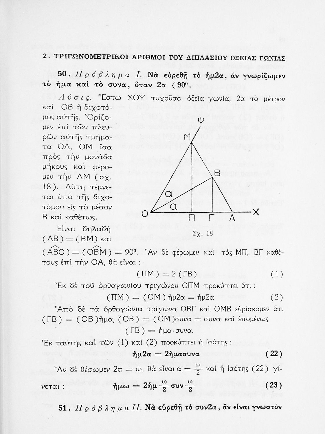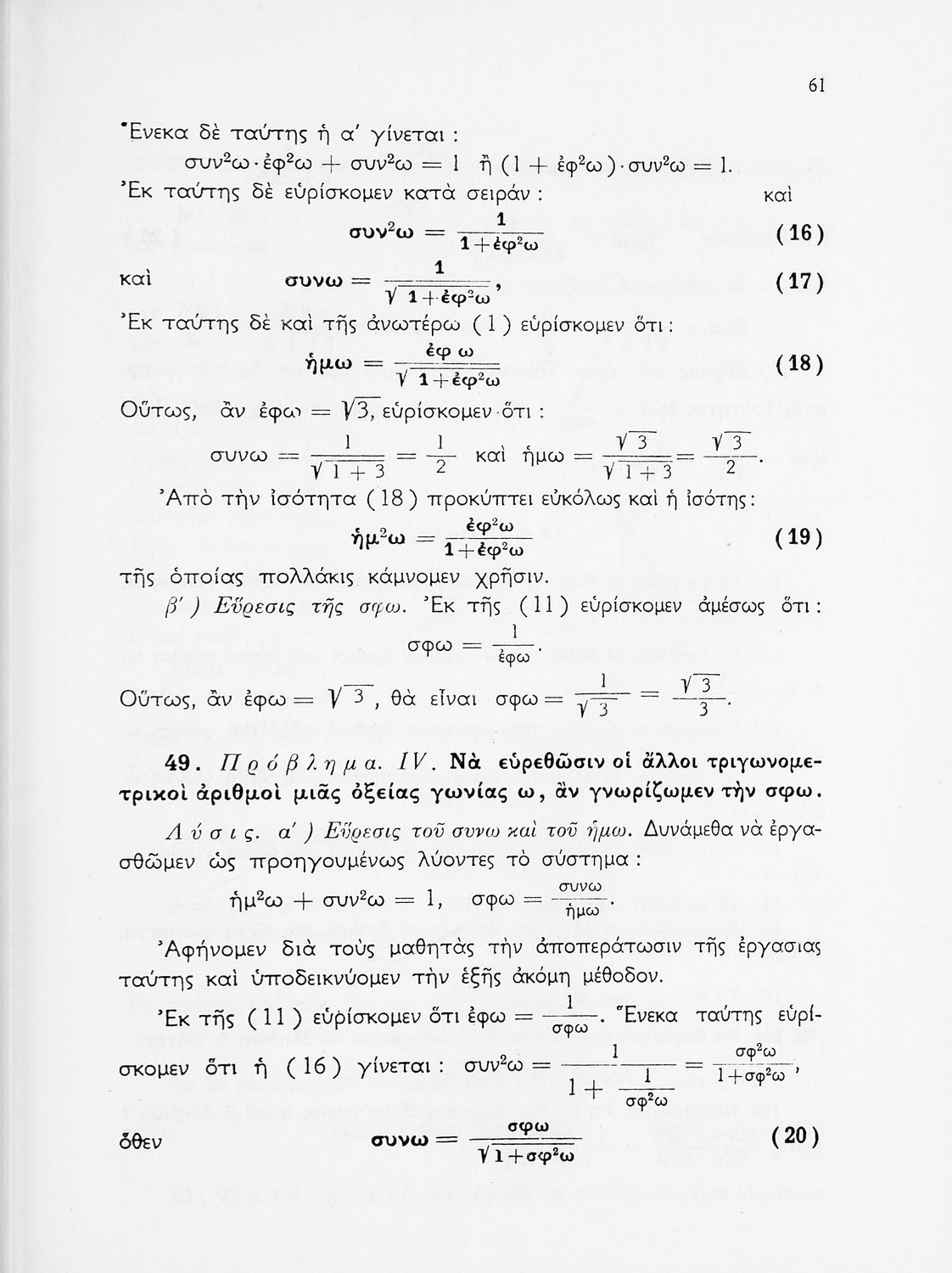Σχολικό εγχειρίδιο Τριγωνομετρίας για τις Δ΄, Ε΄ και ΣΤ΄ Γυμνασίου που περιλαμβάνει θεωρία και ασκήσεις. Φέρει το σύμβολο της δικτατορίας.