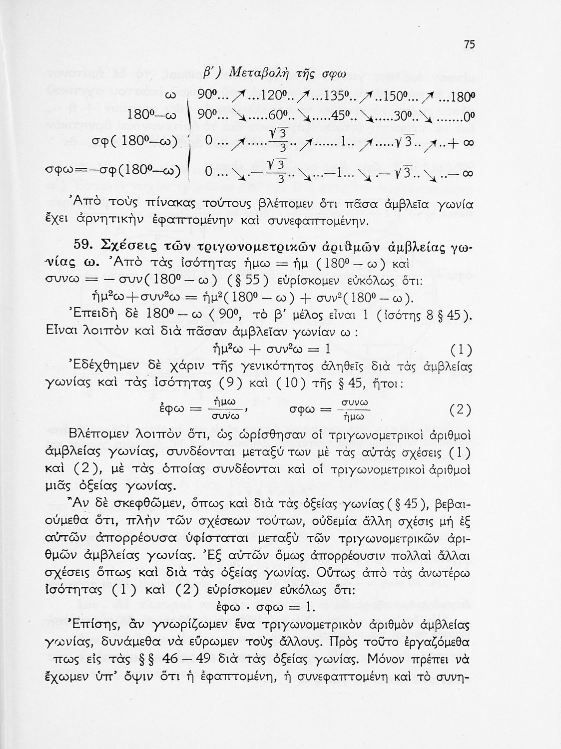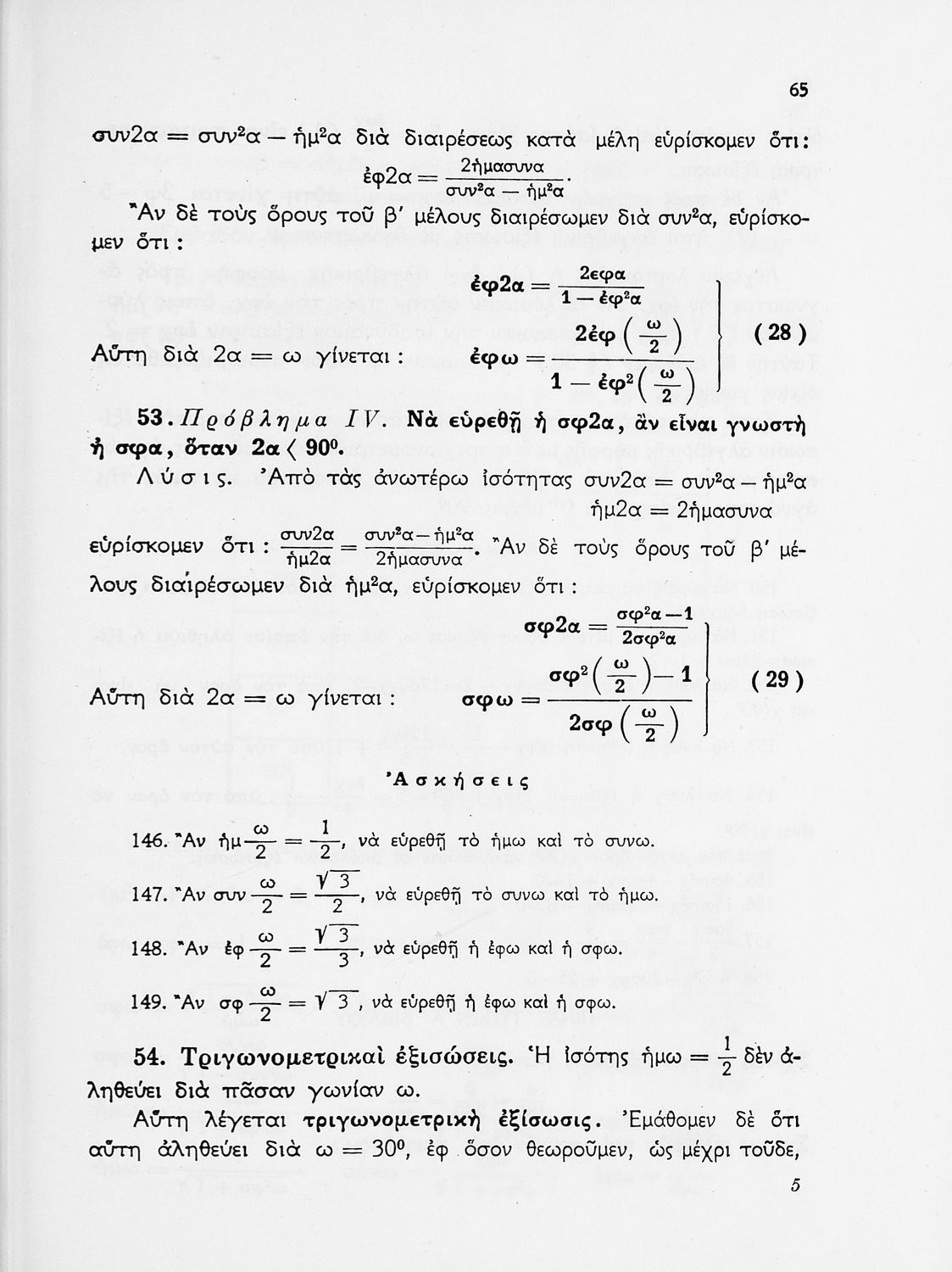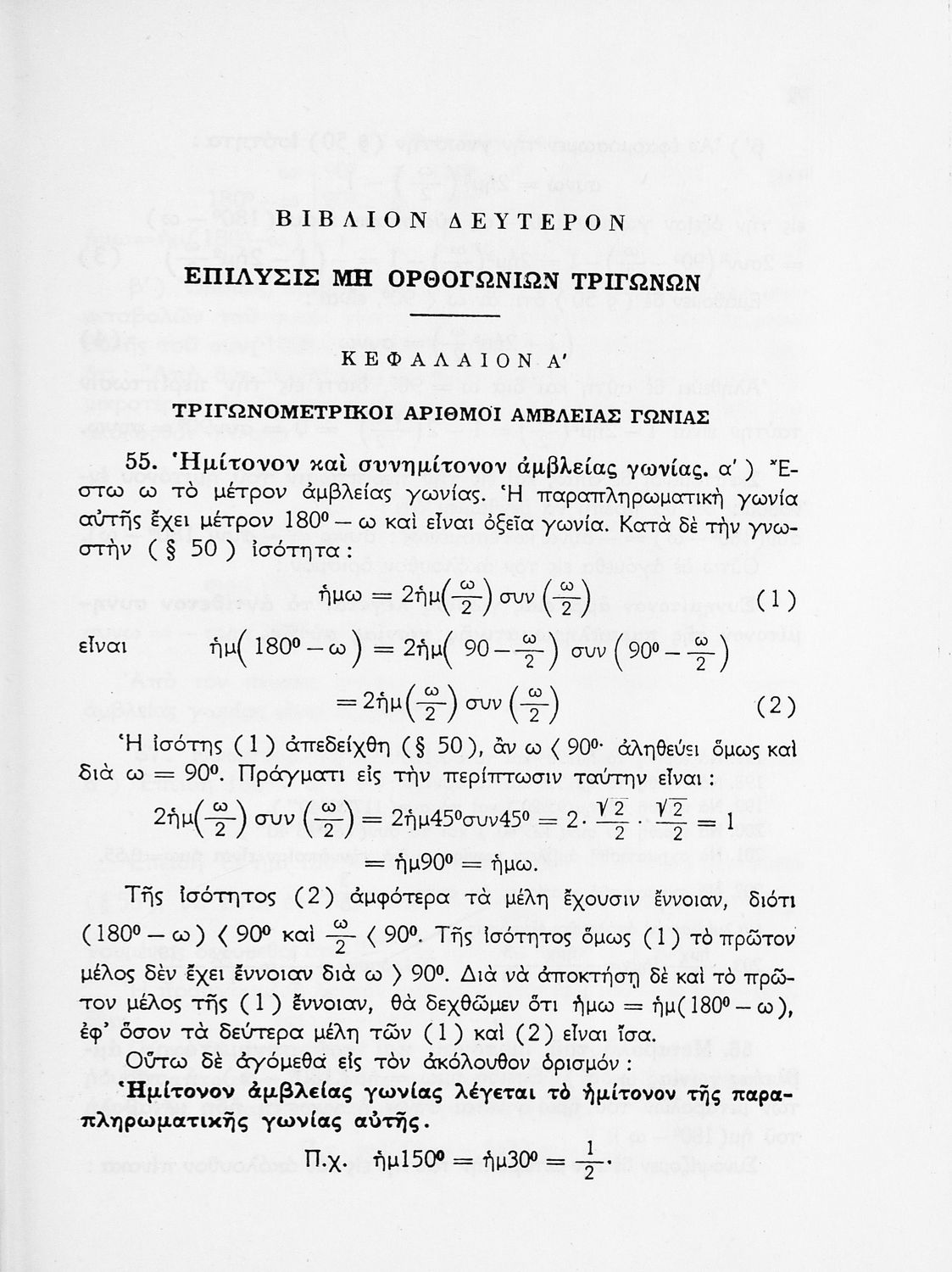 Παρουσίαση περιεχομένου: Σχολικό εγχειρίδιο Τριγωνομετρίας για τις Δ΄, Ε΄ και ΣΤ΄ Γυμνασίου που περιλαμβάνει θεωρία και ασκήσεις. Φέρει το σύμβολο της δικτατορίας.