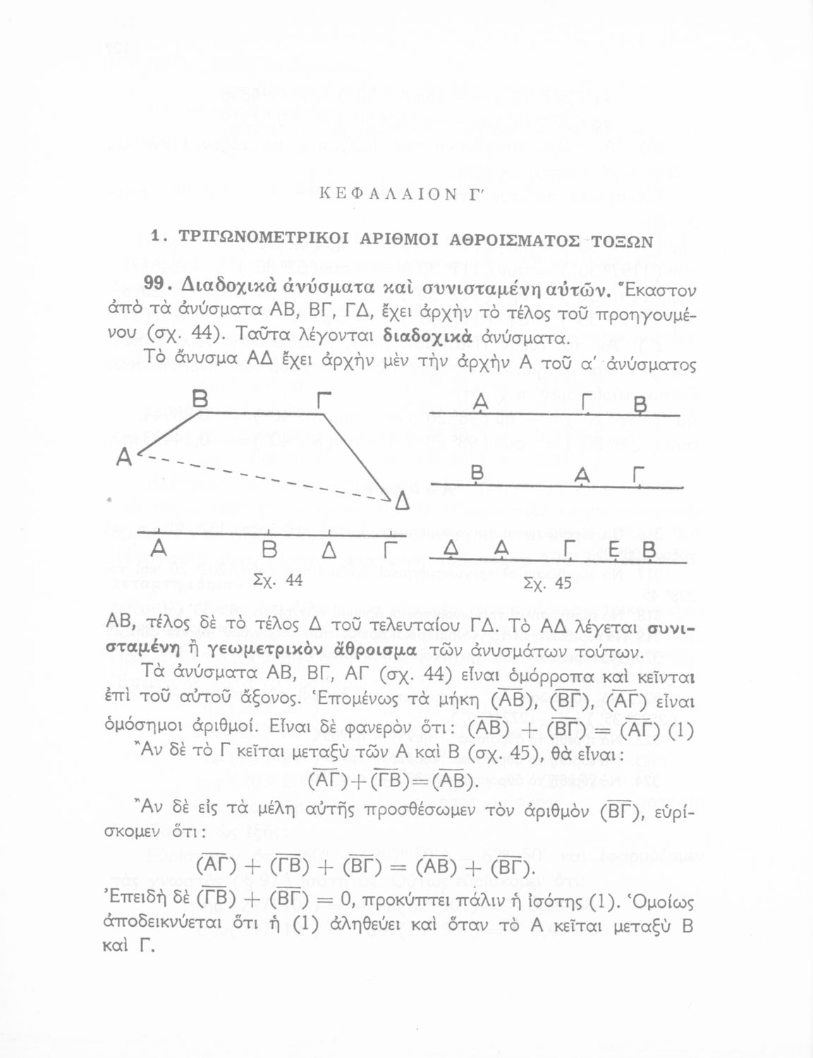 Βαθμίδα εκπαίδευσης: Δευτεροβάθμια Τάξη: Δ' Γυμνασίου / Ε' Γυμνασίου / ΣΤ' Γυμνασίου Μάθημα: Μαθηματικά Γλώσσα: Απλή καθαρεύουσα Παρουσίαση περιεχομένου: Σχολικό εγχειρίδιο Τριγωνομετρίας για τις Δ΄, Ε΄ και ΣΤ΄ Γυμνασίου που περιλαμβάνει θεωρία και ασκήσεις. |