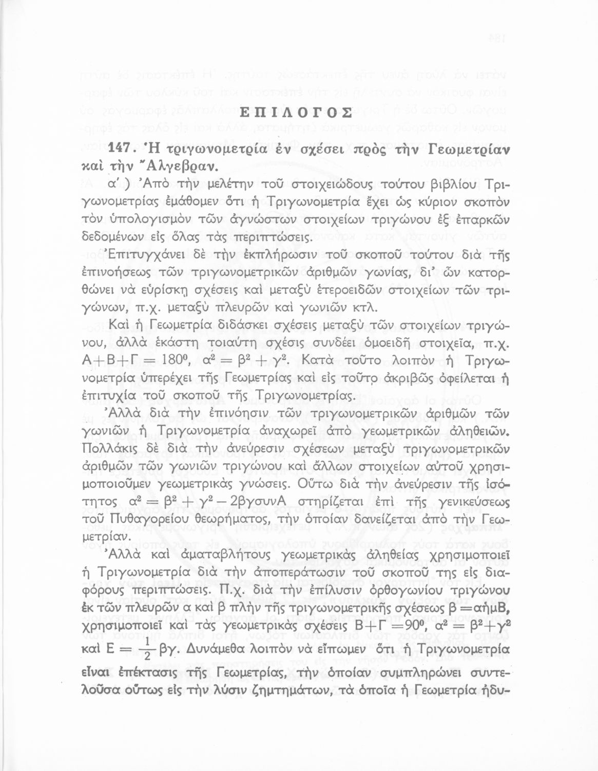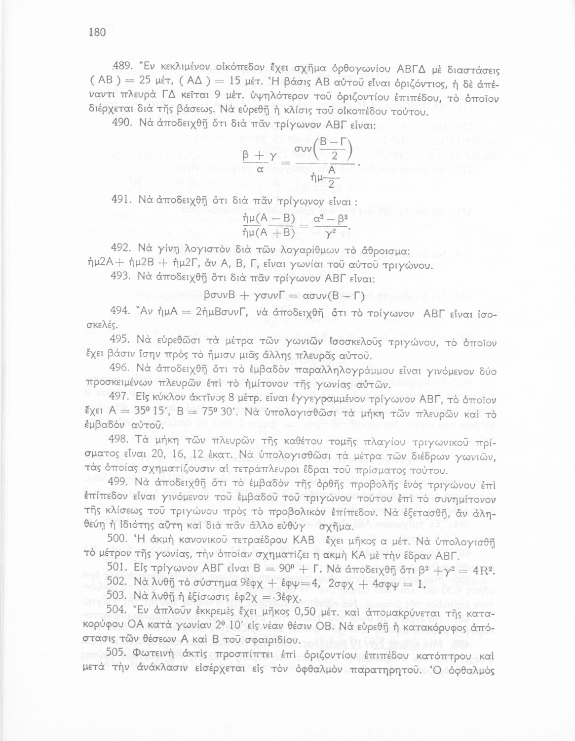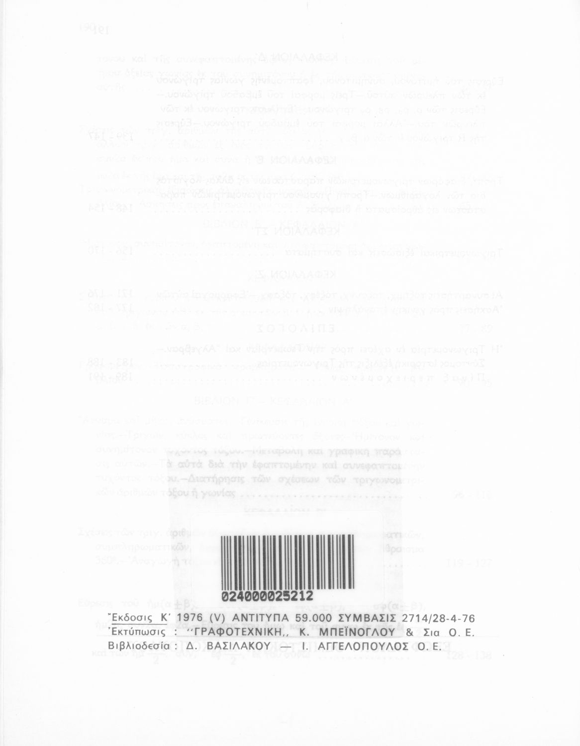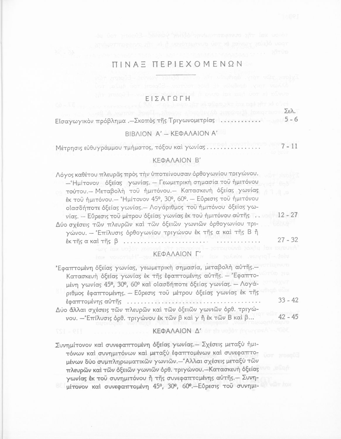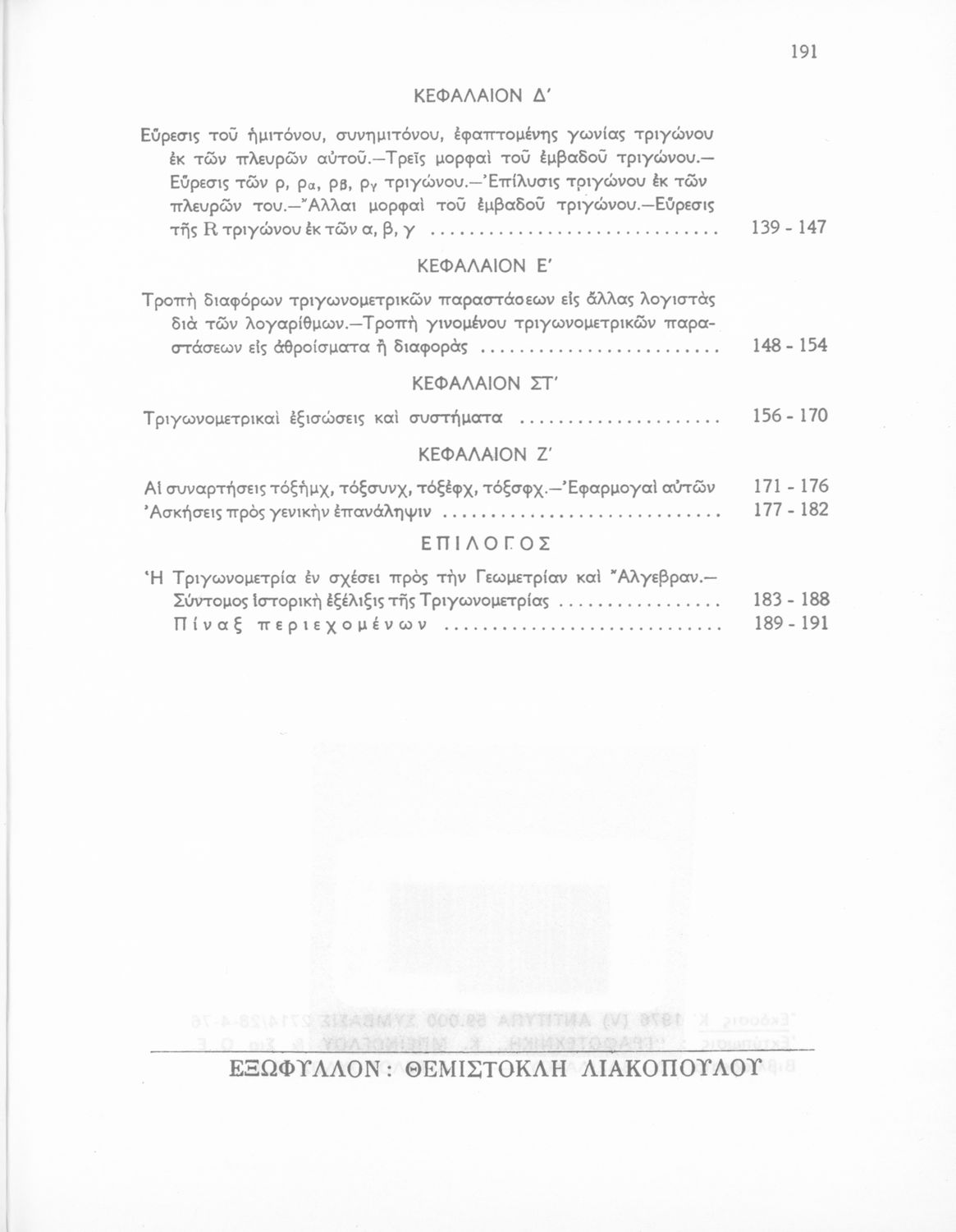 Σχολικό εγχειρίδιο Τριγωνομετρίας για τις Δ΄, Ε΄ και ΣΤ΄ Γυμνασίου που περιλαμβάνει θεωρία και ασκήσεις. Φέρει το σύμβολο της δικτατορίας.