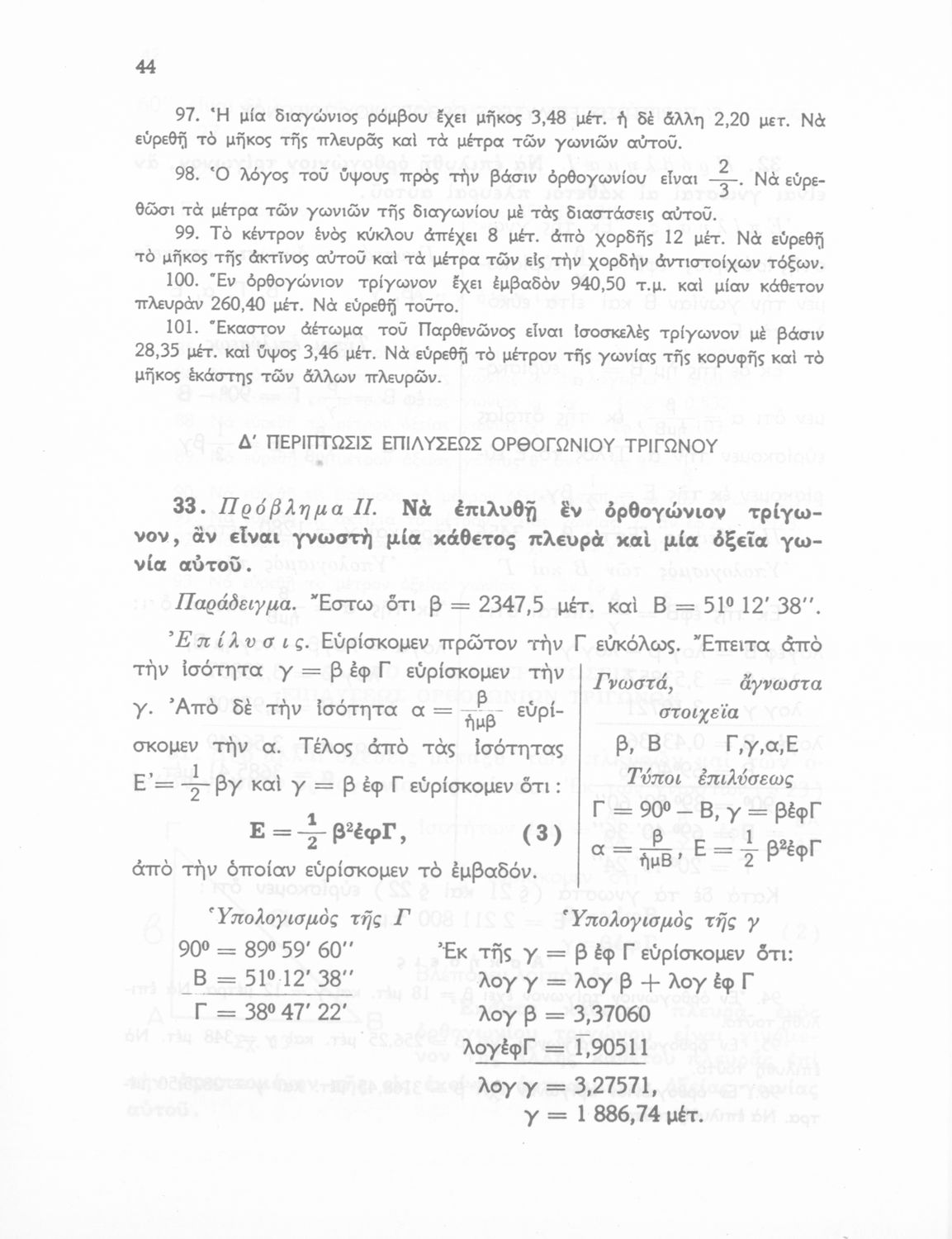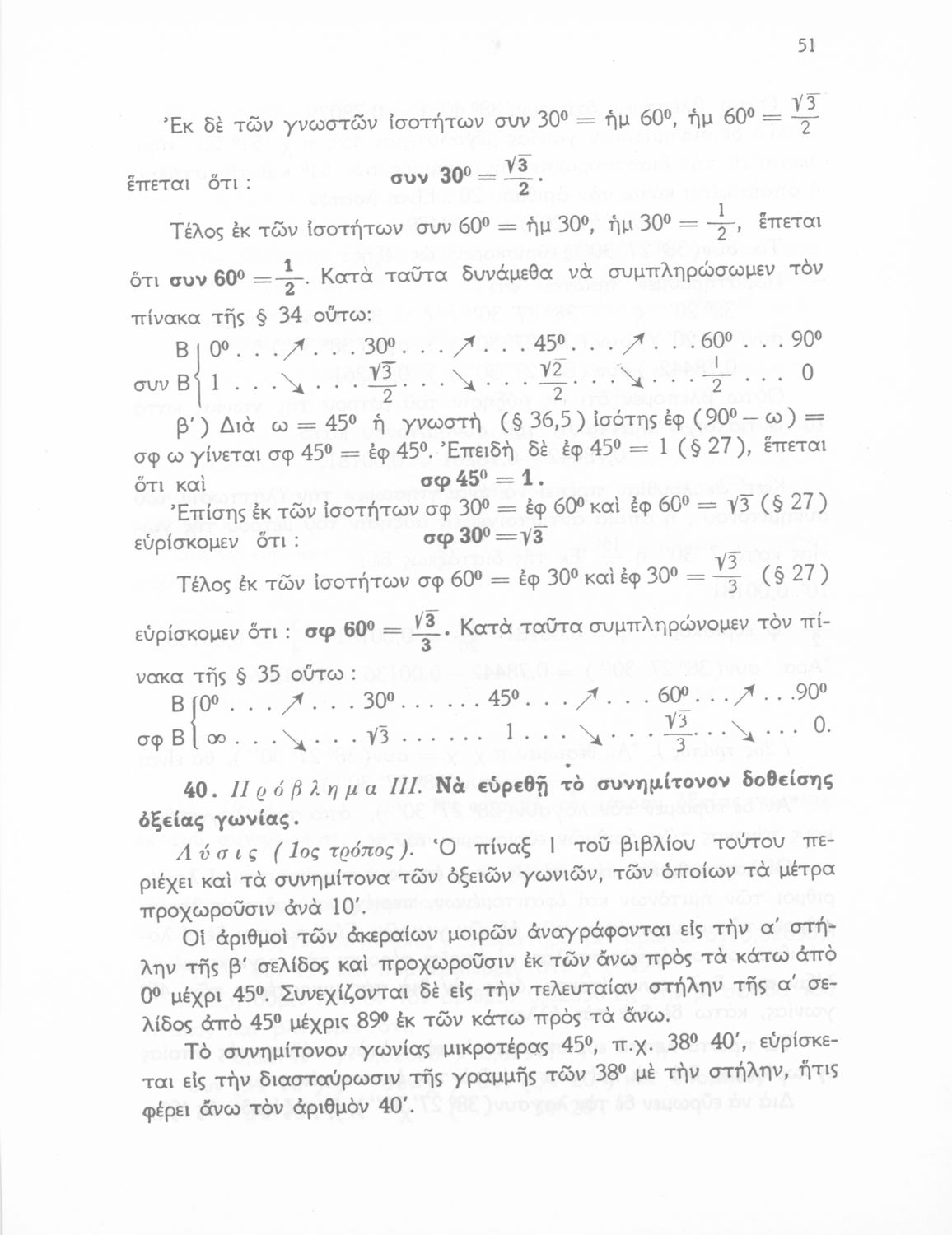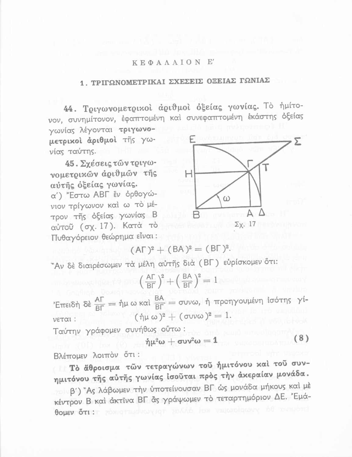 Βαθμίδα εκπαίδευσης: Δευτεροβάθμια Τάξη: Δ' Γυμνασίου / Ε' Γυμνασίου / ΣΤ' Γυμνασίου Μάθημα: Μαθηματικά Γλώσσα: Απλή καθαρεύουσα Παρουσίαση περιεχομένου: Σχολικό εγχειρίδιο Τριγωνομετρίας για τις Δ΄, Ε΄ και ΣΤ΄ Γυμνασίου που περιλαμβάνει θεωρία και ασκήσεις. |