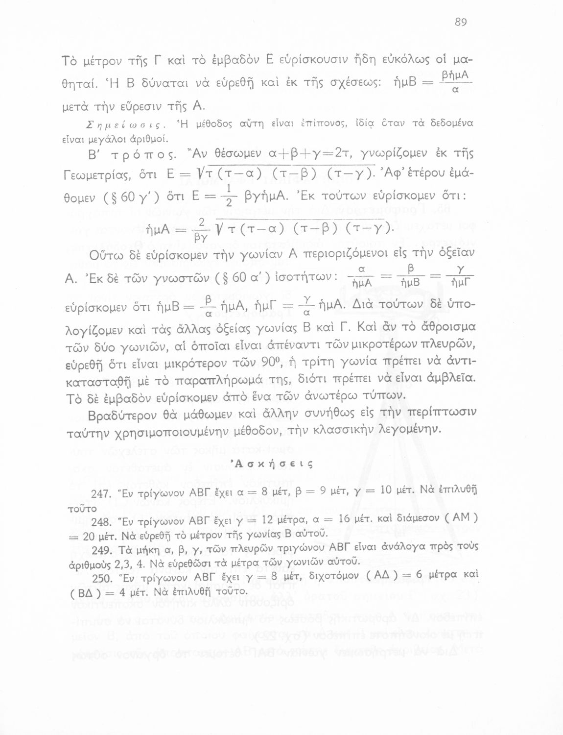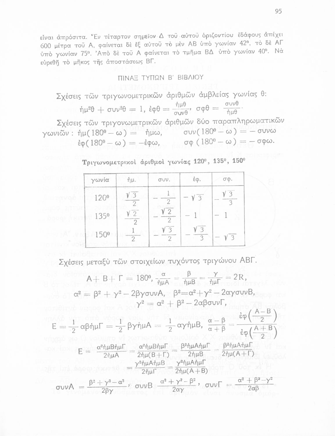 Σχολικό εγχειρίδιο Τριγωνομετρίας για τις Δ΄, Ε΄ και ΣΤ΄ Γυμνασίου που περιλαμβάνει θεωρία και ασκήσεις. Φέρει το σύμβολο της δικτατορίας.