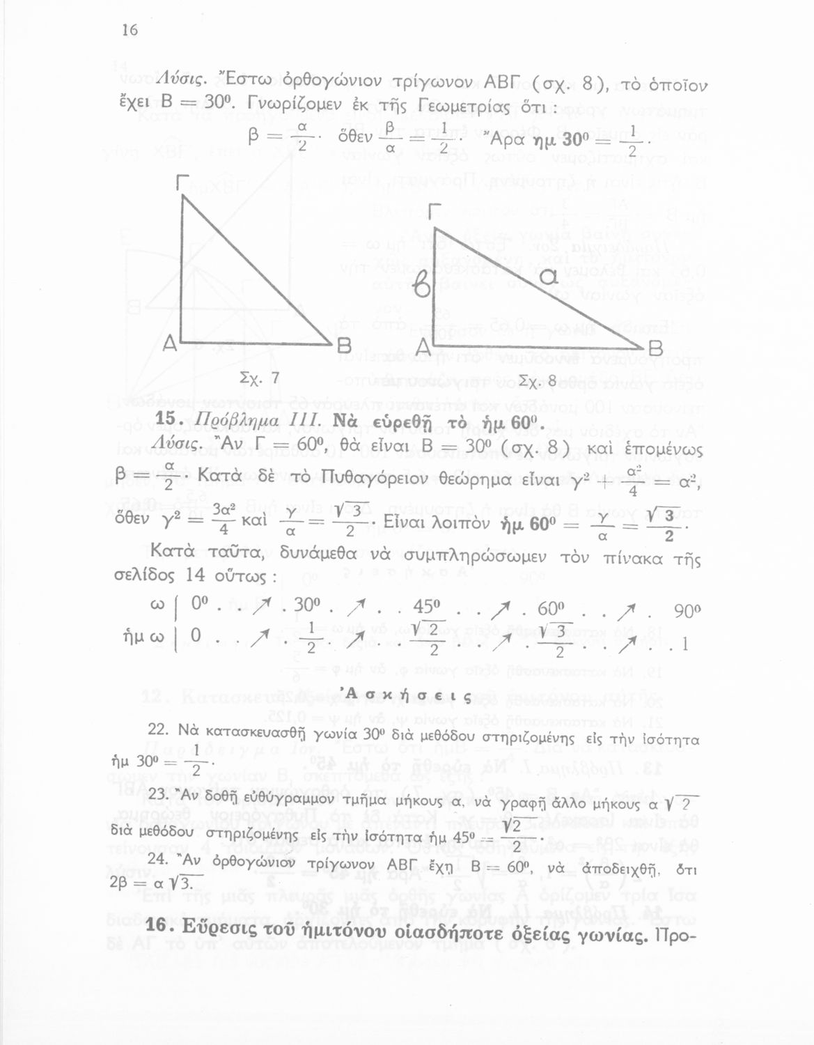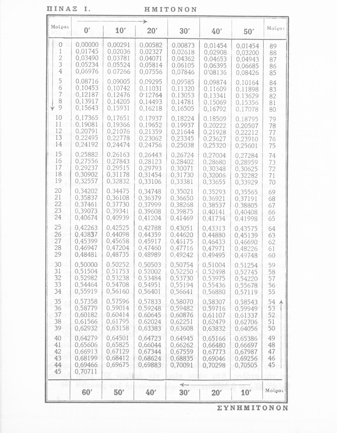Τριγωνομετρία Δ΄, Ε΄, ΣΤ΄, Γυμνασίου