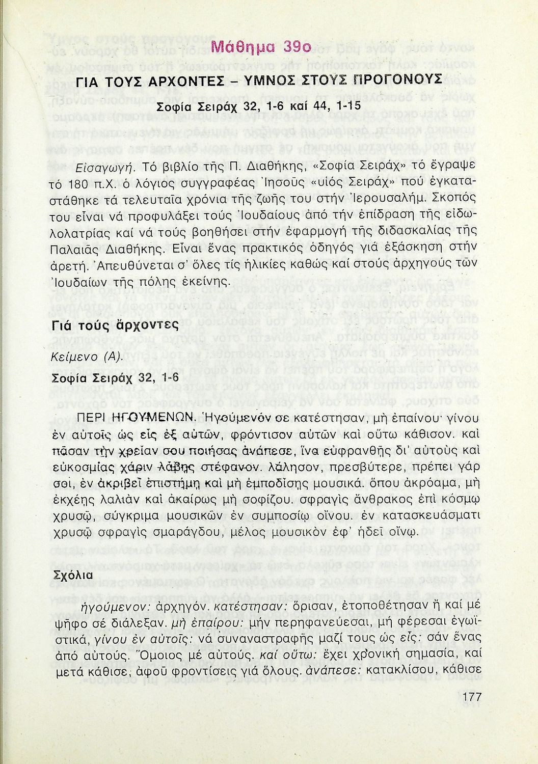 Σχολικό εγχειρίδιο Αρχαίων Ελληνικών για τις Α΄, Β΄ και Γ΄ Λυκείου που εξετάζει τα μέρη του λόγου και την σύνταξή τους.