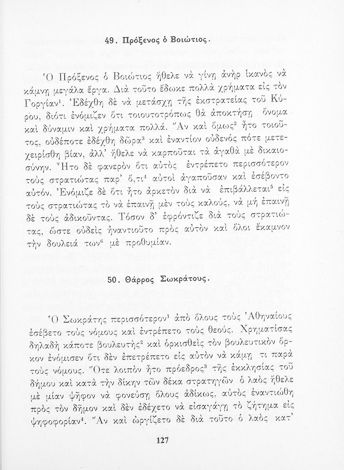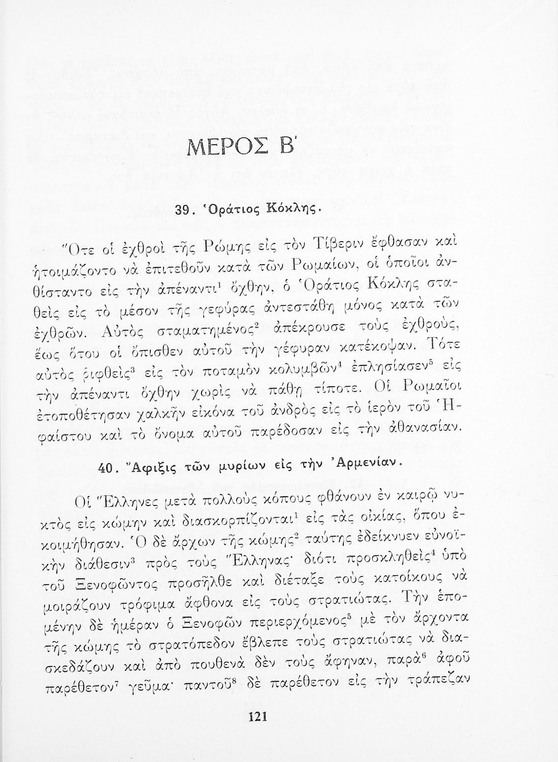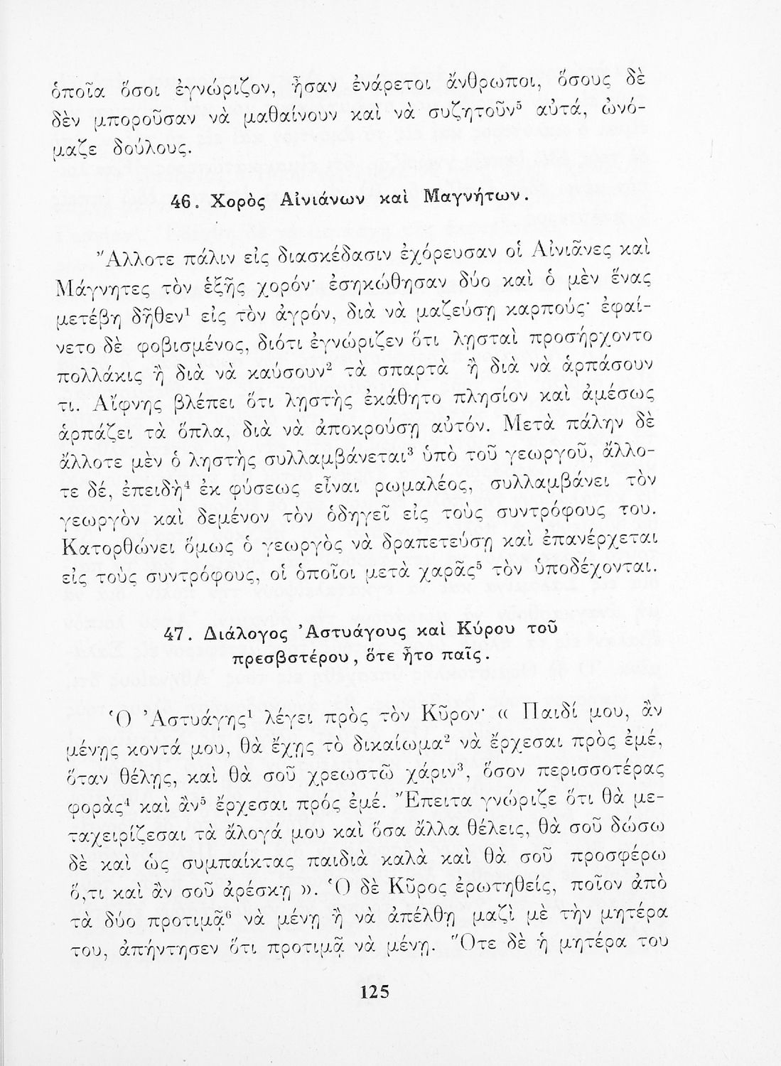 Σχολικό Εγχειρίδιο Αρχαίων Ελληνικών Α' και Β΄ Γυμνασίου που περιλαμβάνει κείμενα προσαρμοσμένα στη διδασκαλία των γραμματικών και συντακτικών φαινομένων, και ερμηνευτικές και λεξιλογικές σημειώσεις.