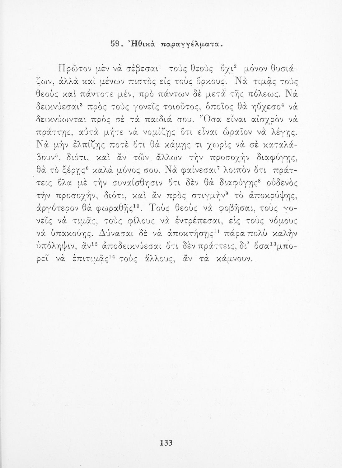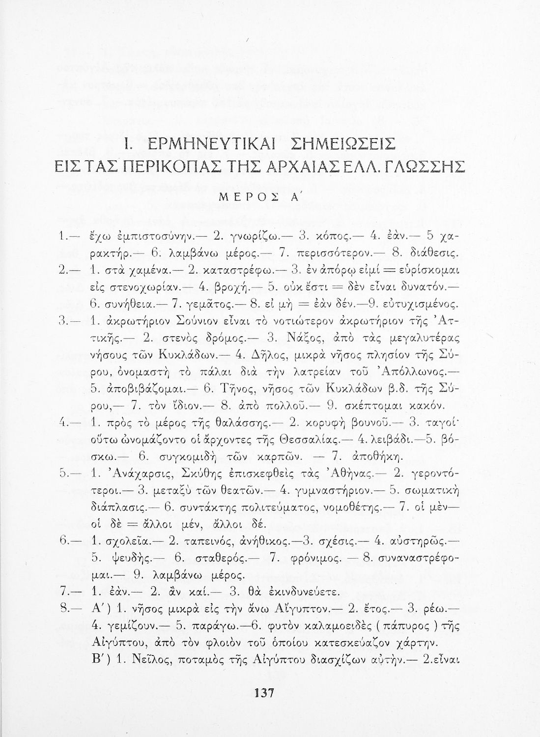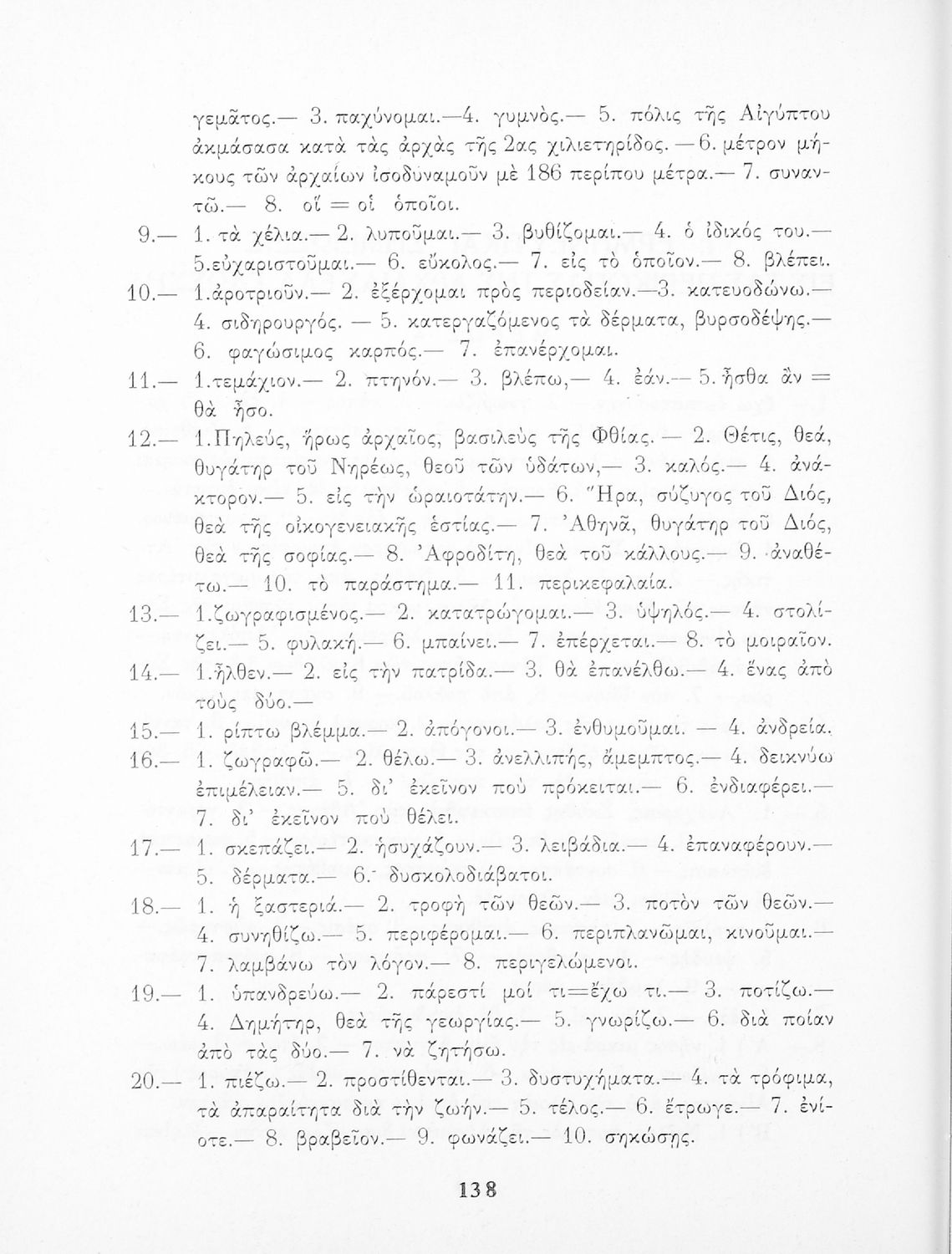 Γραμματική Αρχαίων Ελληνικών της Α΄, Β΄, Γ΄ και Δ΄ Γυμνασίου το οποίο εστιάζει στα μέρη του λόγου και στην σύνταξή τους και είναι χωρισμένο σε φθογγολογικό και τυπολογικό μέρος.