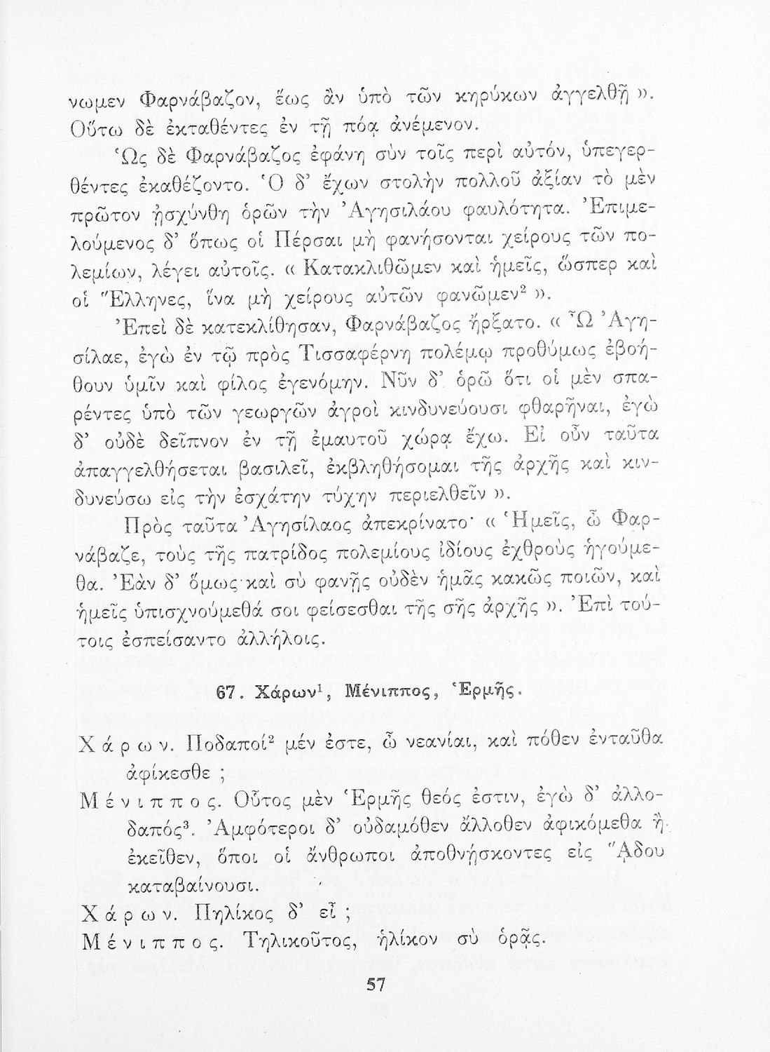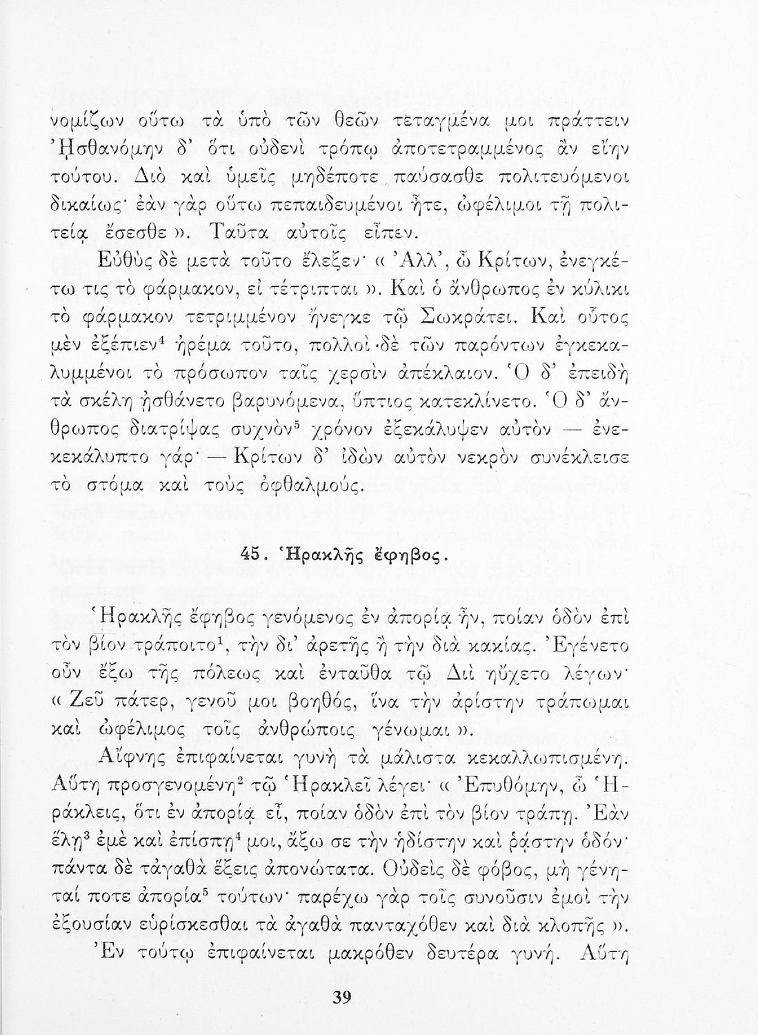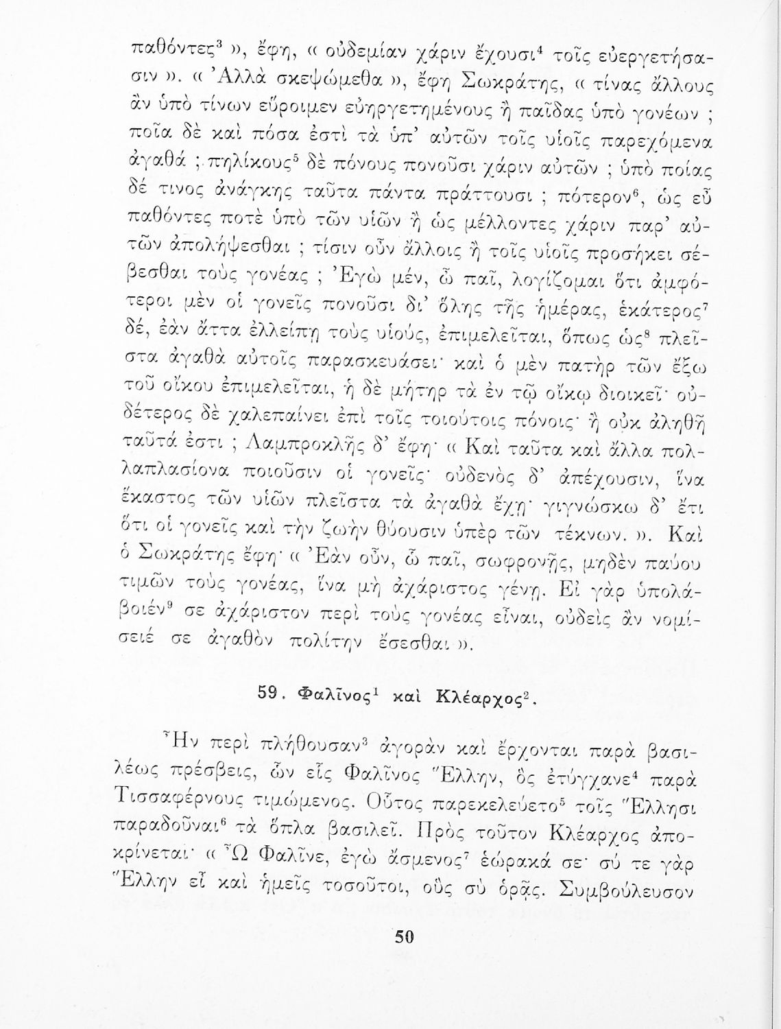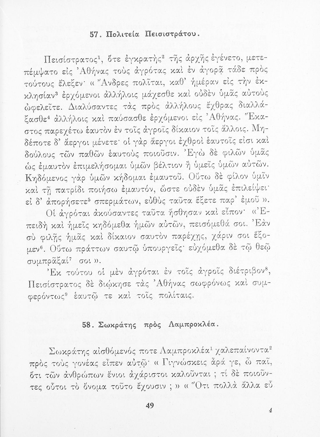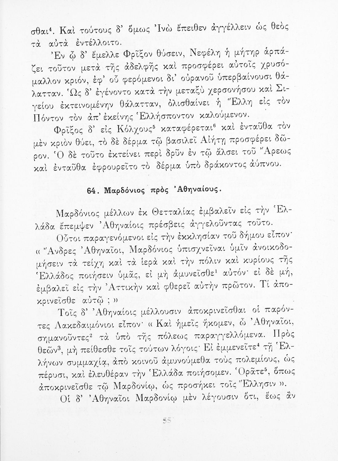 Σχολικό Εγχειρίδιο Αρχαίων Ελληνικών Α' και Β΄ Γυμνασίου που περιλαμβάνει κείμενα προσαρμοσμένα στη διδασκαλία των γραμματικών και συντακτικών φαινομένων, και ερμηνευτικές και λεξιλογικές σημειώσεις.