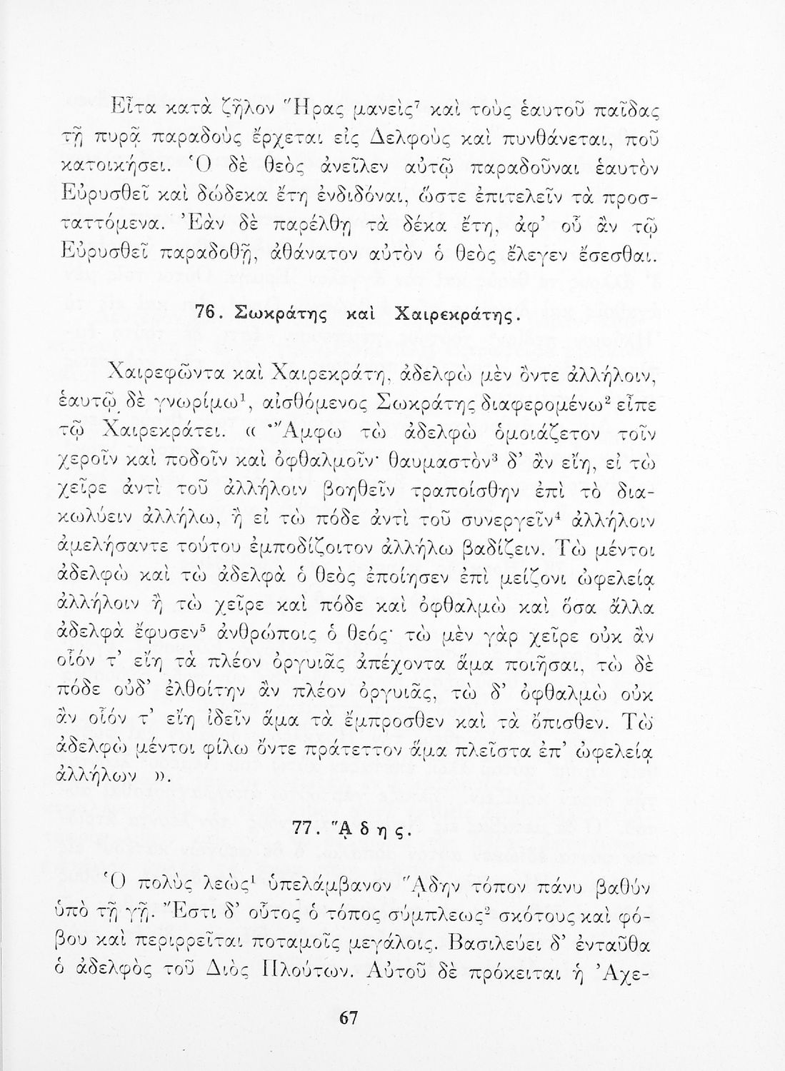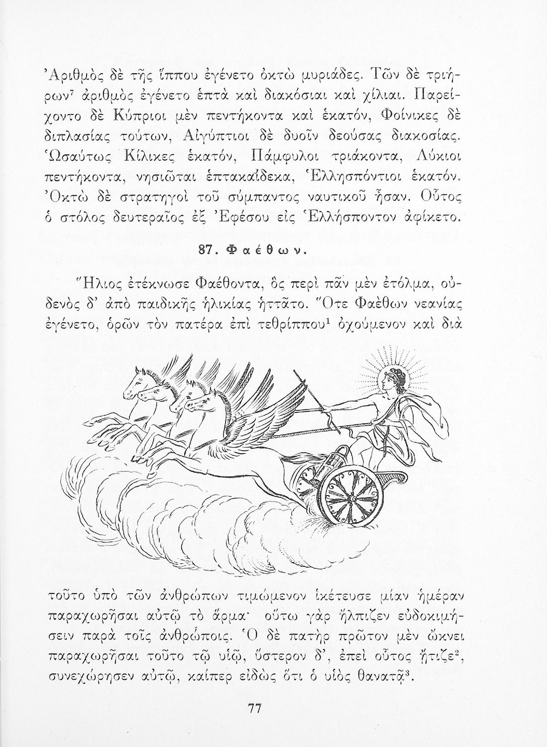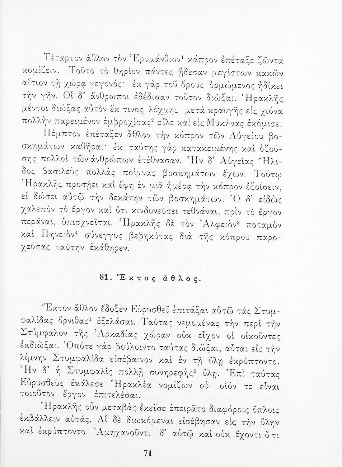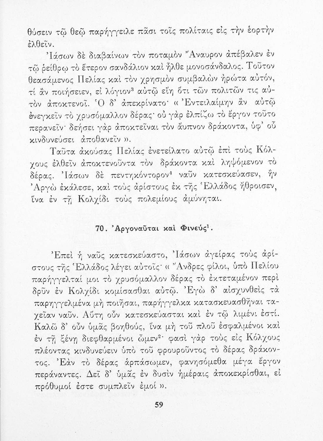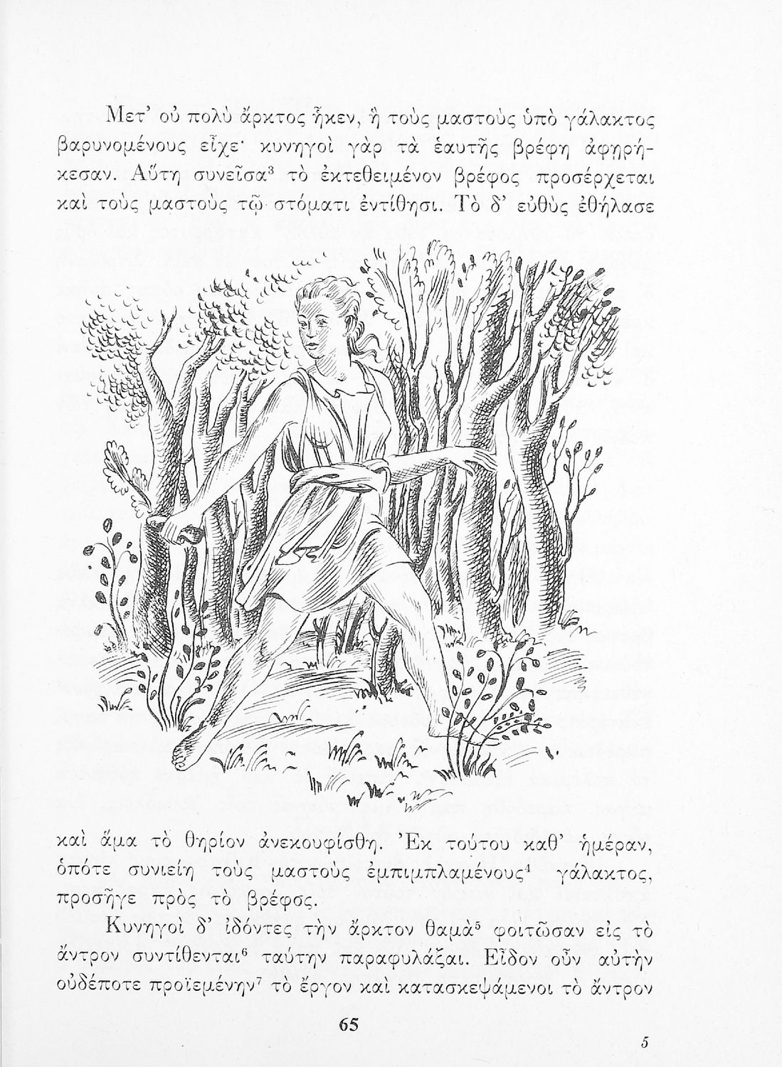 Σχολικό Εγχειρίδιο Αρχαίων Ελληνικών Α' και Β΄ Γυμνασίου που περιλαμβάνει κείμενα προσαρμοσμένα στη διδασκαλία των γραμματικών και συντακτικών φαινομένων, και ερμηνευτικές και λεξιλογικές σημειώσεις.
