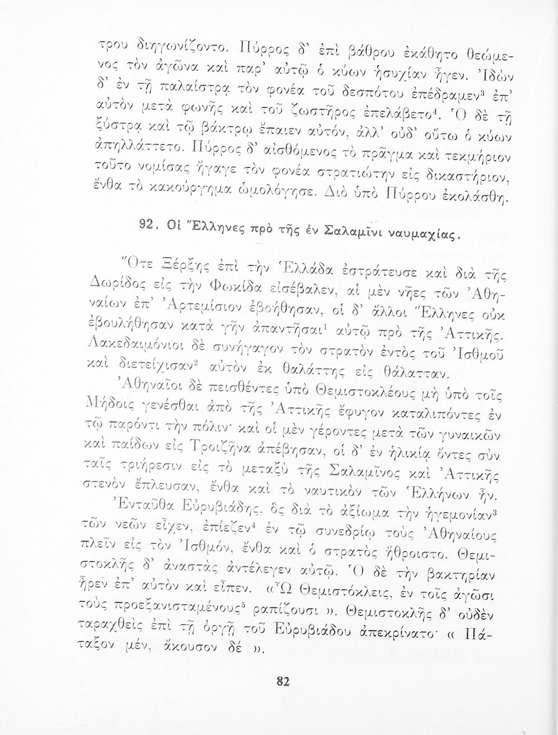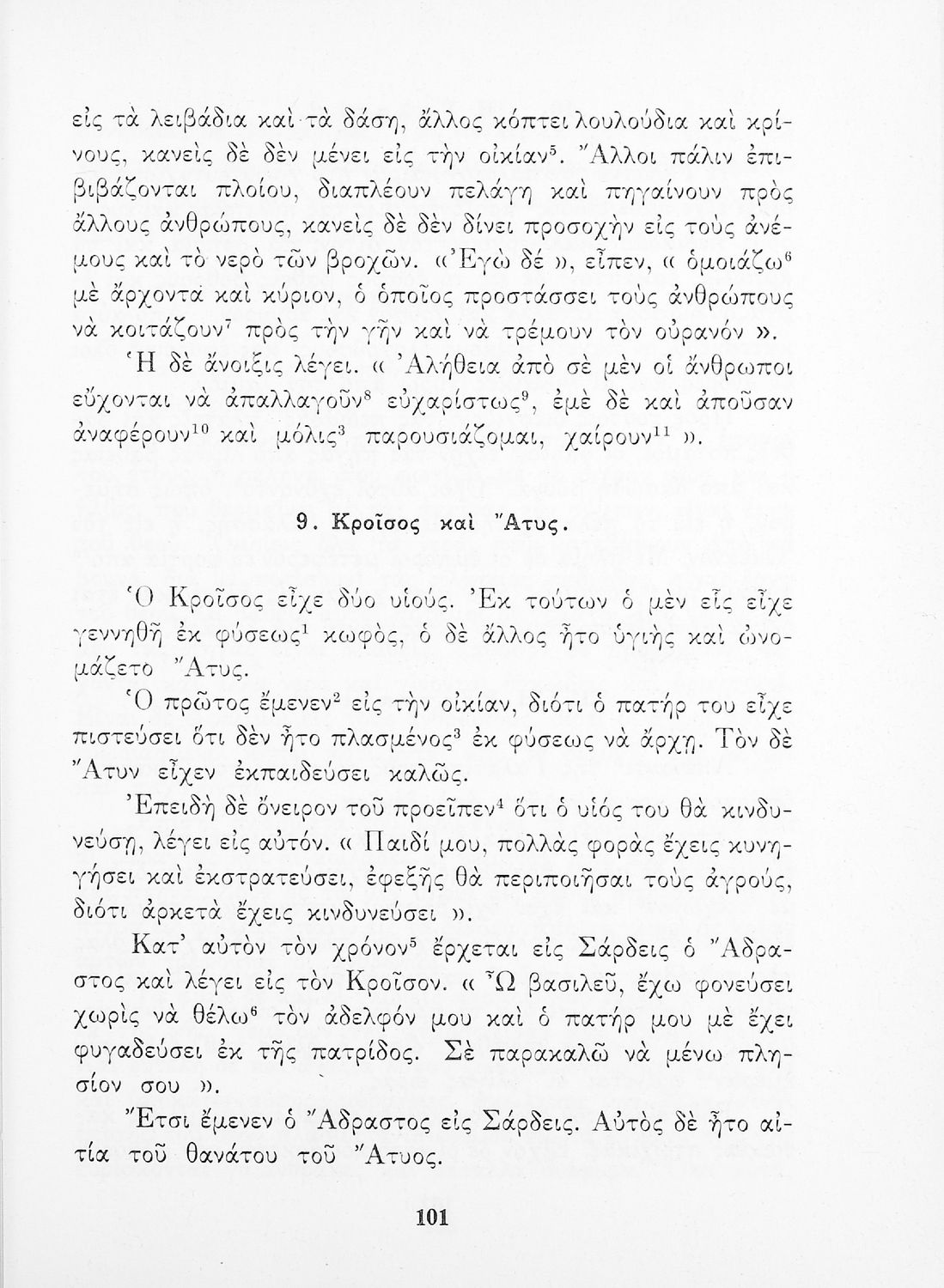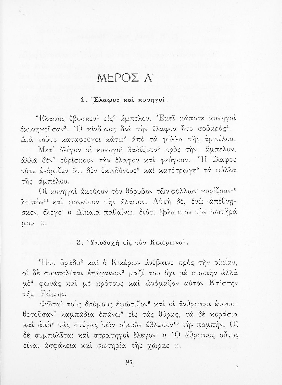 Σχολικό Εγχειρίδιο Αρχαίων Ελληνικών Α' και Β΄ Γυμνασίου που περιλαμβάνει κείμενα προσαρμοσμένα στη διδασκαλία των γραμματικών και συντακτικών φαινομένων, και ερμηνευτικές και λεξιλογικές σημειώσεις.