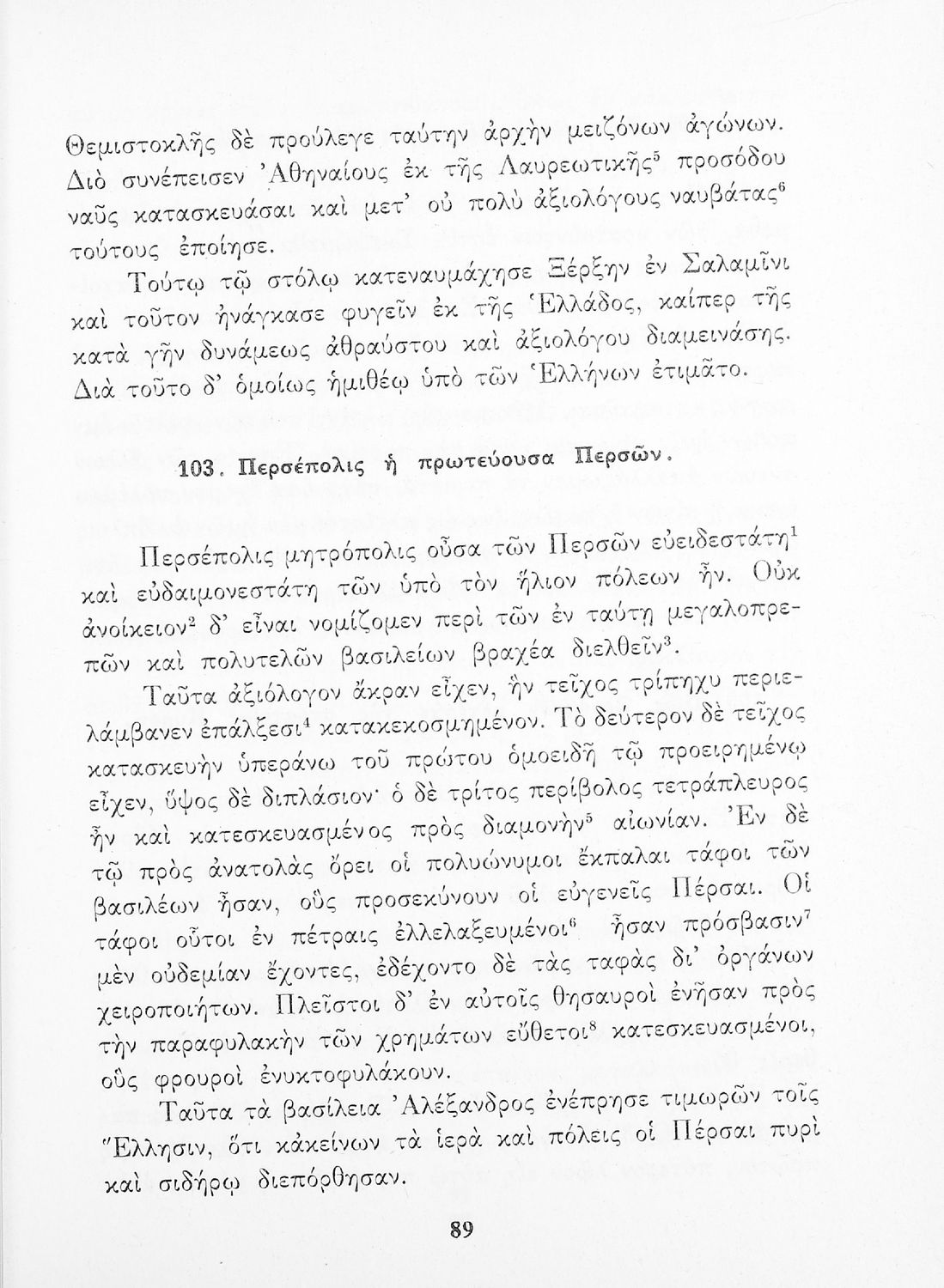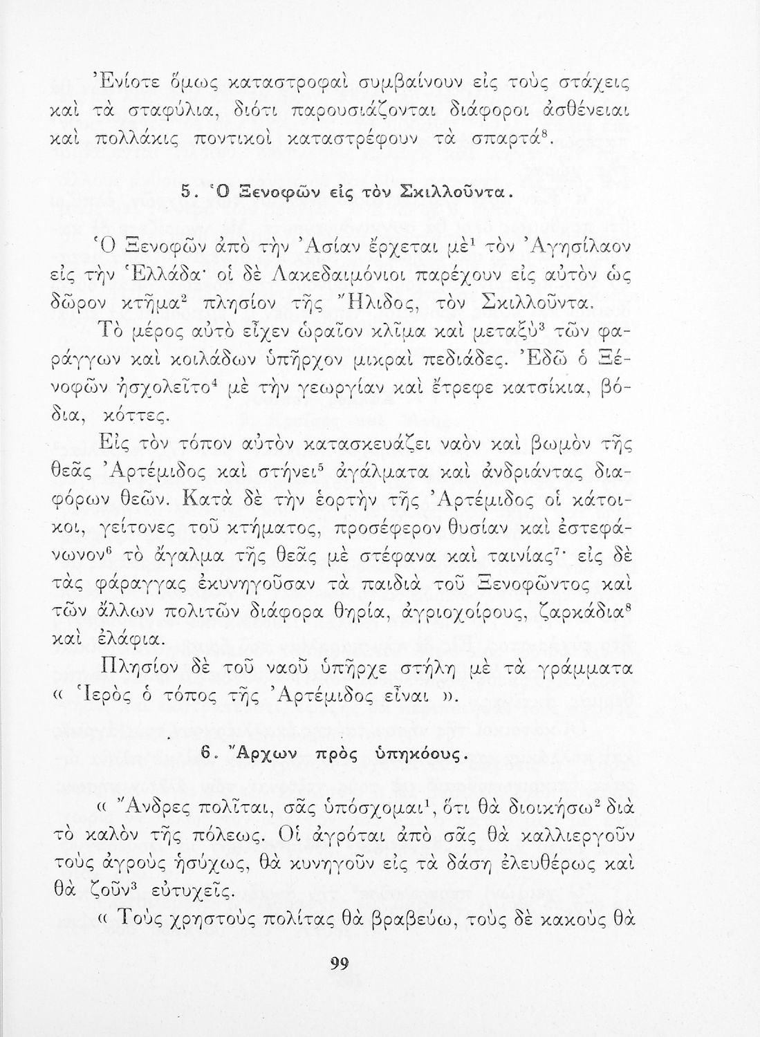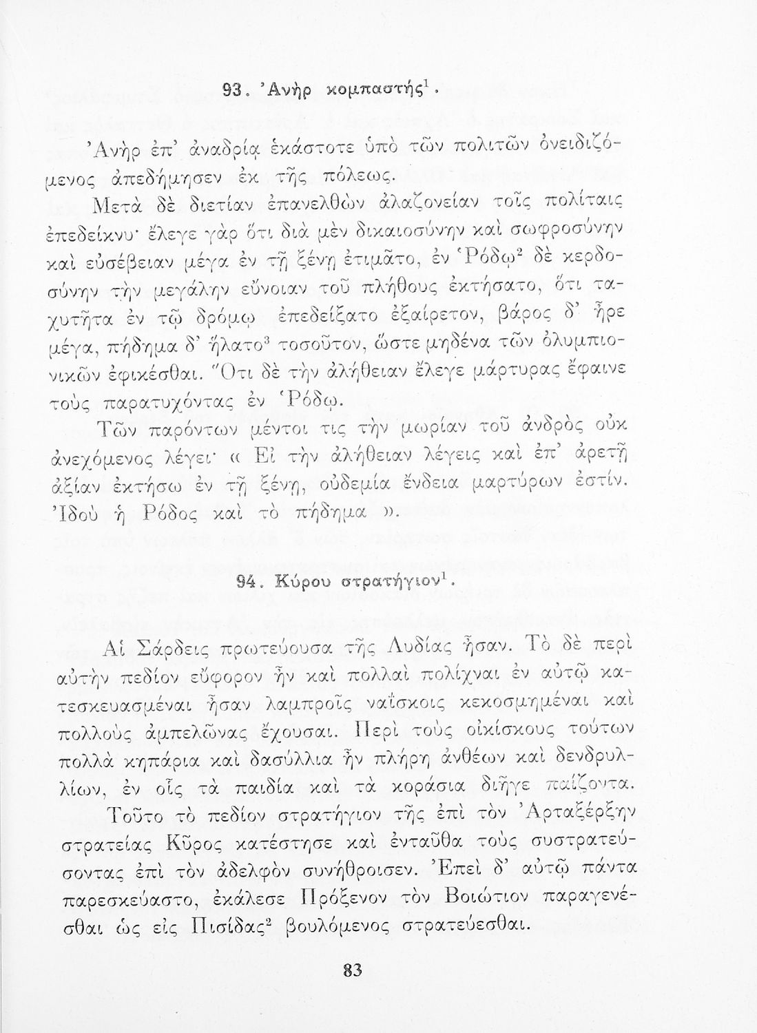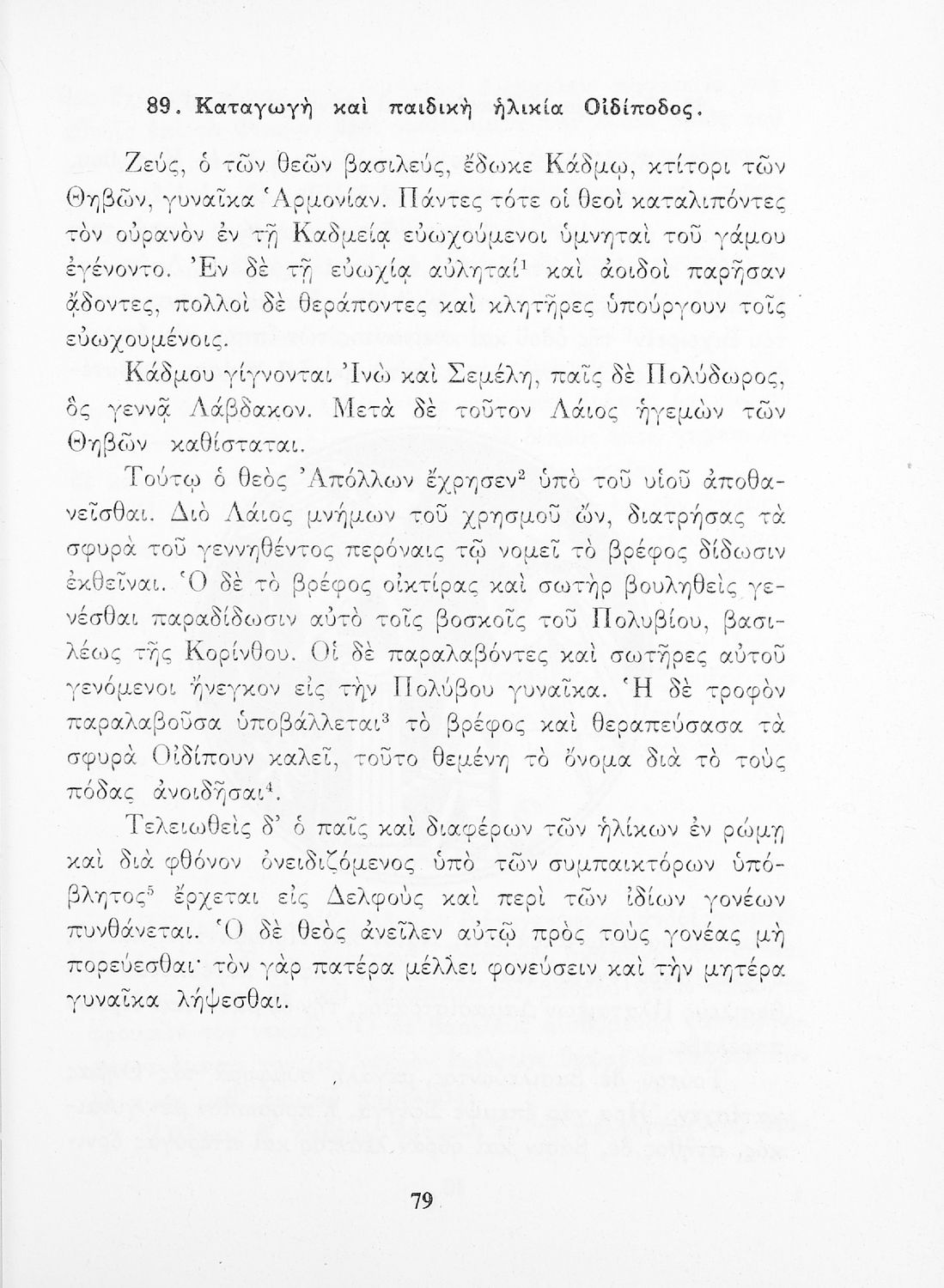 Σχολικό Εγχειρίδιο Αρχαίων Ελληνικών Α' και Β΄ Γυμνασίου που περιλαμβάνει κείμενα προσαρμοσμένα στη διδασκαλία των γραμματικών και συντακτικών φαινομένων, και ερμηνευτικές και λεξιλογικές σημειώσεις.